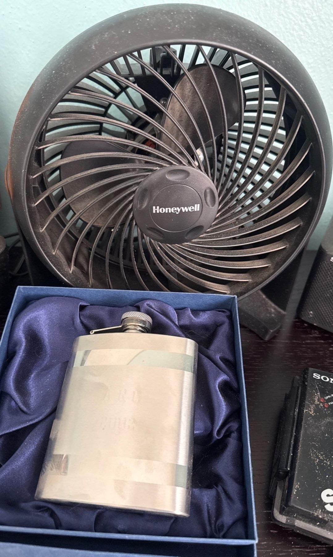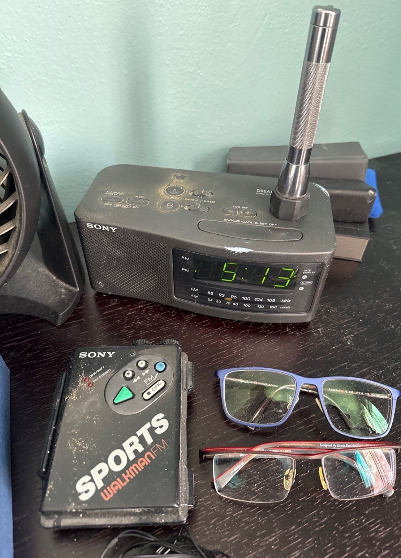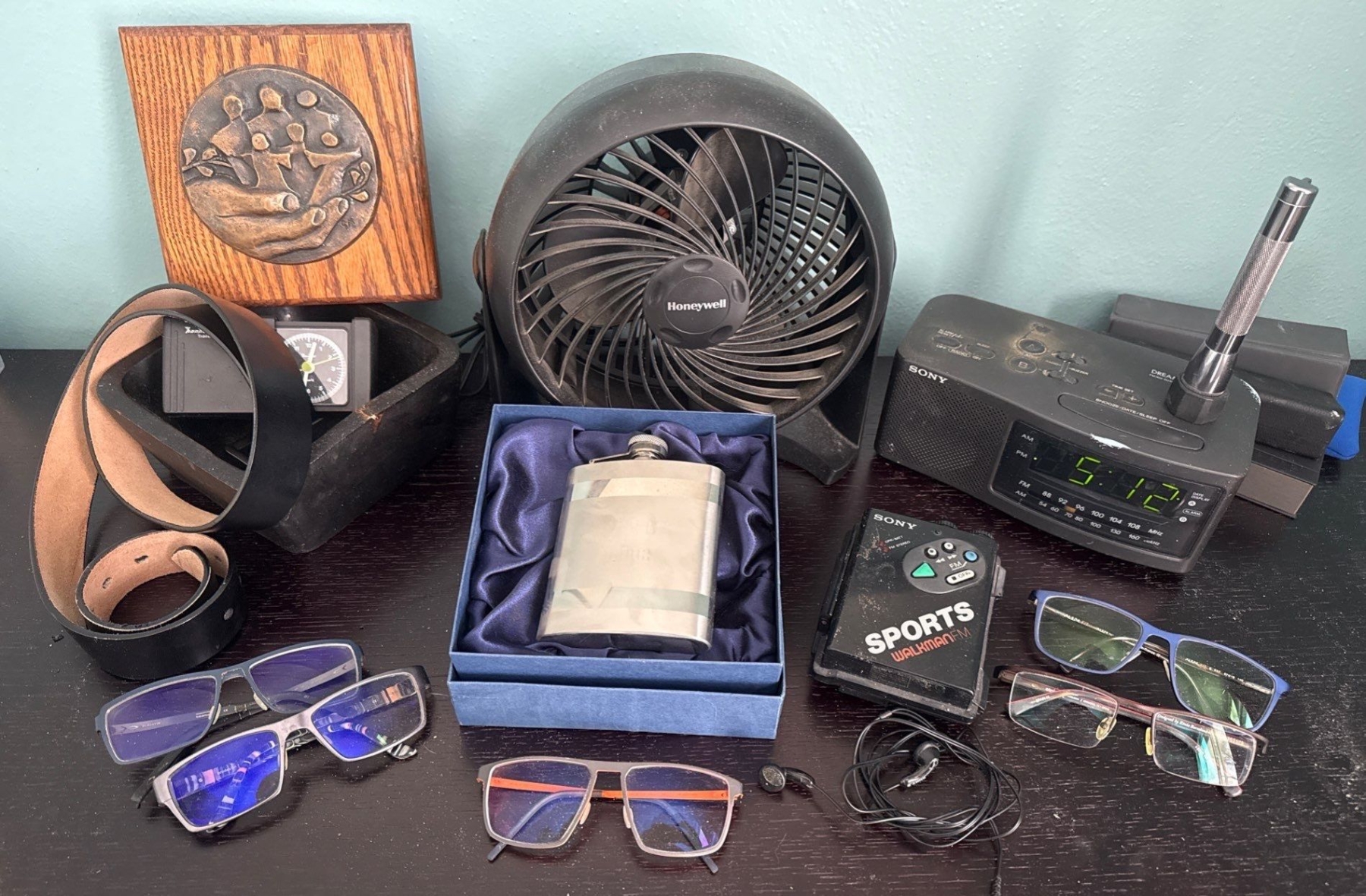Bedroom Items Fan, Alarm Clock, Walkman, Glasses, Flask, Belt