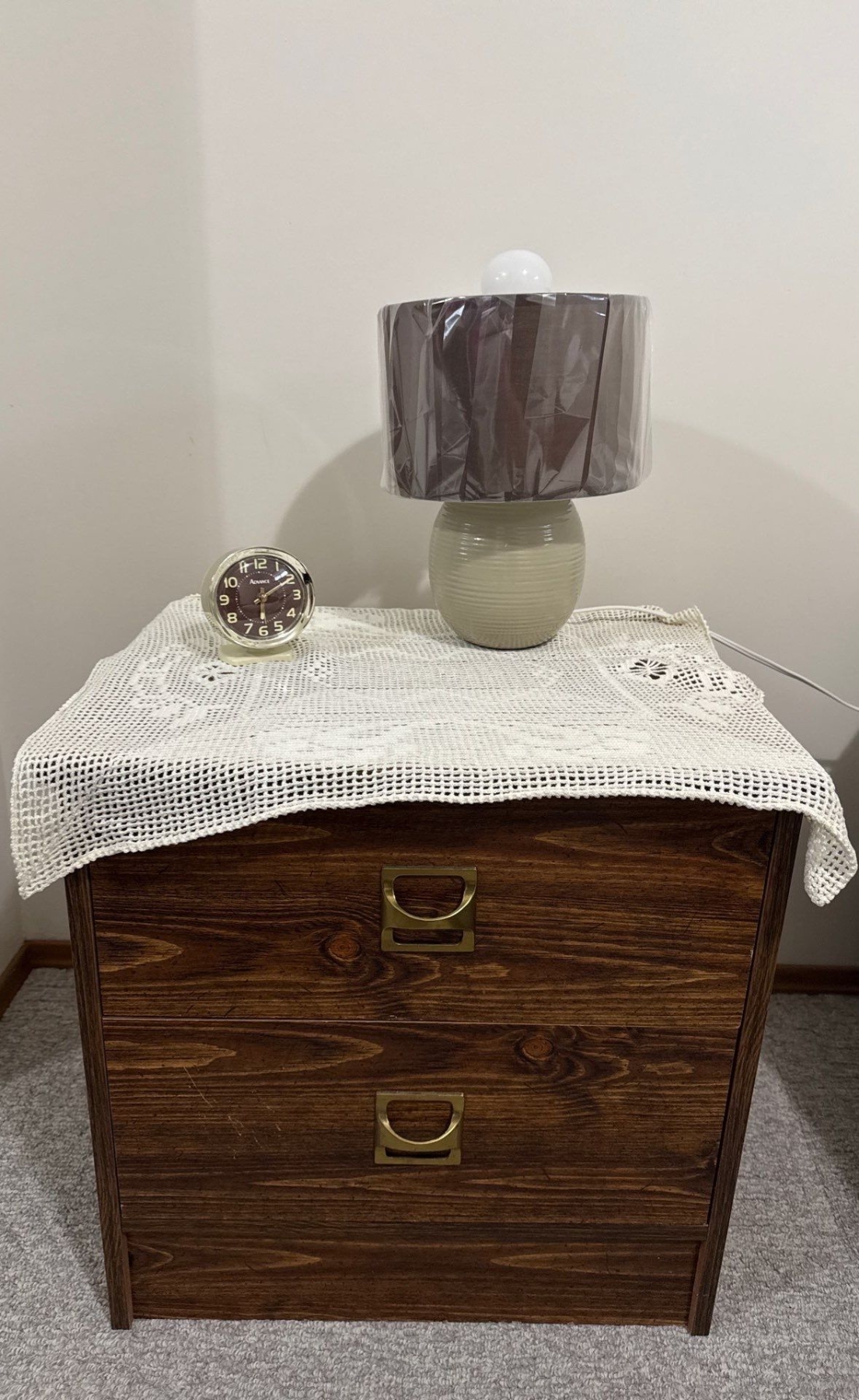 Bedside Table w/ Clock & Lamp - 21W, 16D, 22T
