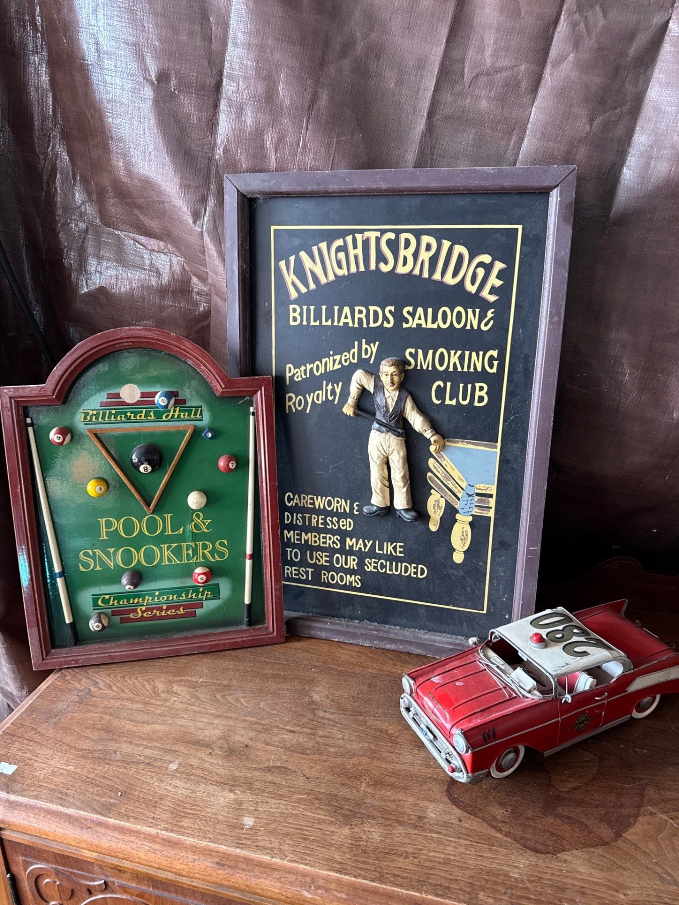 Billiards / Pub Signs 18T w/ Antique Fire Truck
