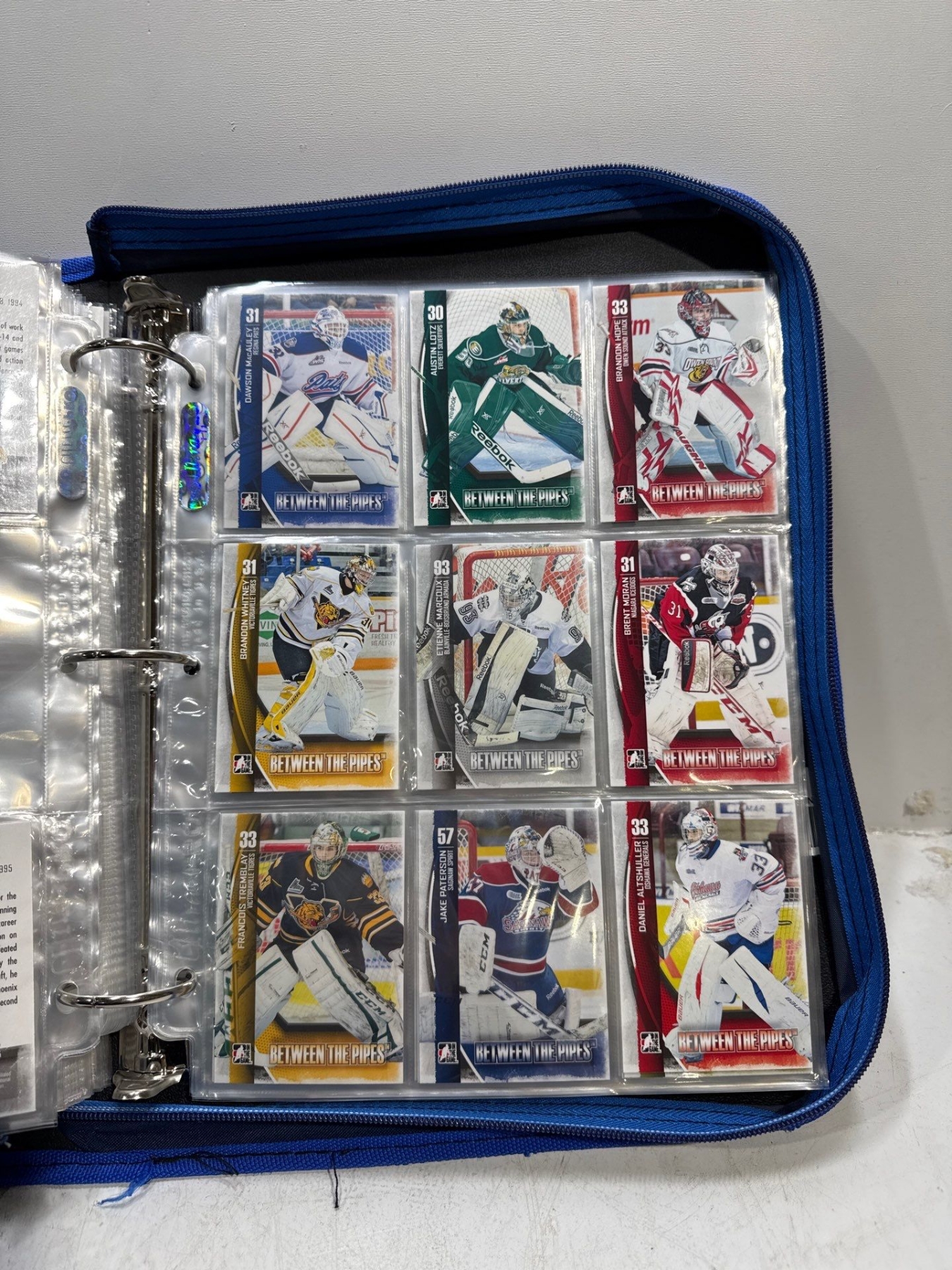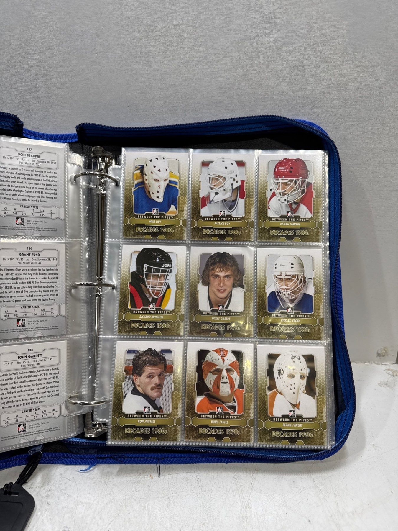 Binder of In The Game Heros Between the Pipes 12-13 Hockey Cards