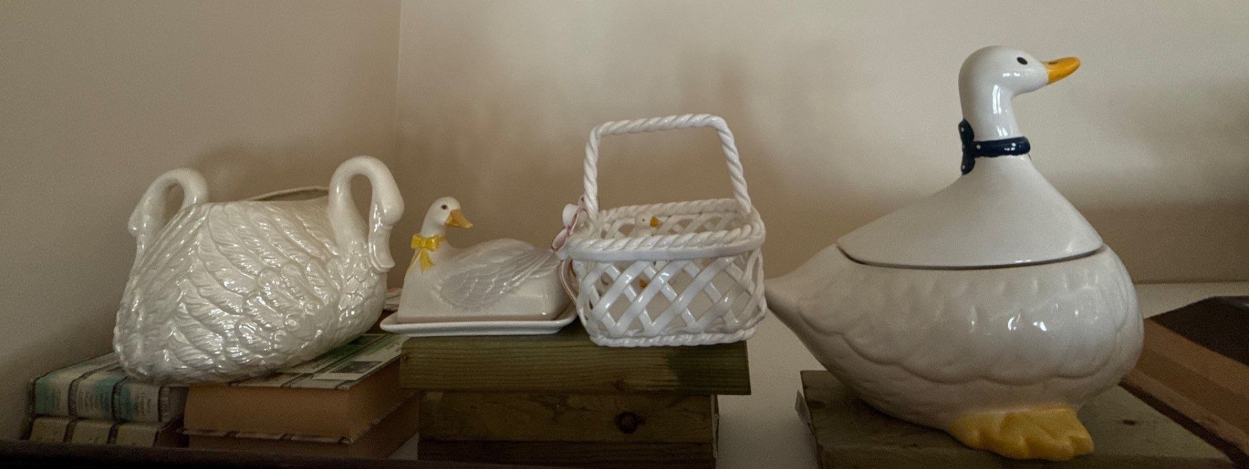 Bird Themed  Decorative Dishes - Berardos Portugal Woven Basket, Iridescent Swans (1 Ft Wide), More