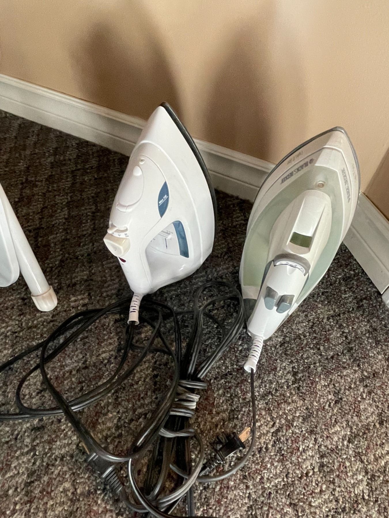 Black & Decker Steam Iron - Sunbeam Steam Iron - Ironing Board - Clothes Hamper - Clothes Racks x2