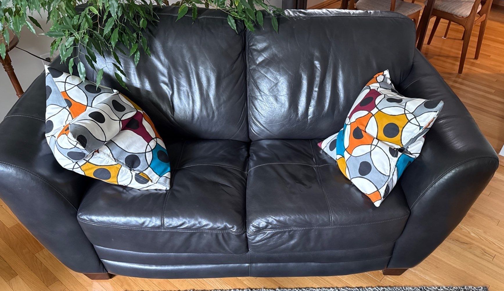 Black Loveseat w/ Cushions - 66W, 37D, 35T