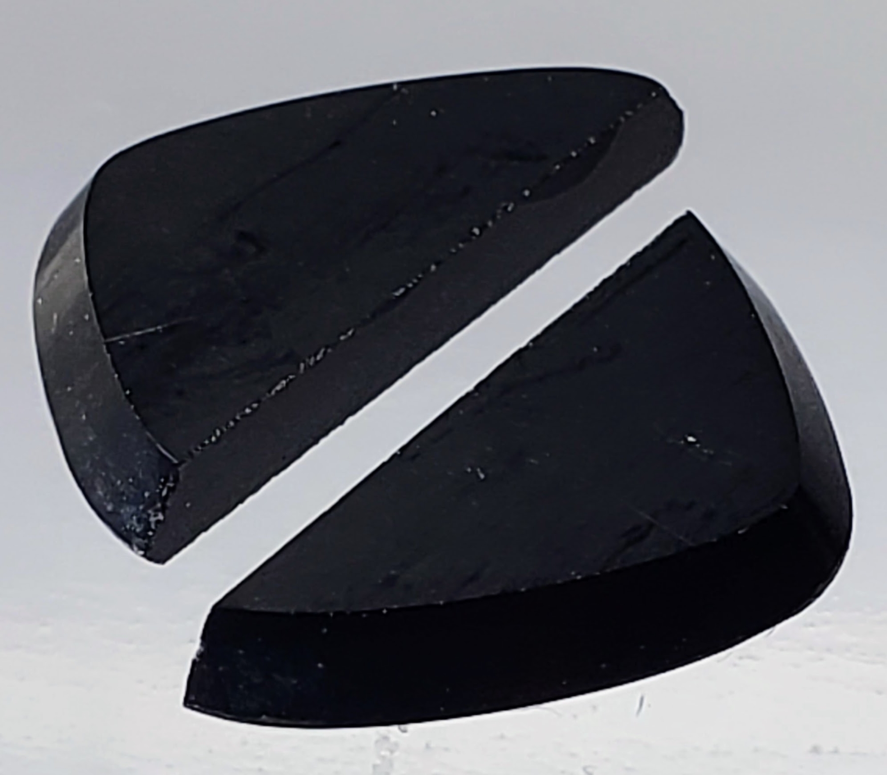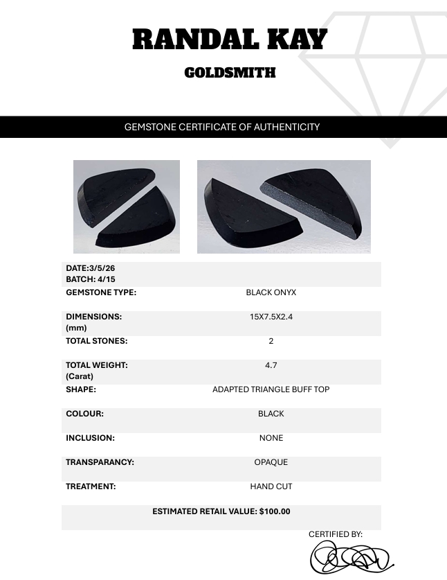 A 4.7-carat pair of hand-cut black onyx cabochons in adapted triangle buff-top shapes, bold and modern. Estimated retail price is $100.