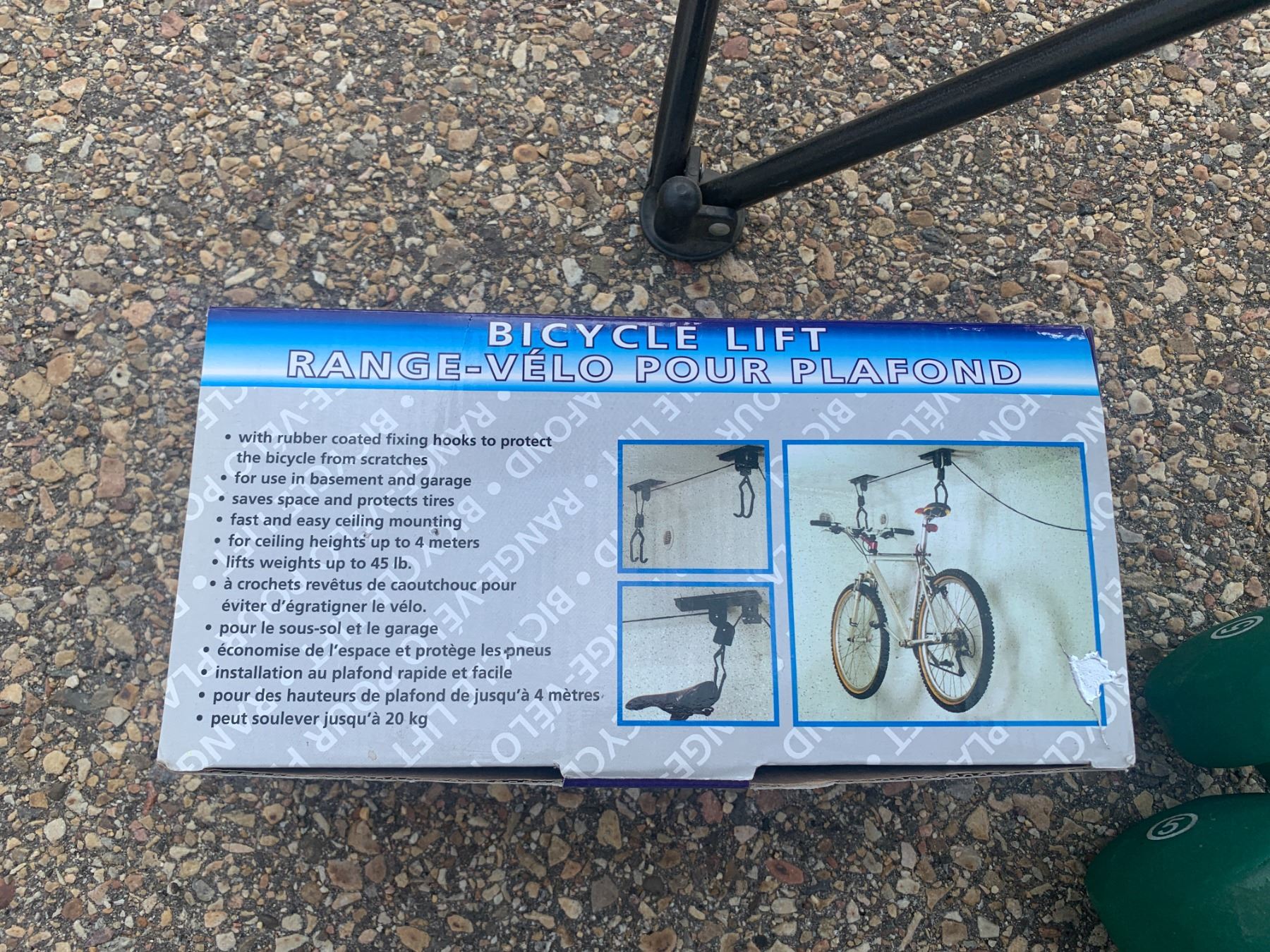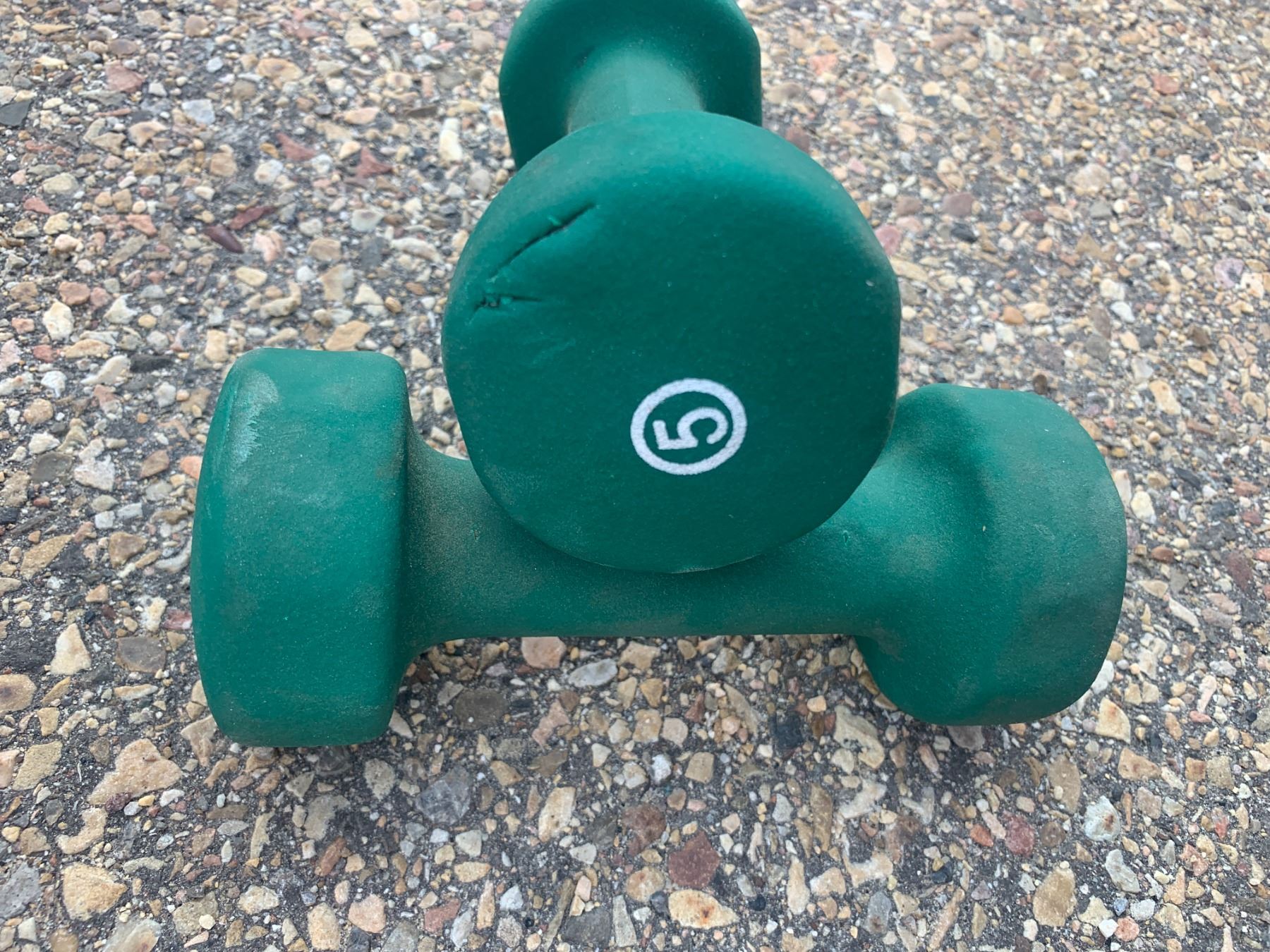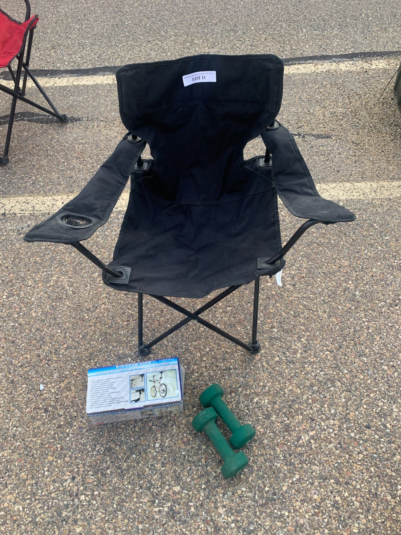 Black Outdoor Folding Chair, 5 Pound Dumb Bells & 45 lb Bicycle Lift
