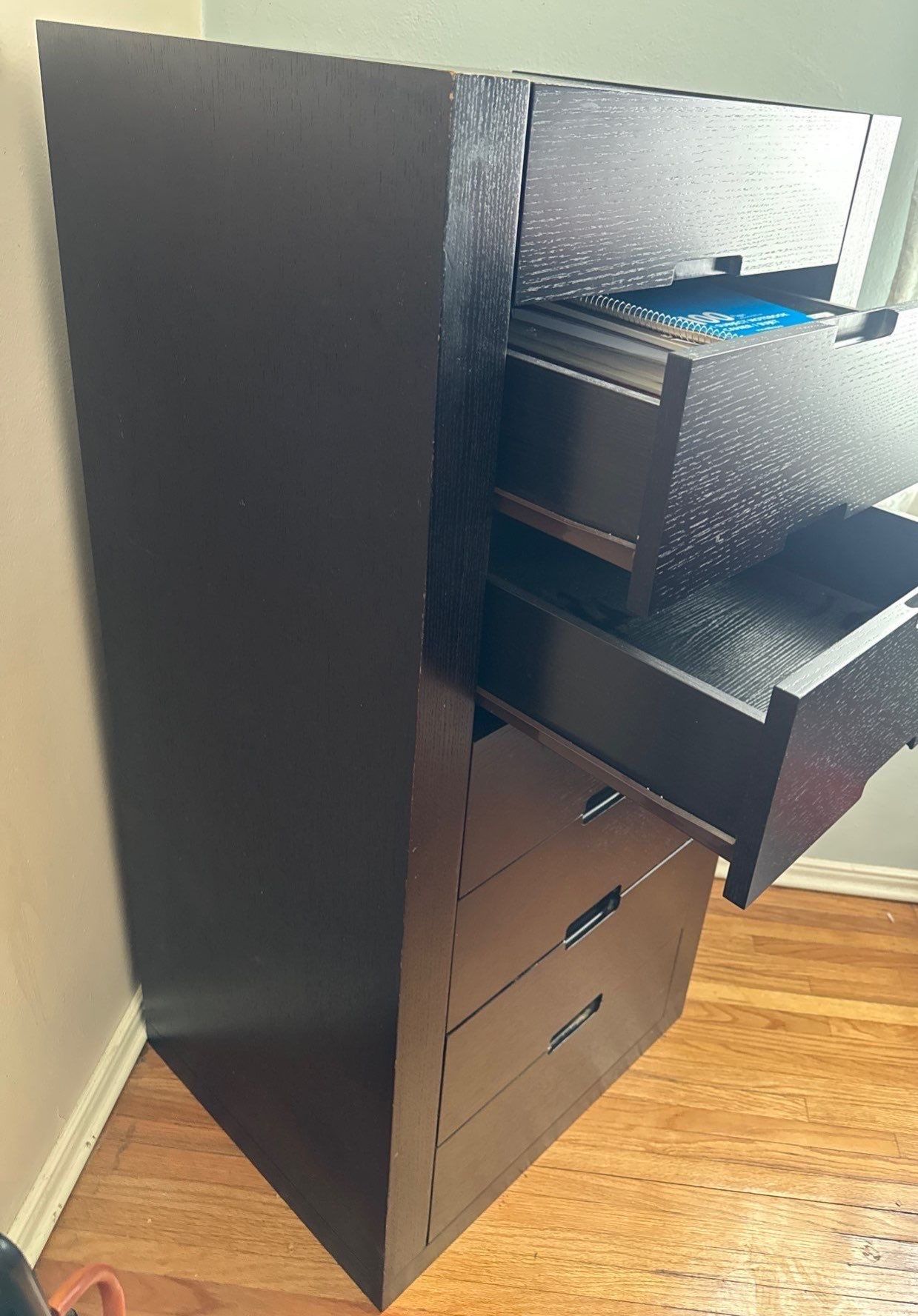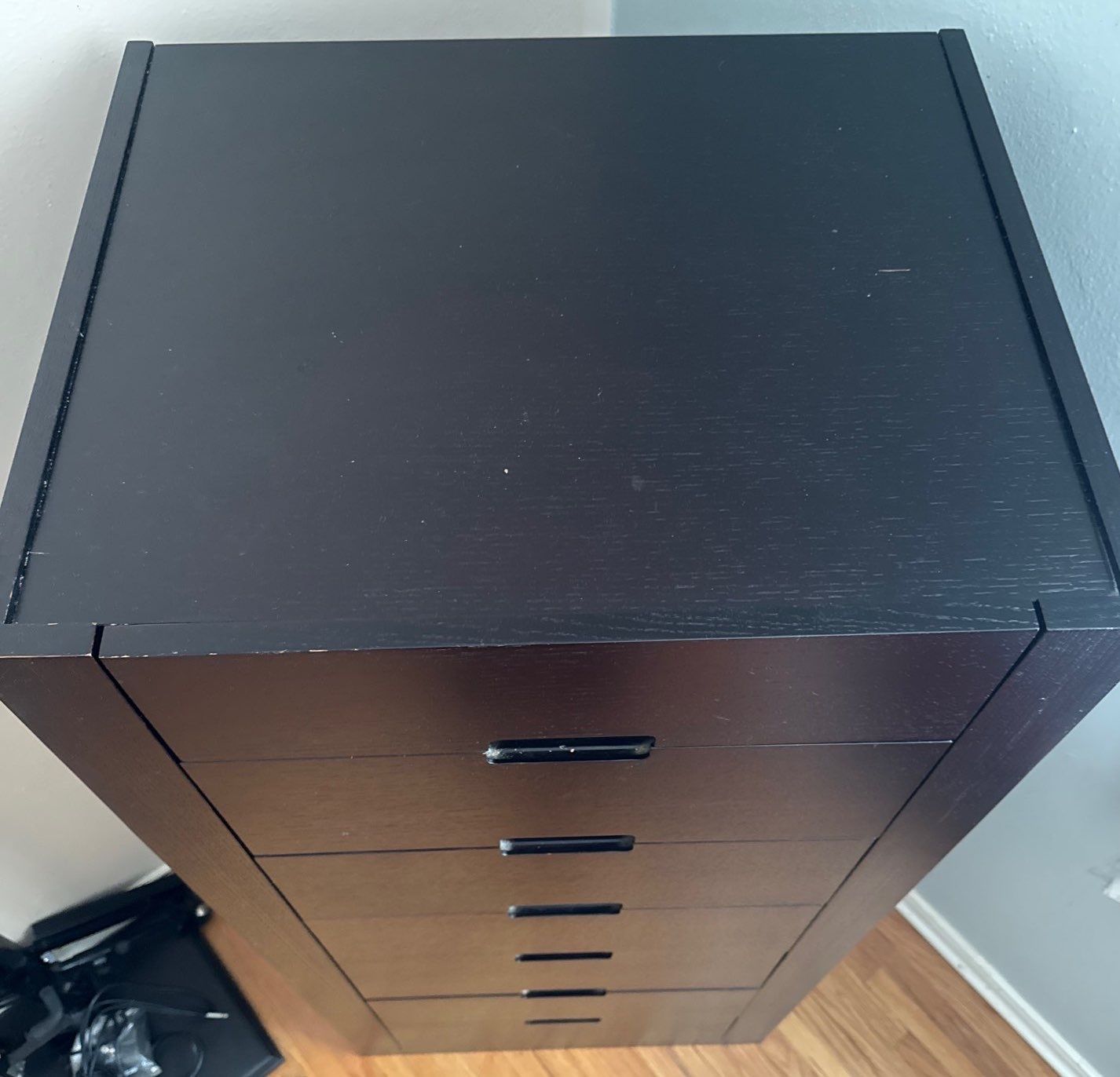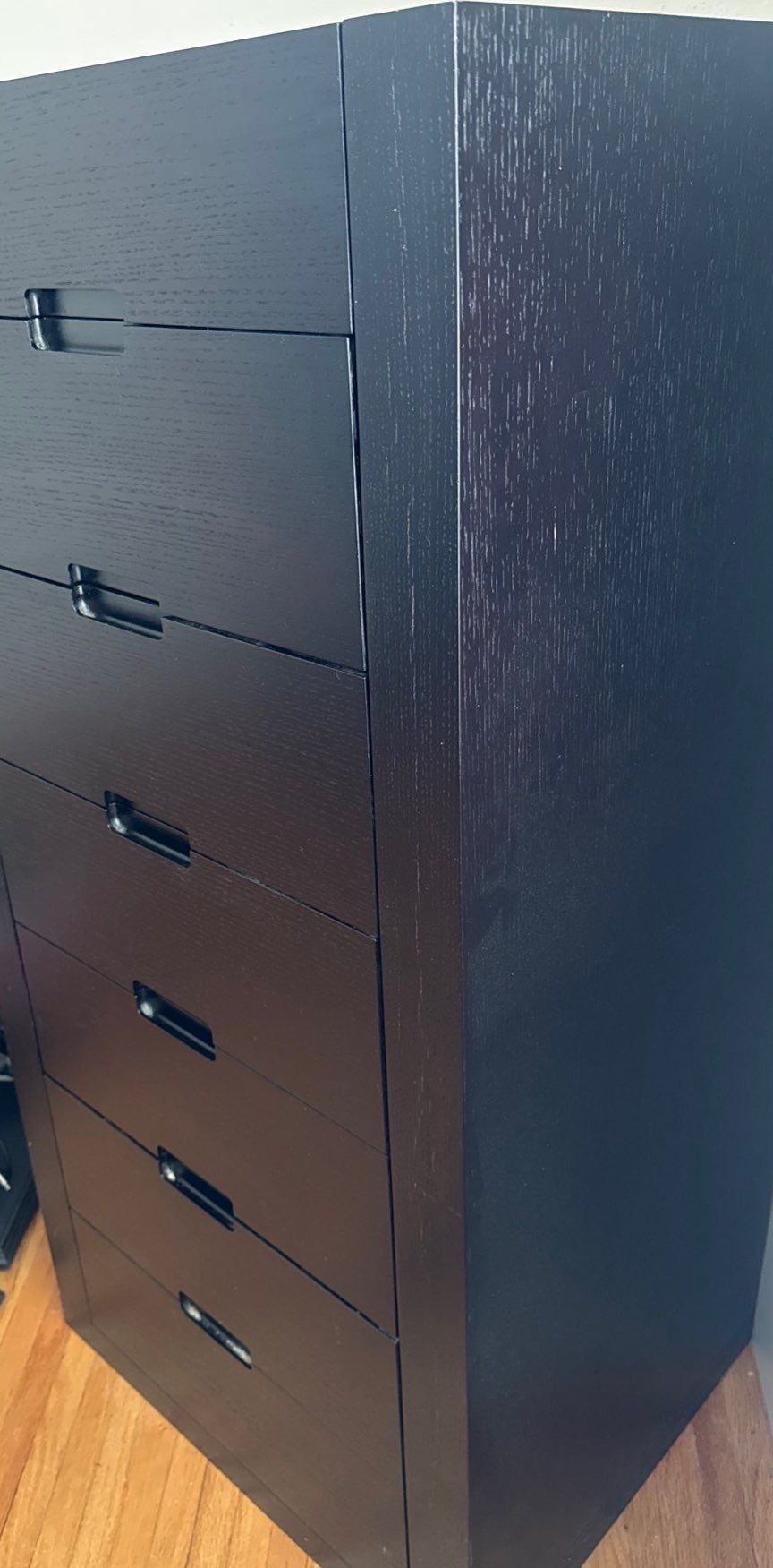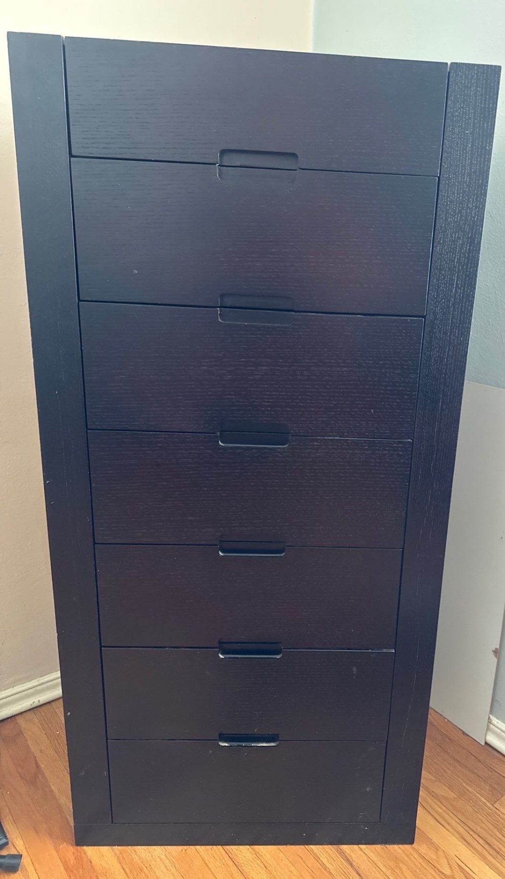 Black Tallboy Seven Drawered Dresser 23"w x19"d x 53"tall