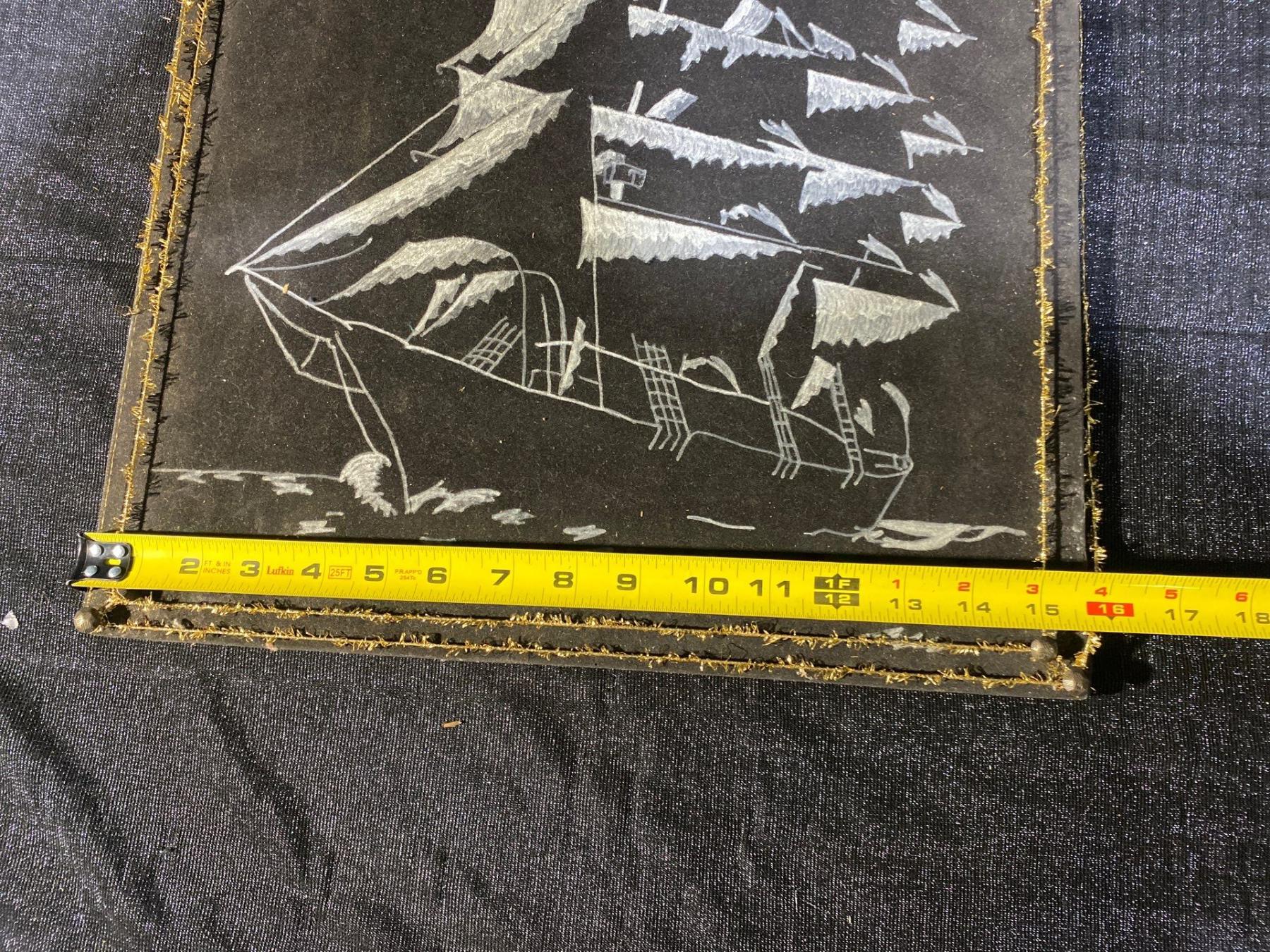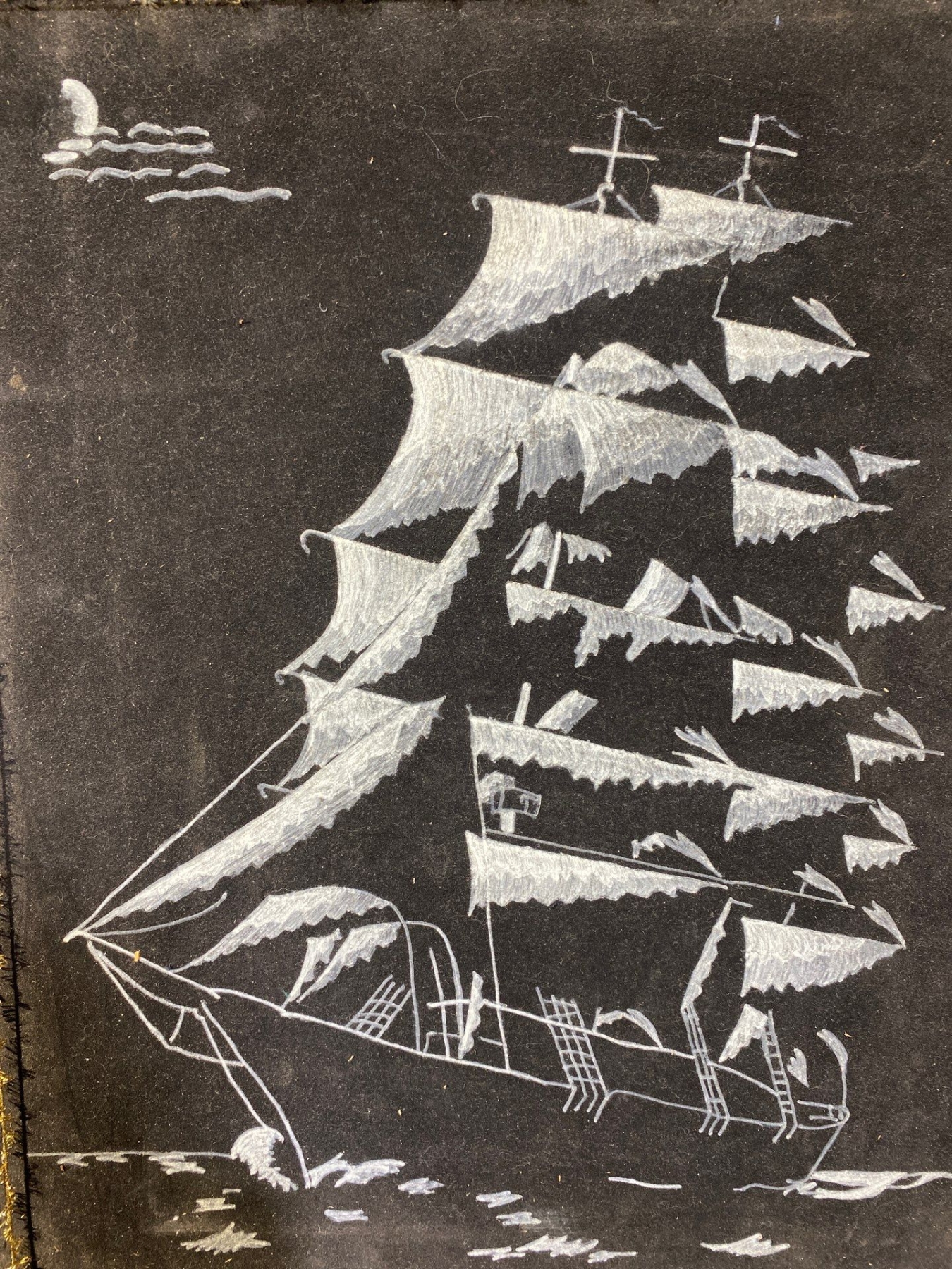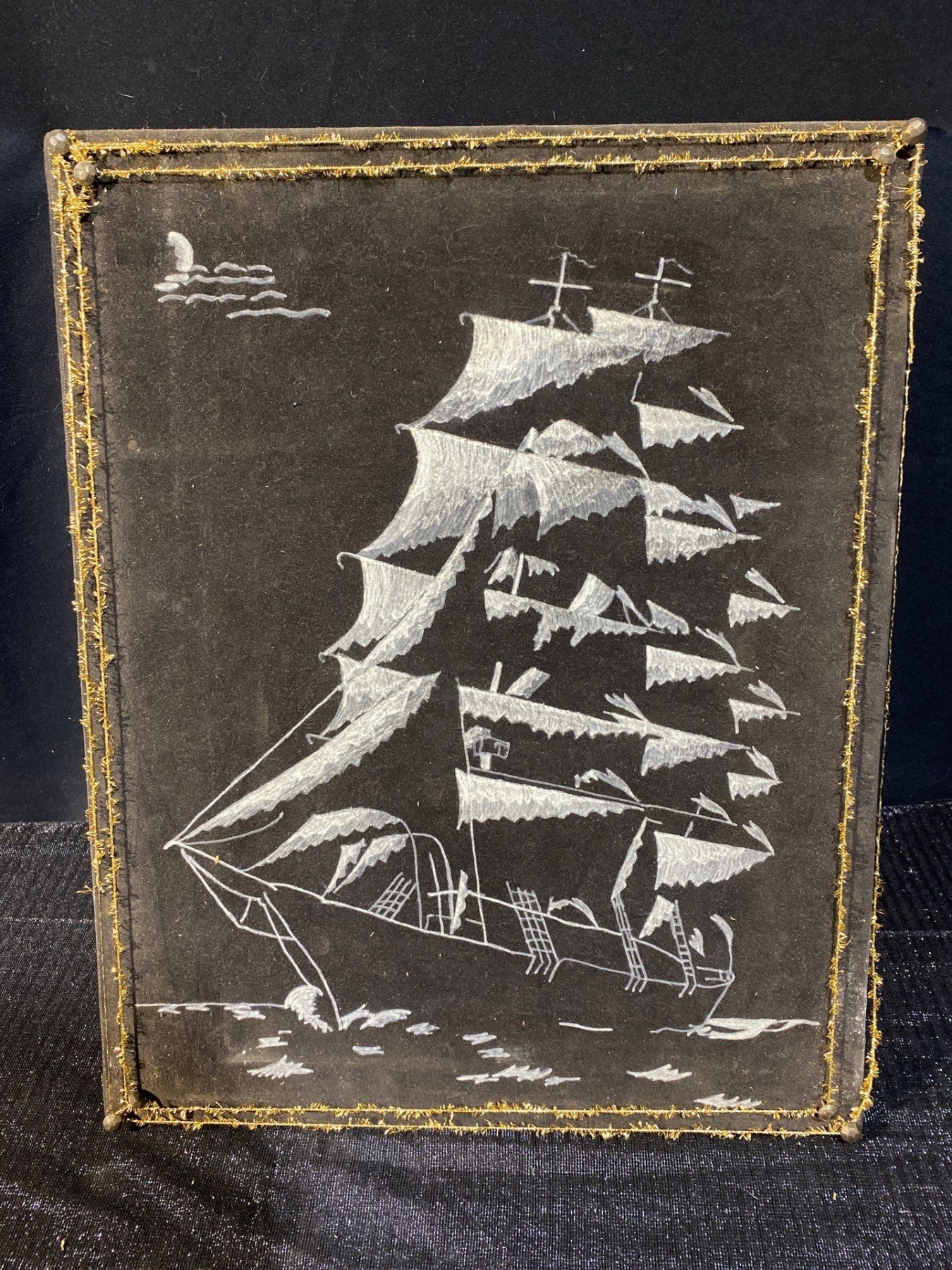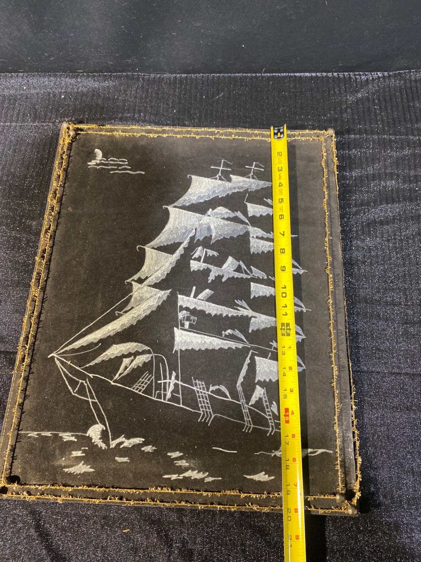 Black Velvet Painting Of Sailing Ship (16 x 20 inches)