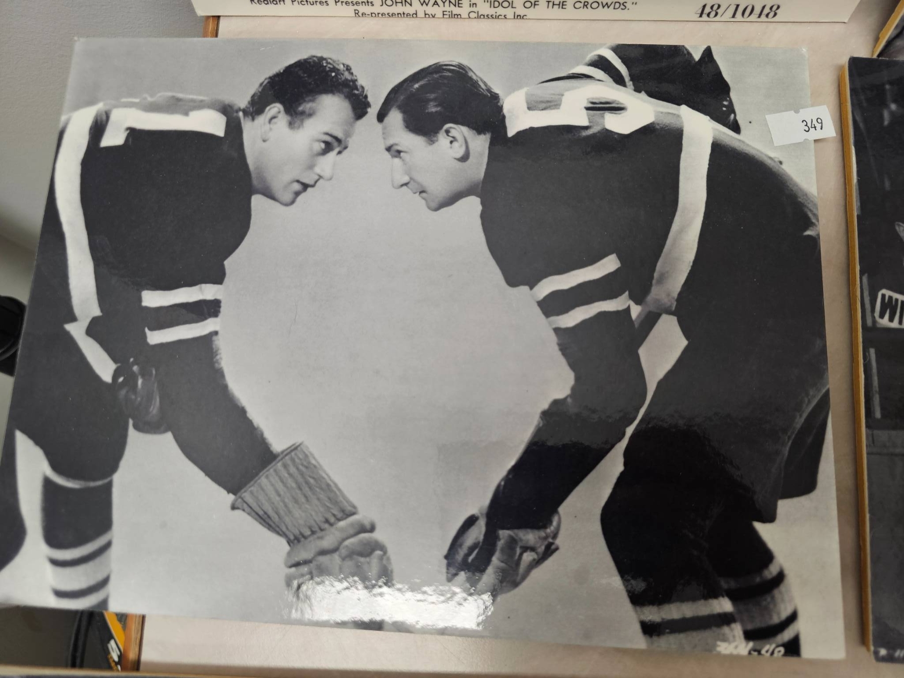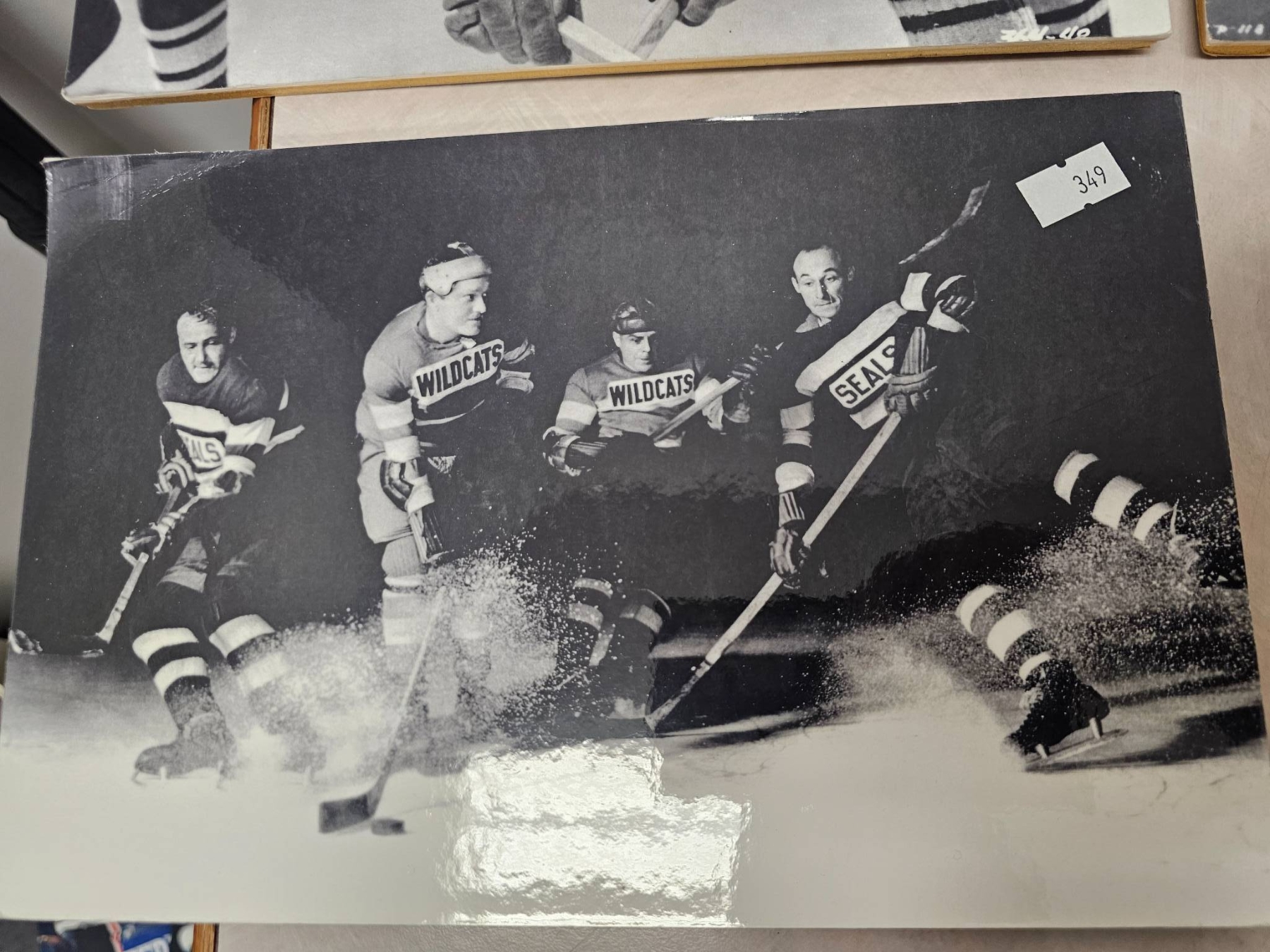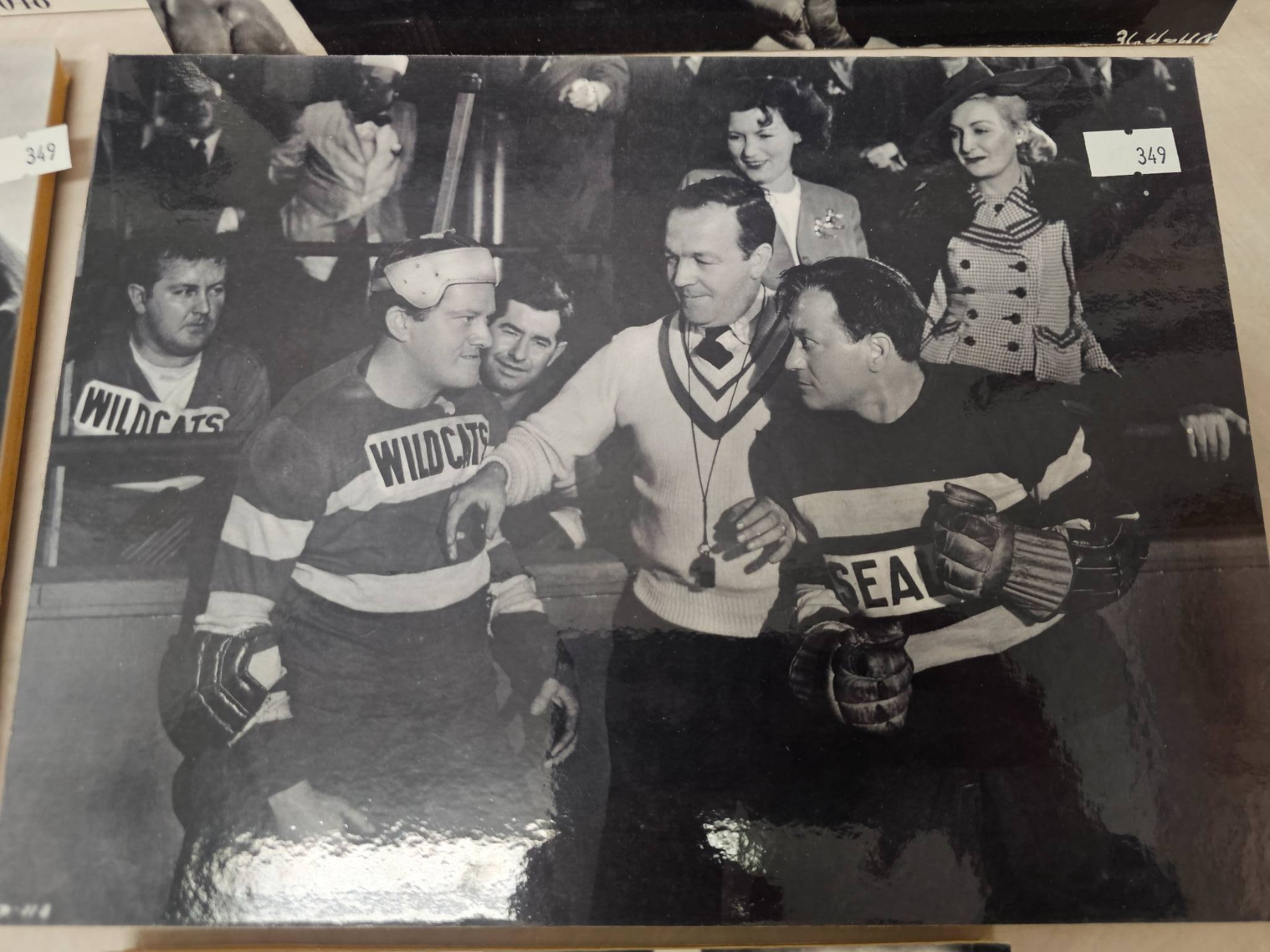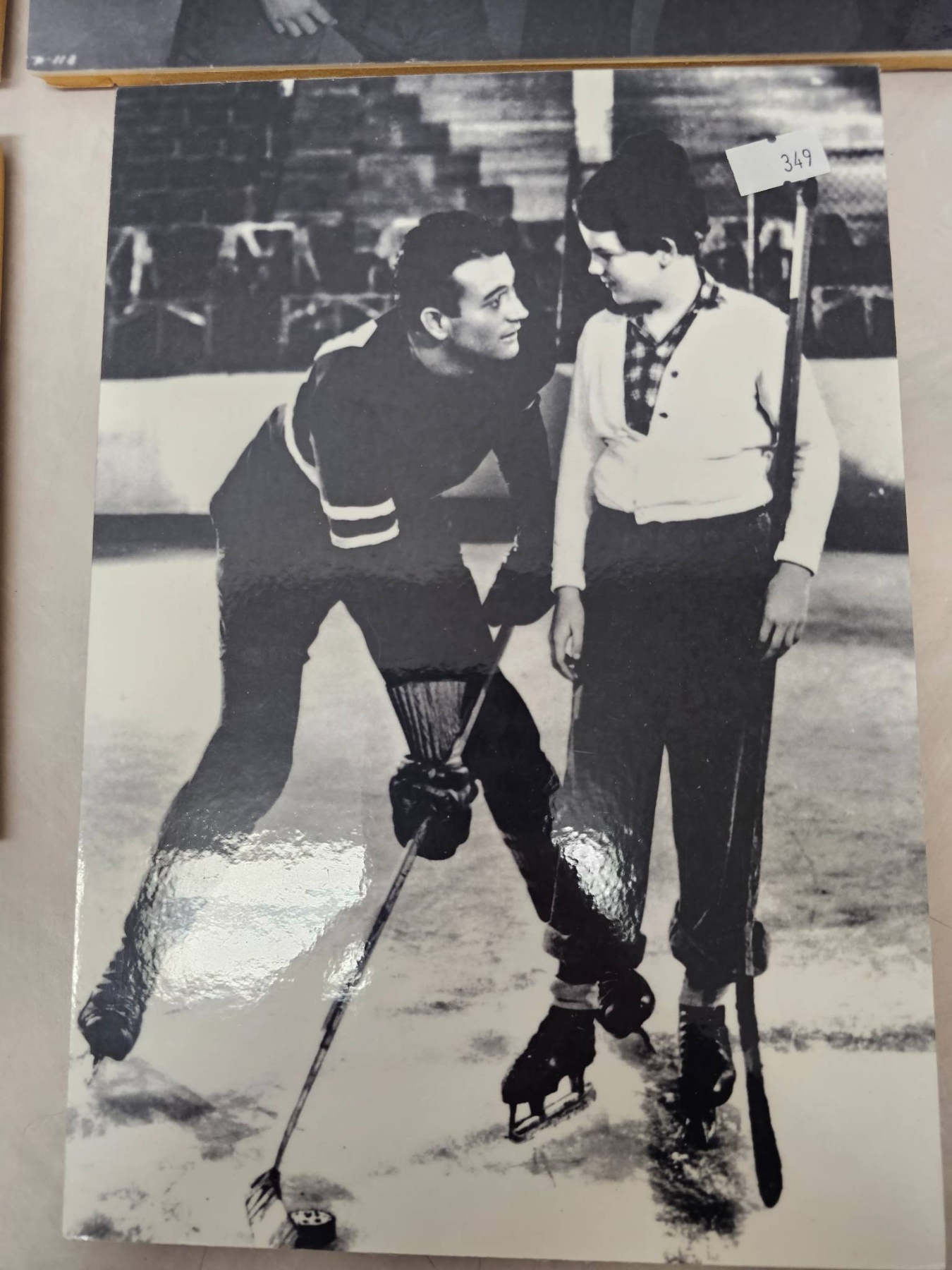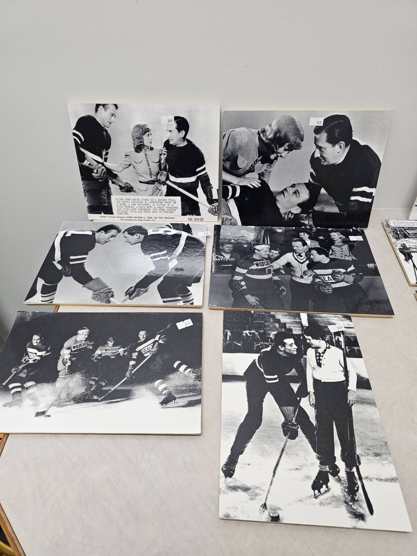 Black-and-white still photographs featuring scenes from a hockey-themed movie or media production. Displayed on boards for preservation and showcasing, the collection includes multiple on-ice and character interaction moments, blending hockey action and cinematic storytelling. Perfect for sports or film memorabilia collectors.