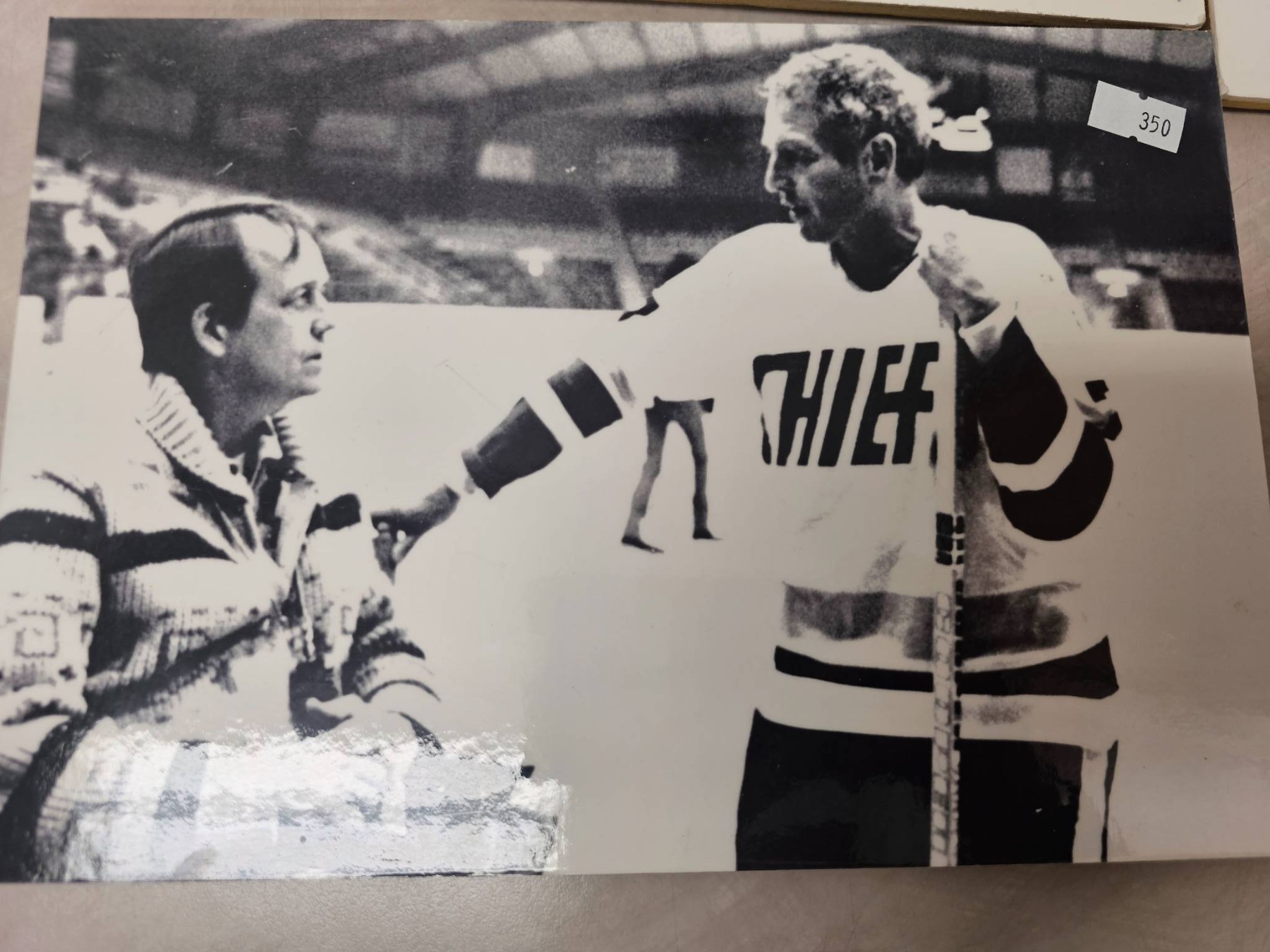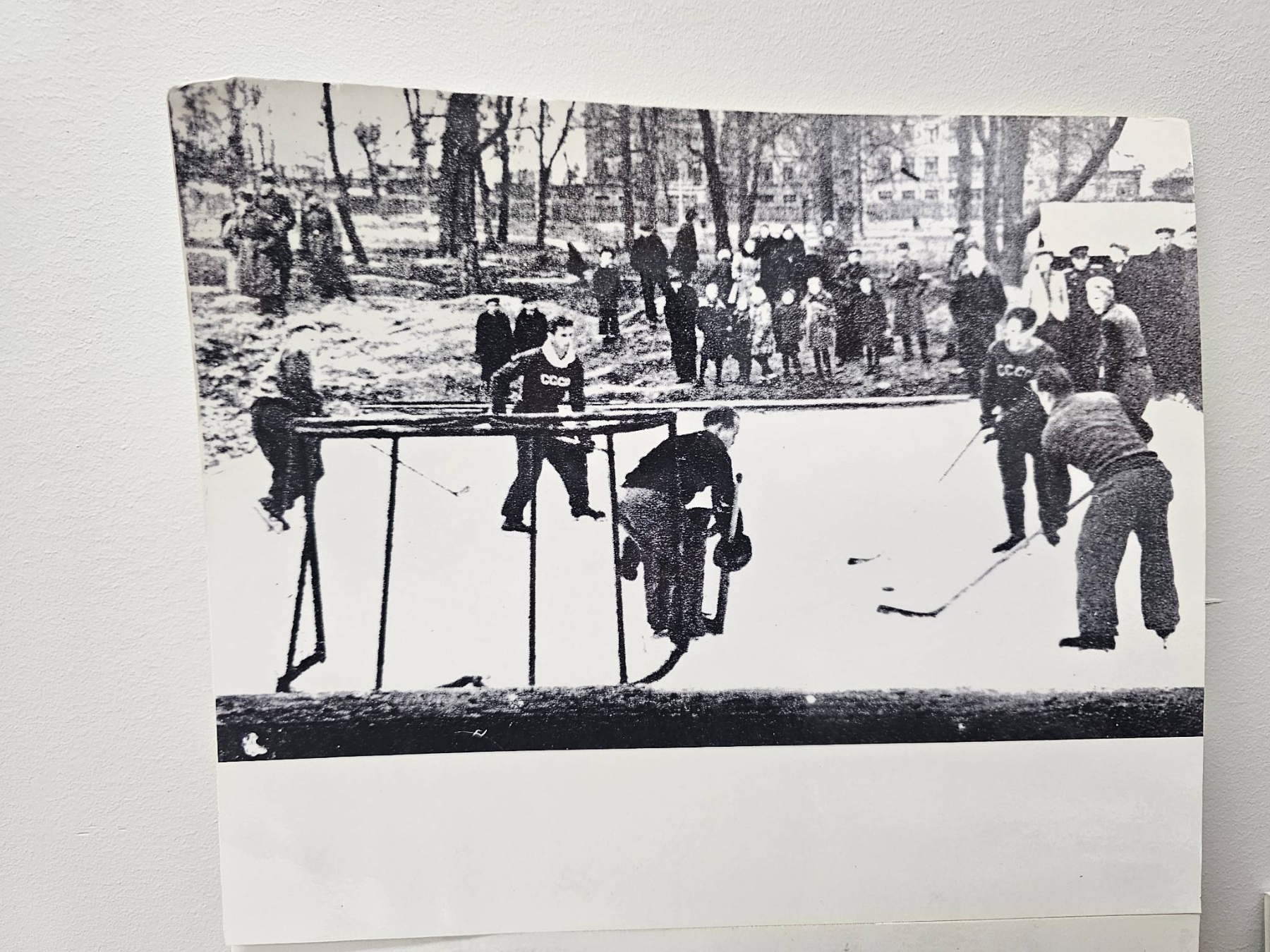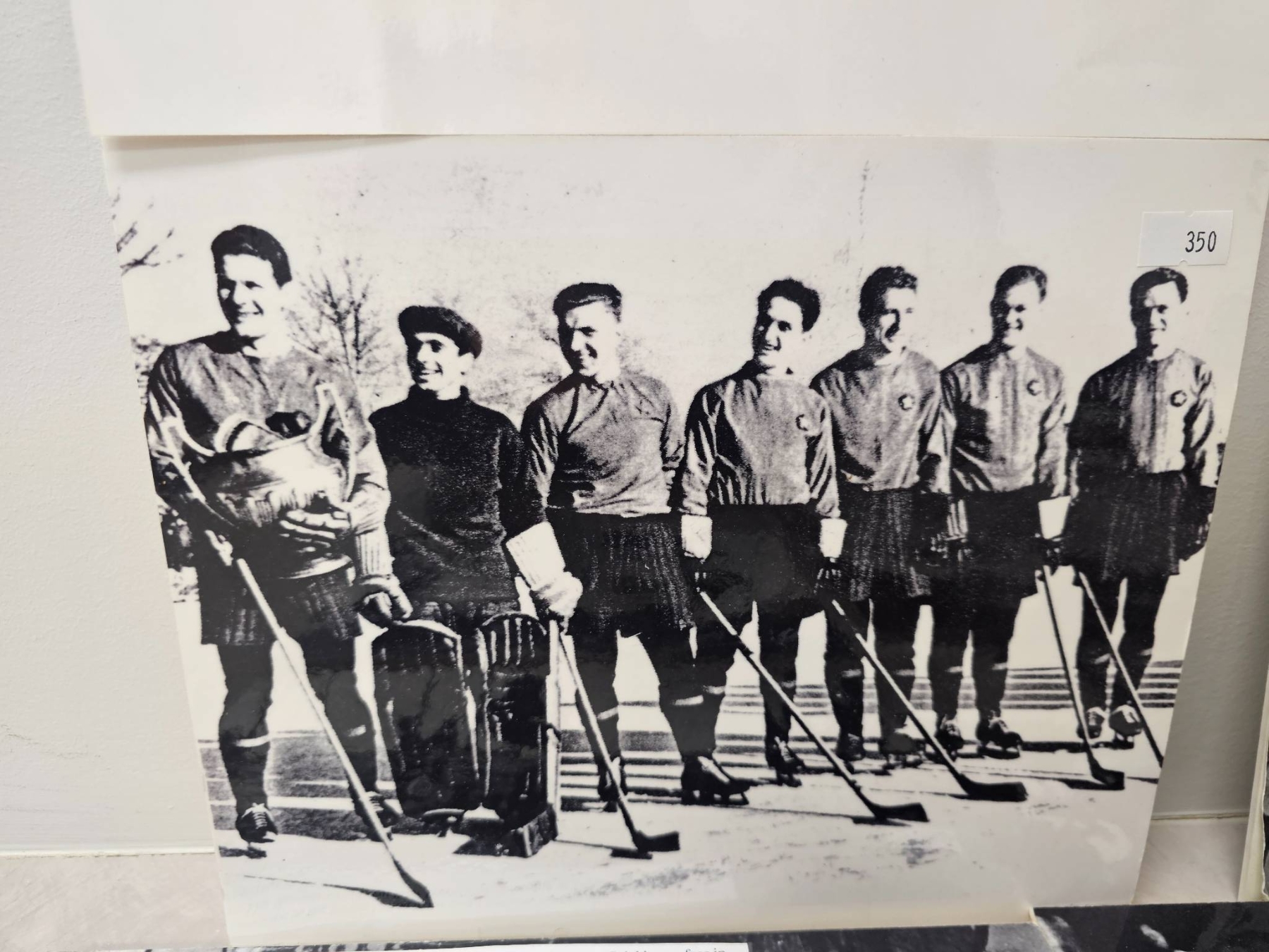 Black-and-white hockey-themed photographic prints featuring various scenes, including players in action, team lineups, and close-ups of individuals in hockey gear. Each print captures dynamic and nostalgic moments tied to the sport. The collection offers a compelling visual narrative, perfect for hockey enthusiasts or collectors of sports memorabilia.