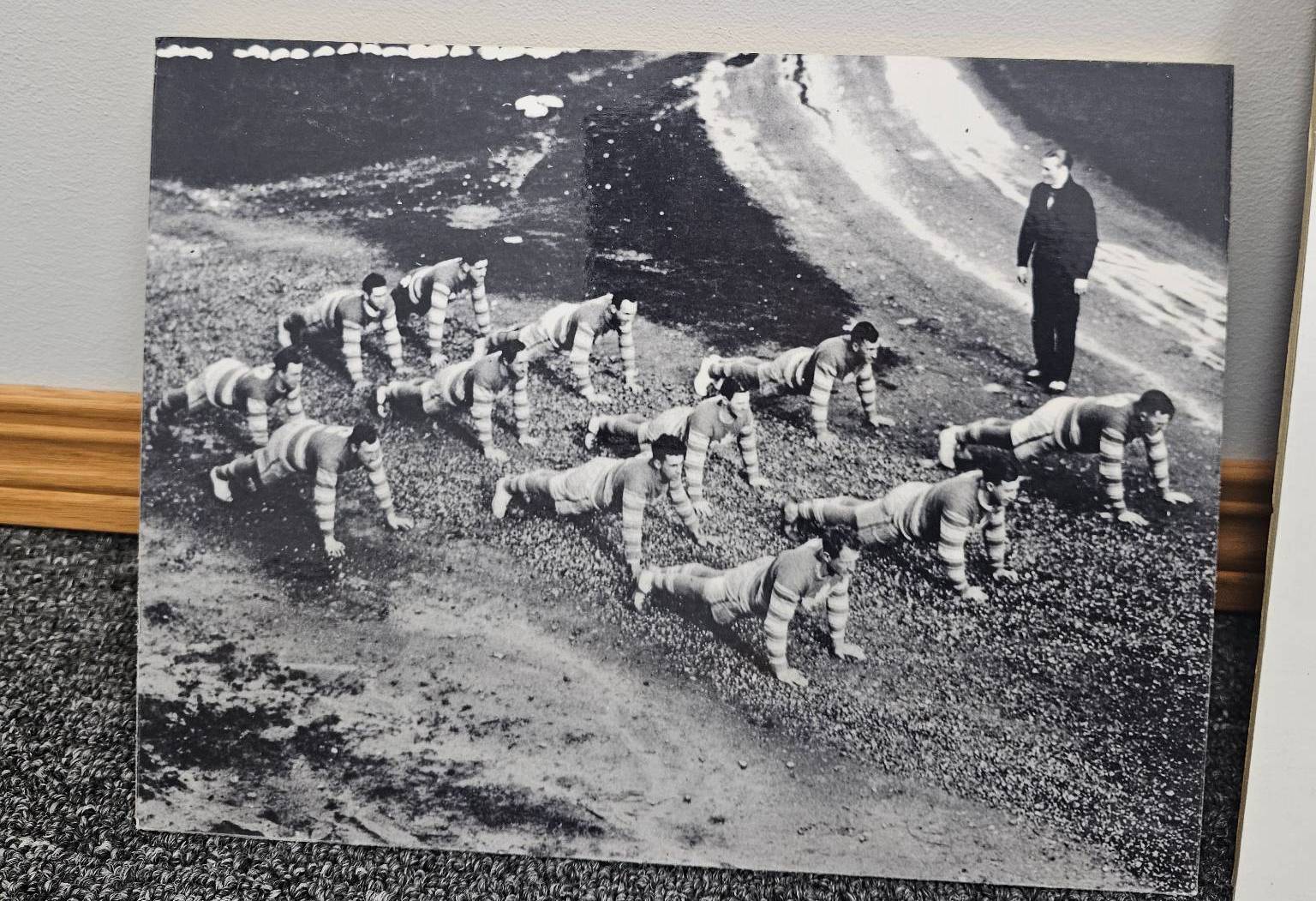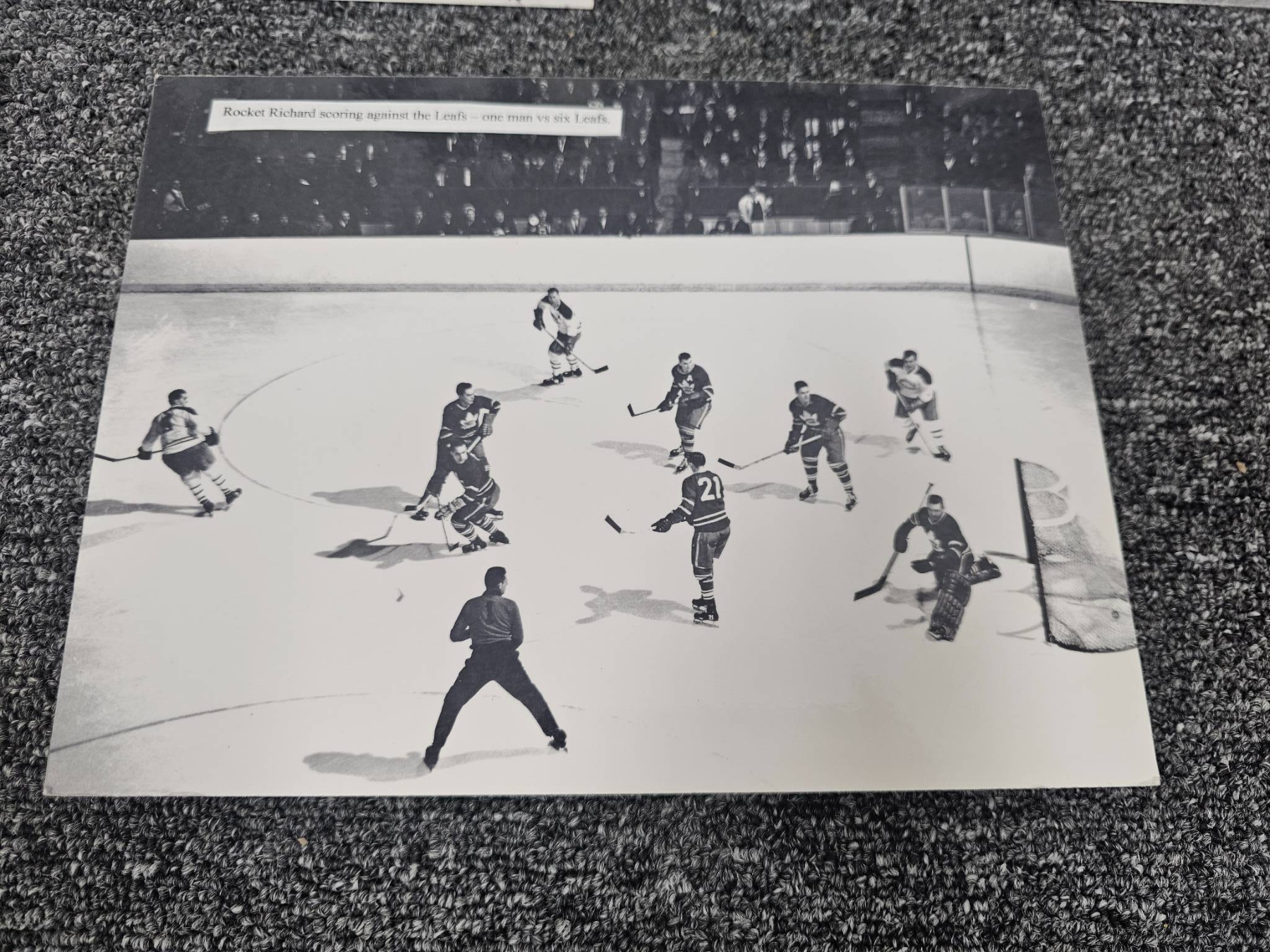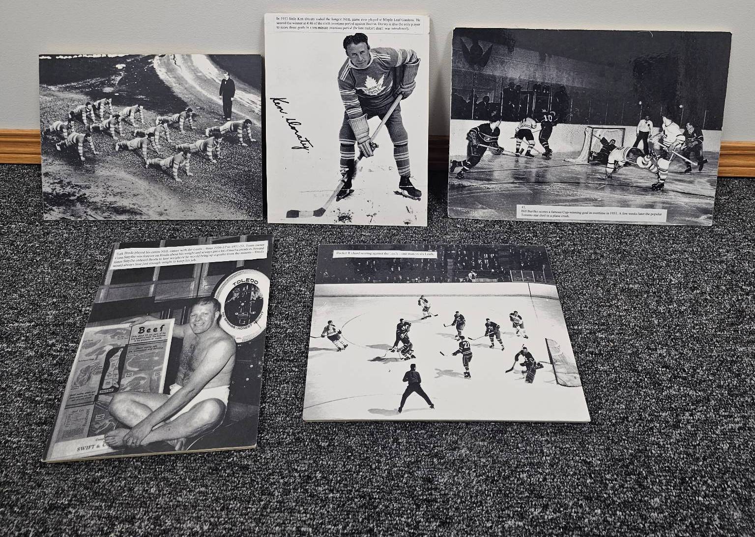 Black-and-white photographs showcasing various themes, including hockey action shots, historical events, and vintage advertisements. Images include a portrait of a hockey player, game moments, and unique scenes such as outdoor activities. A visually appealing collection for sports fans, history enthusiasts, or those interested in early 20th-century photography.