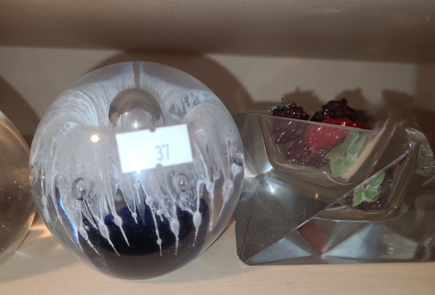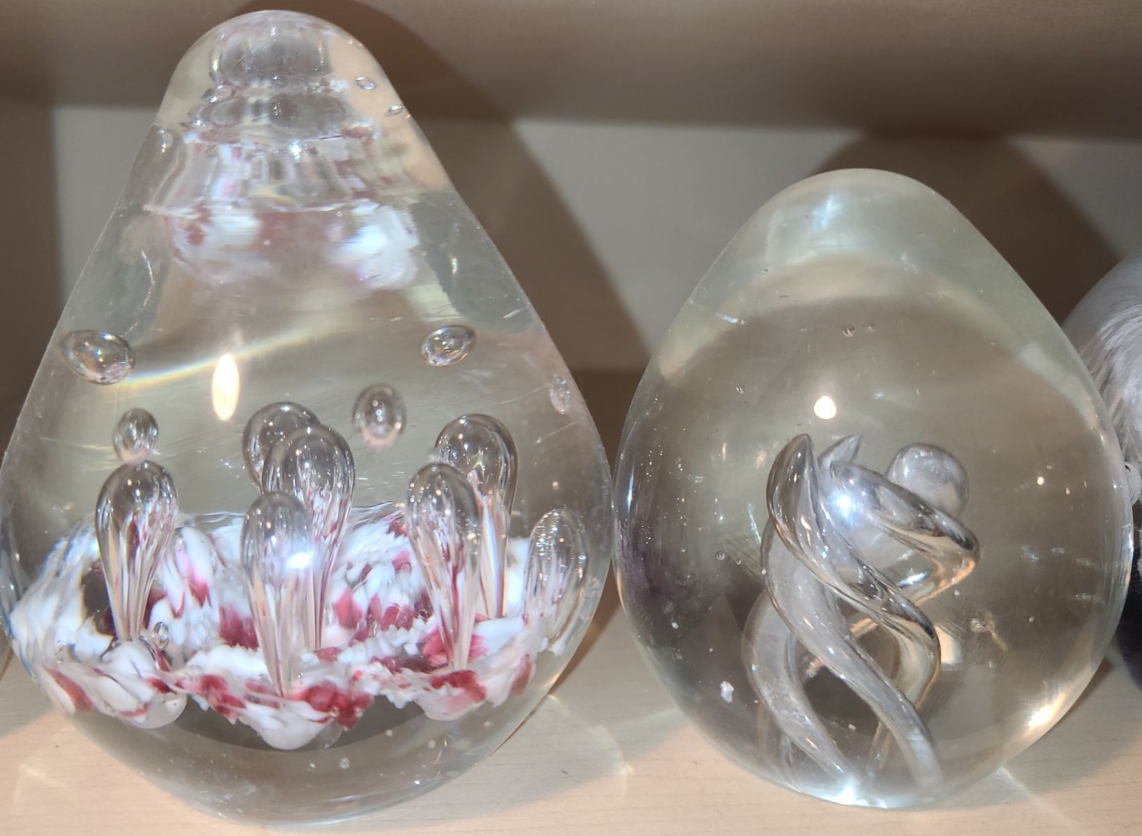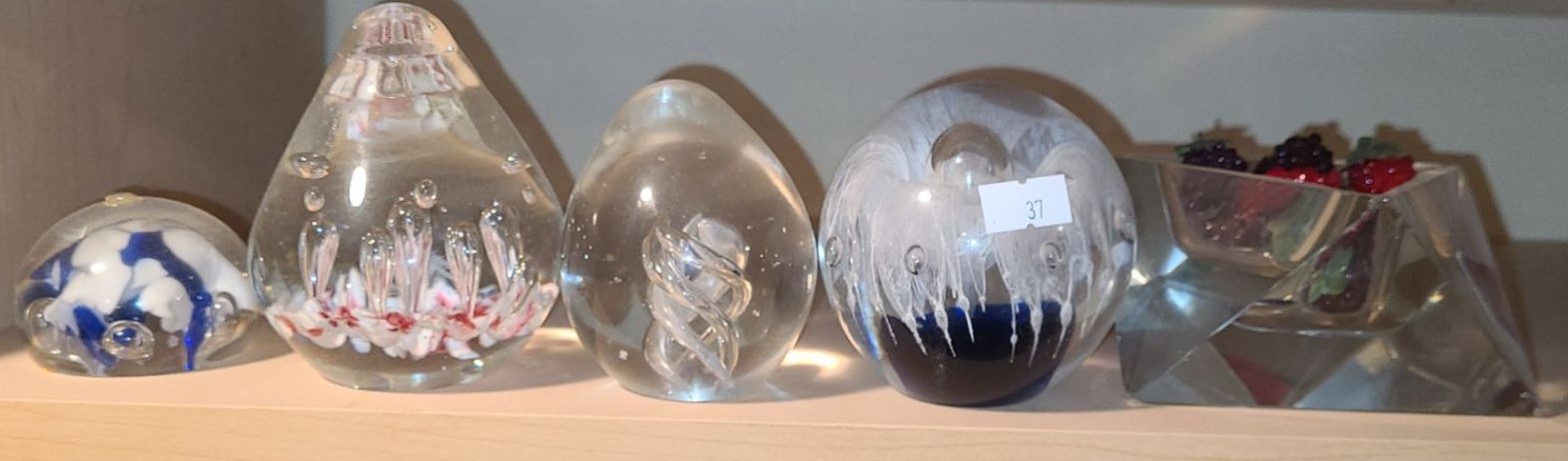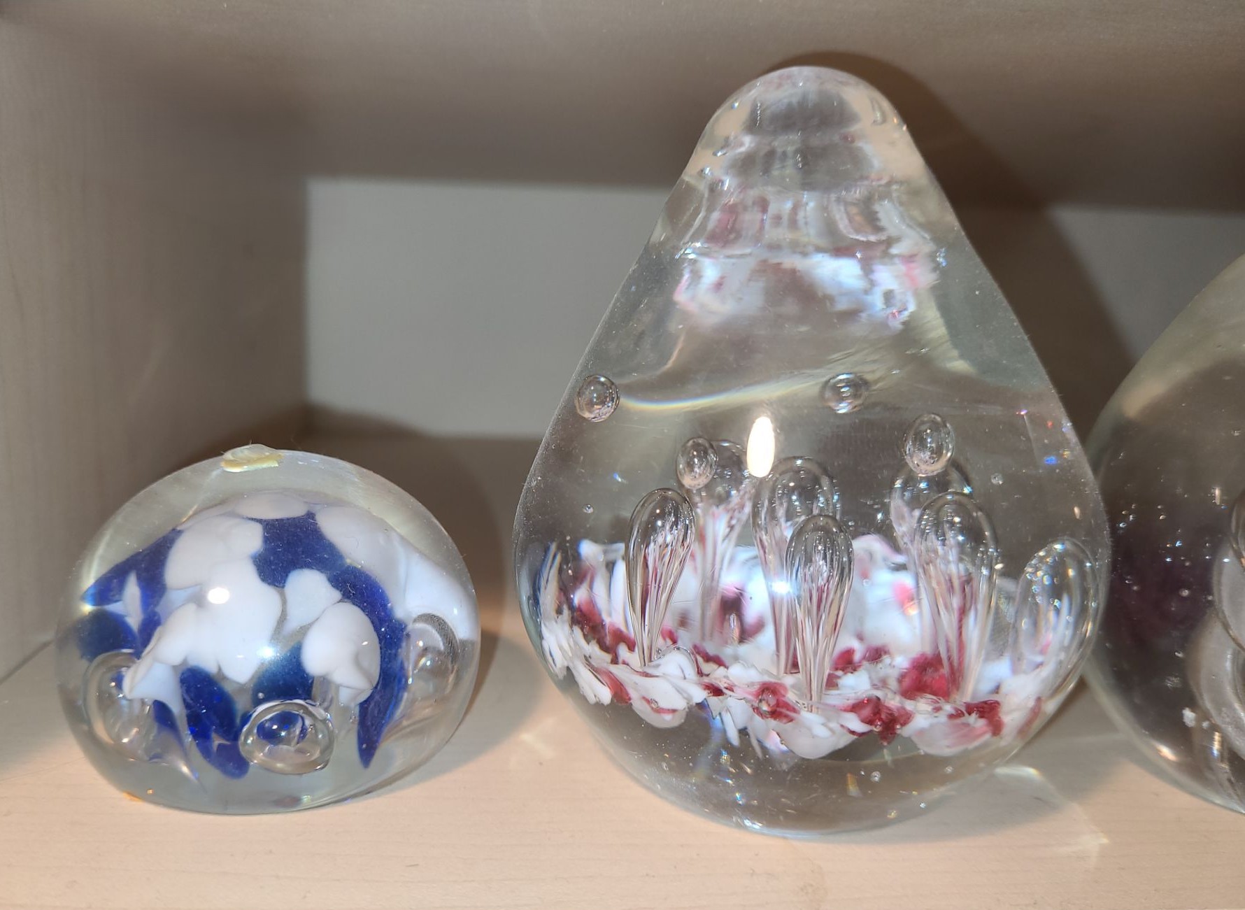 Blown Glass Paperweights Tallest: With Pink Flowers 4 T and Glass Bowl