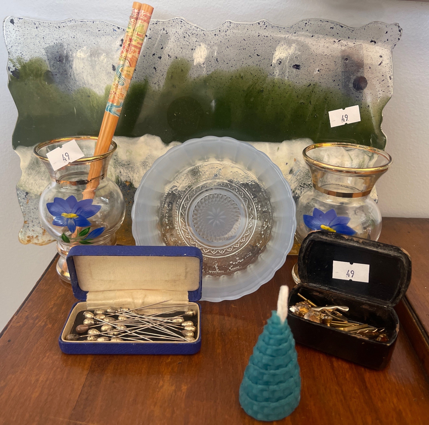 Blue & Green Decorative Art Glass Antique Pins & More
