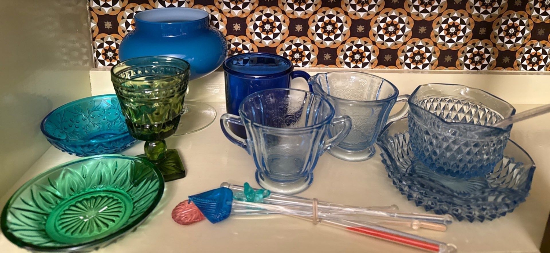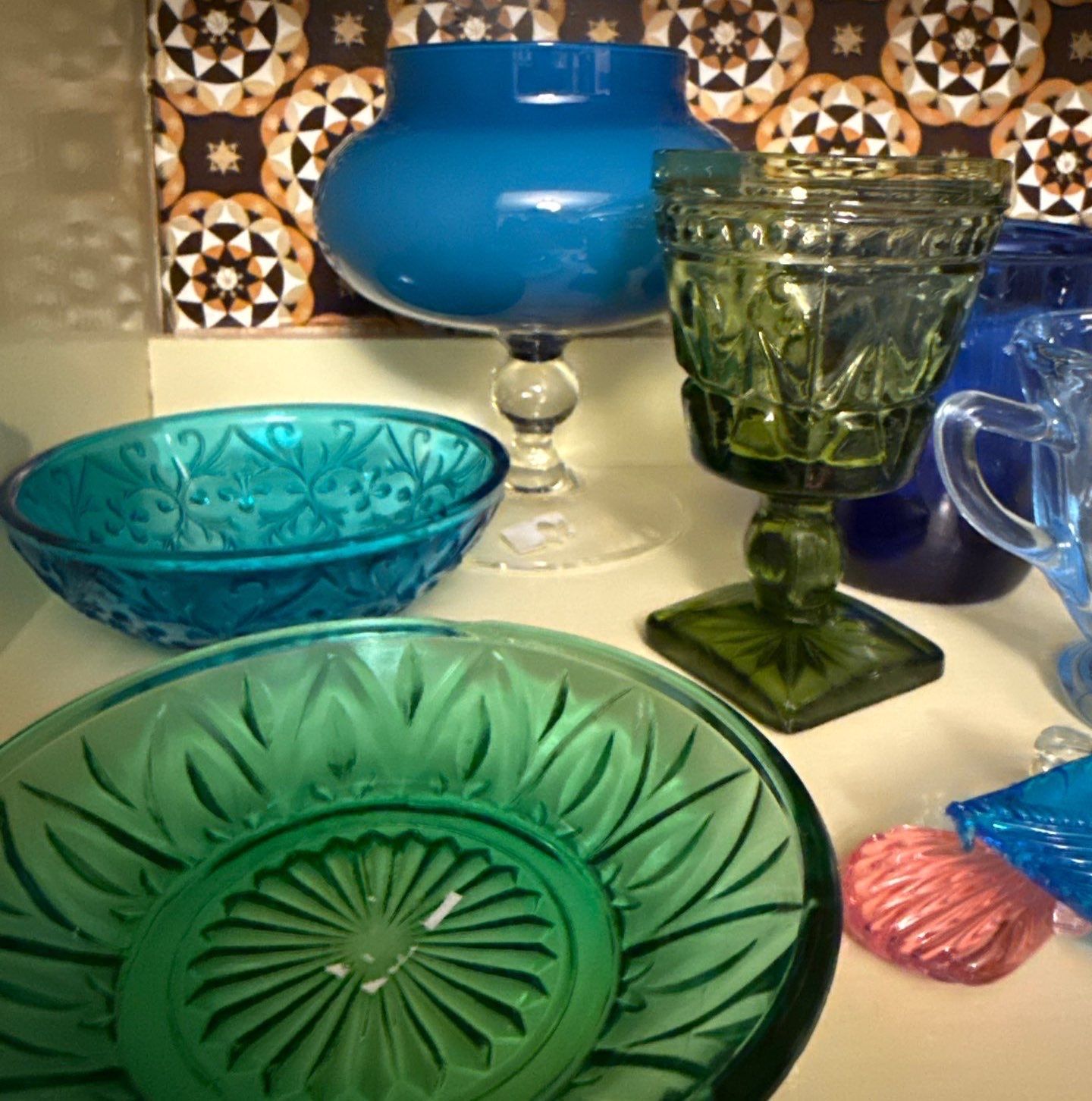 Blue/Green Decorative Glassware Collection Incl. Depression Glass