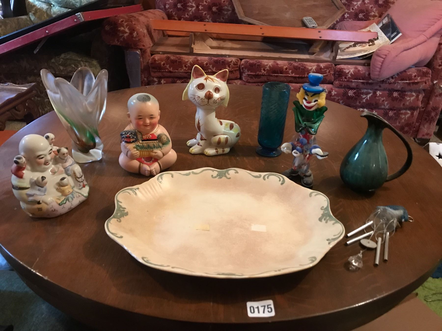 Blue Mountain Pitcher, Antique Platter, Glass Clown, Vases & Porcelain