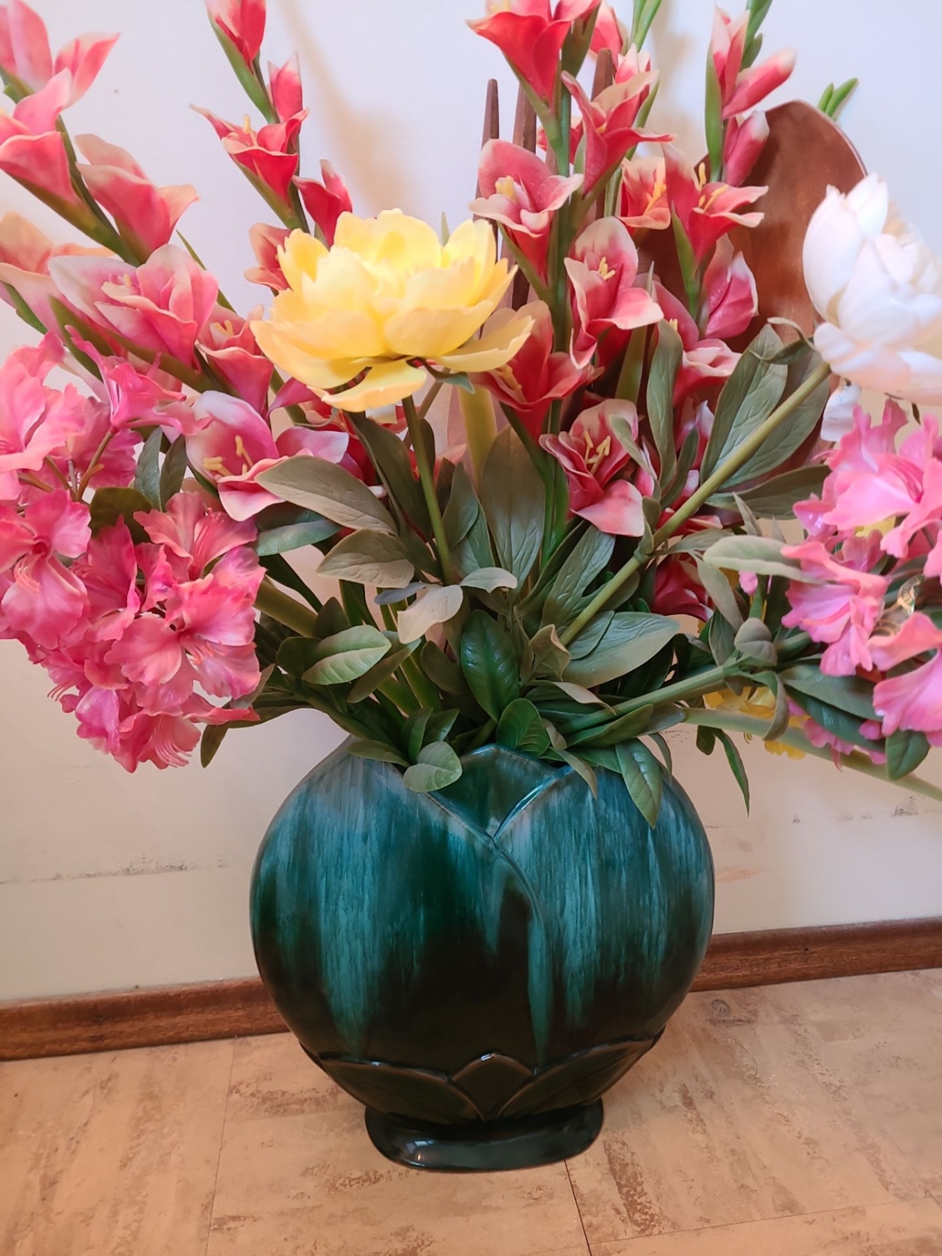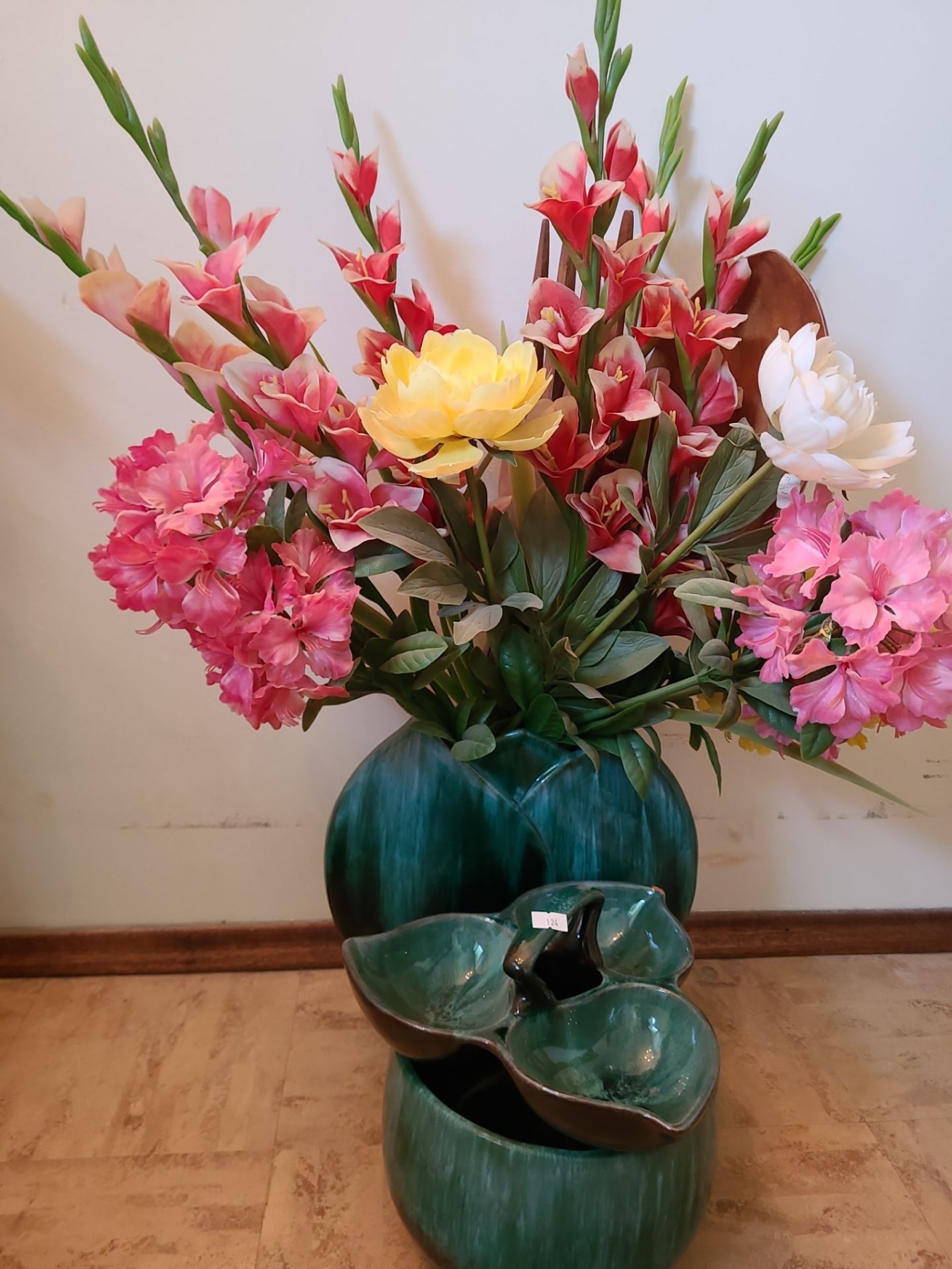 Blue Mountain Pottery Vase 12 T, Bowl 8" Diameter, and Sectioned Server 10 W, 4 T, Flowers Included