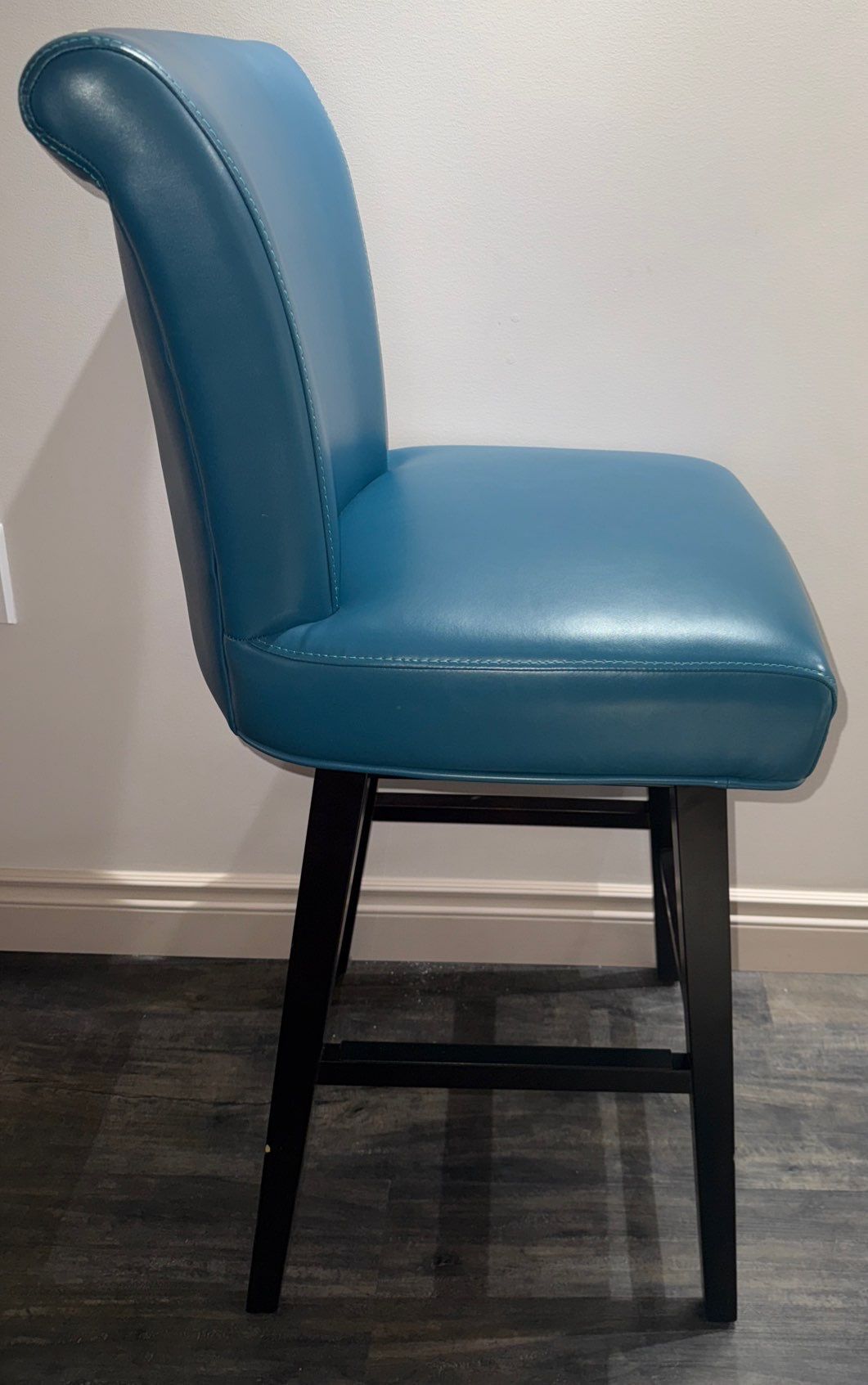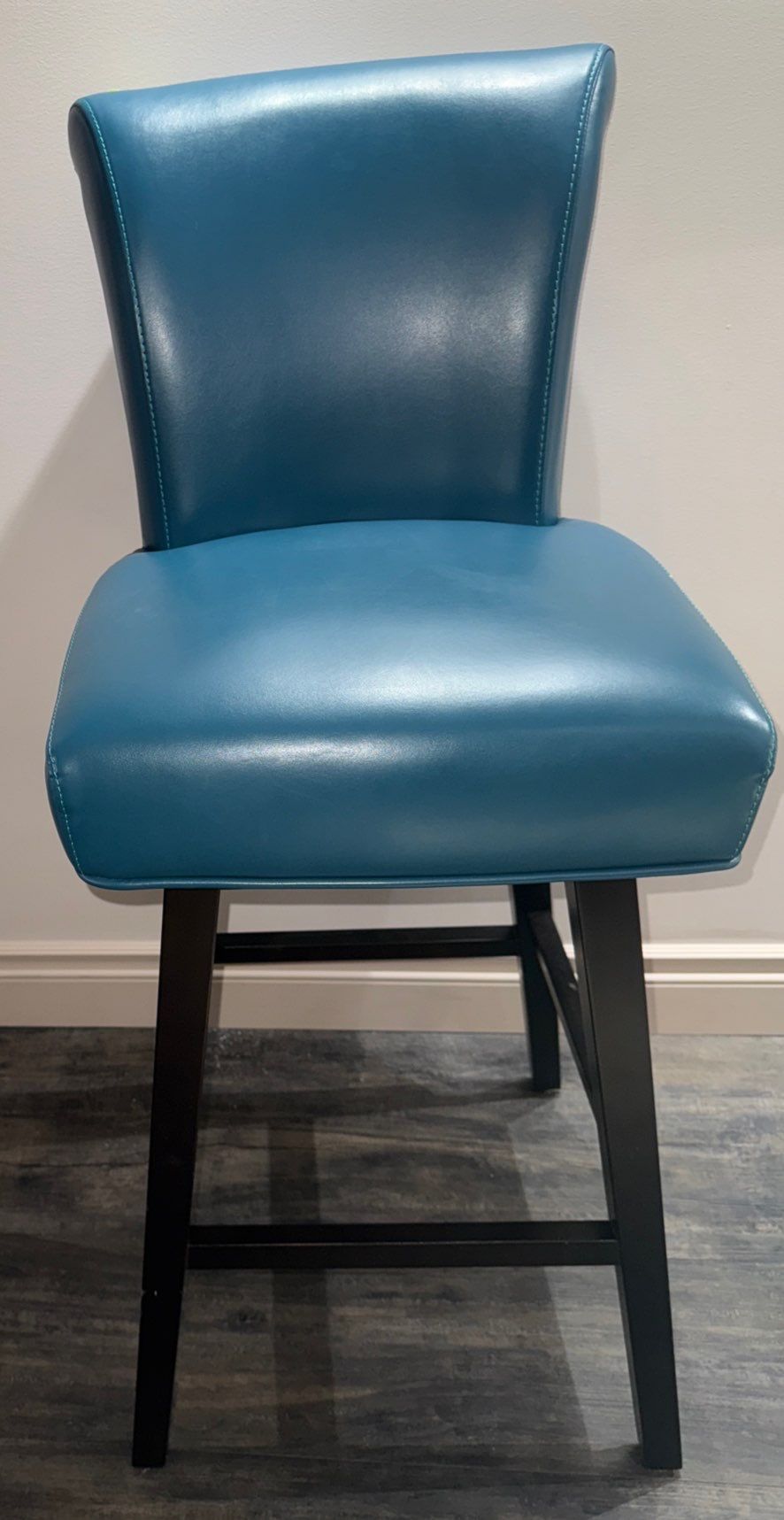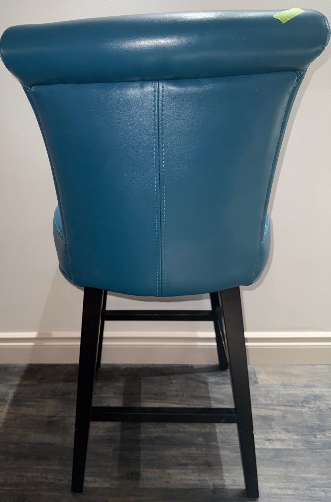 Blue Swivel Counter Bar Stool W/High Back & Wooden Legs Leather Bar Chair