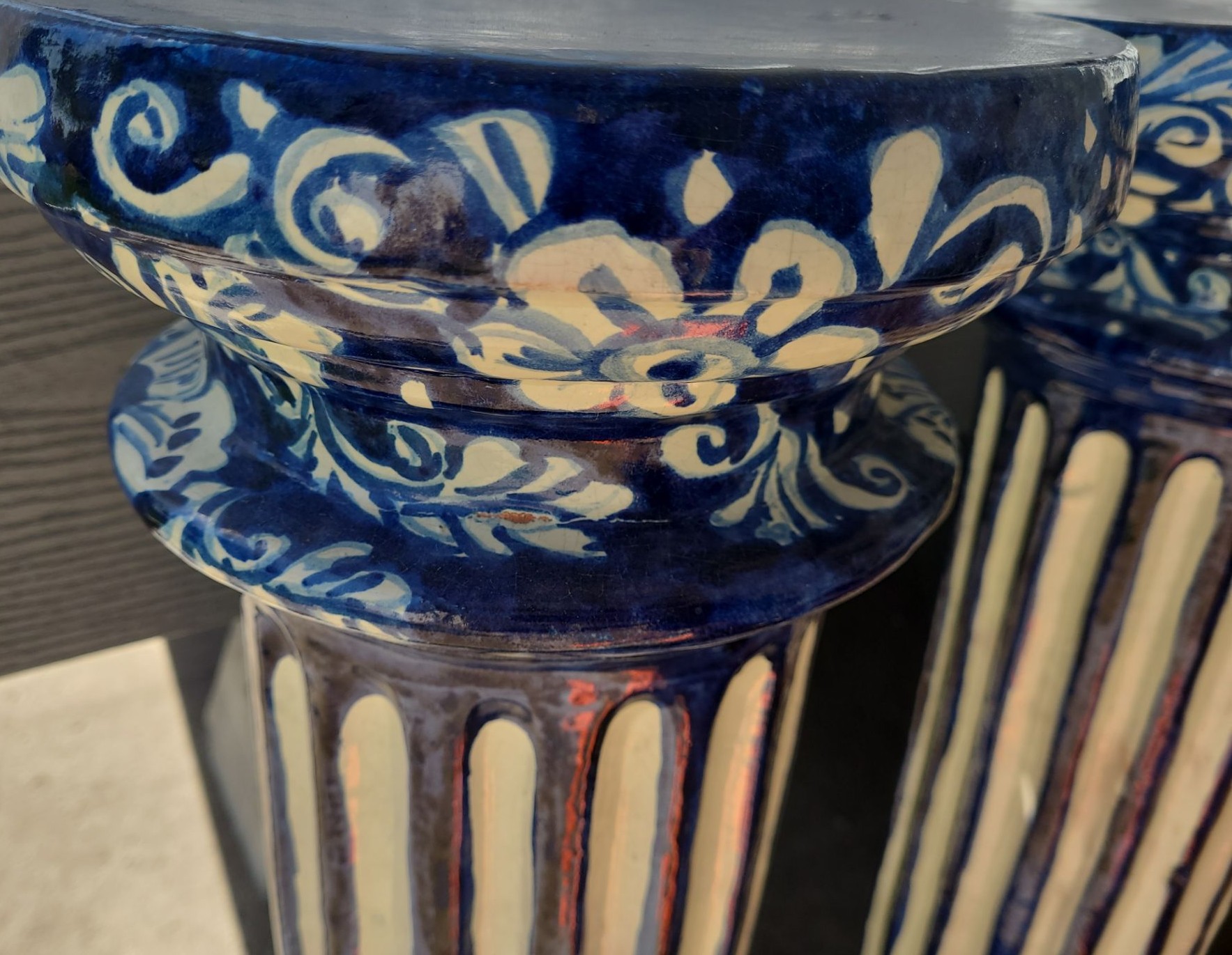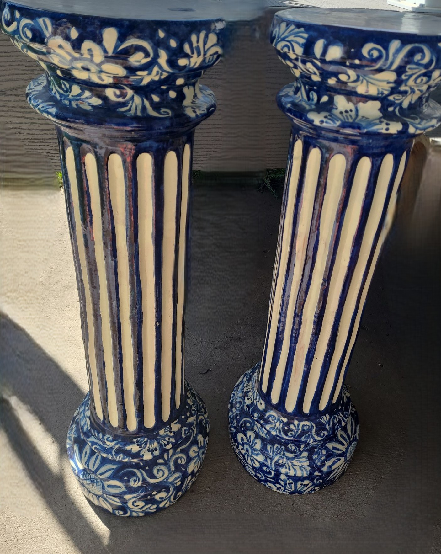 Blue & White Decorative Ceramic Pillars 10 dia at the top), 35 h