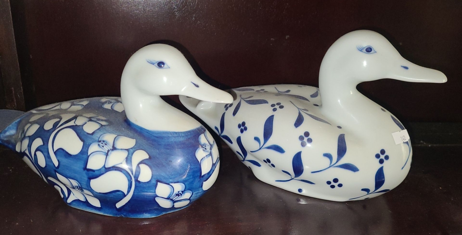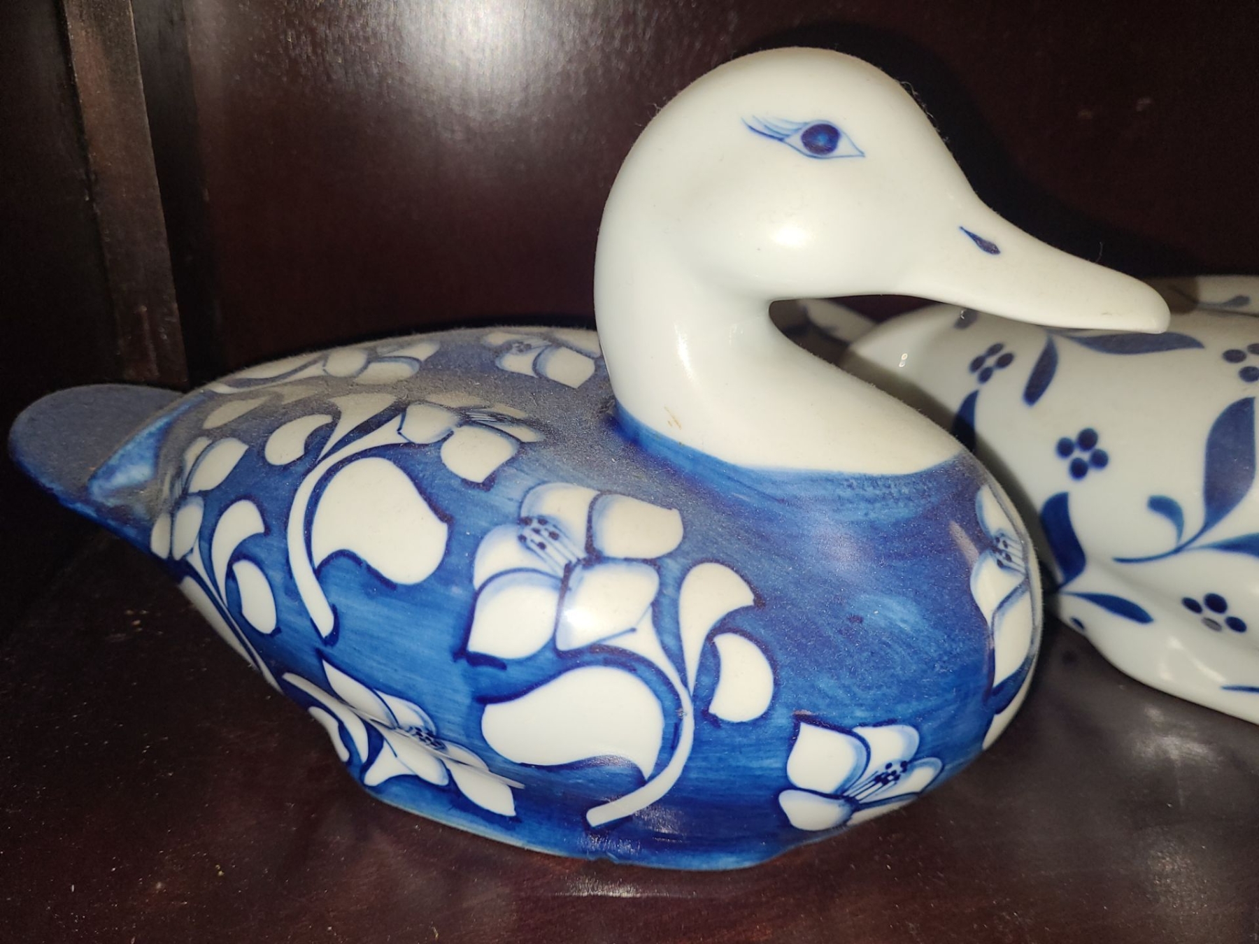 Blue and White Decorative Ducks- Tallest: 11 W, 8 T