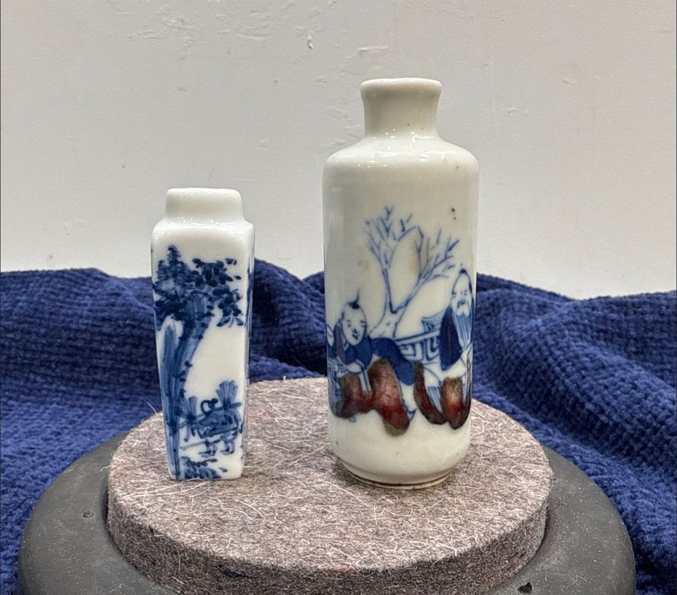 Blue and White Handpainted Snuff Bottles 2.5H, 3H (lids missing)