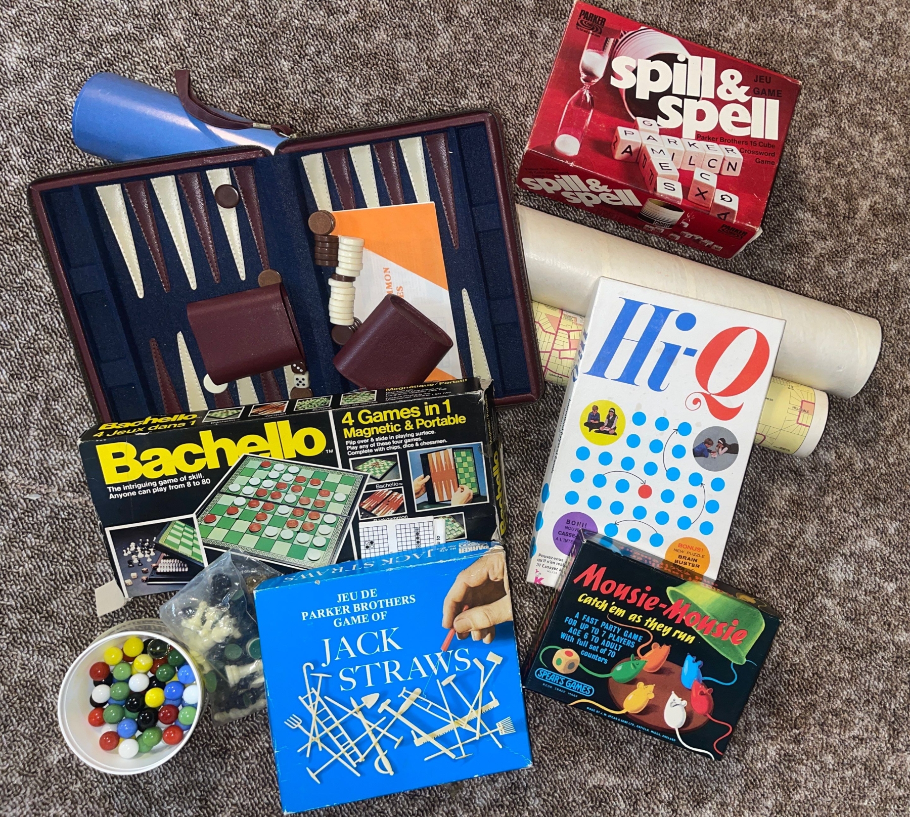 Board Games Bundle: Bachello, Hi-Q, Spill + Spell, Jackstraws & More