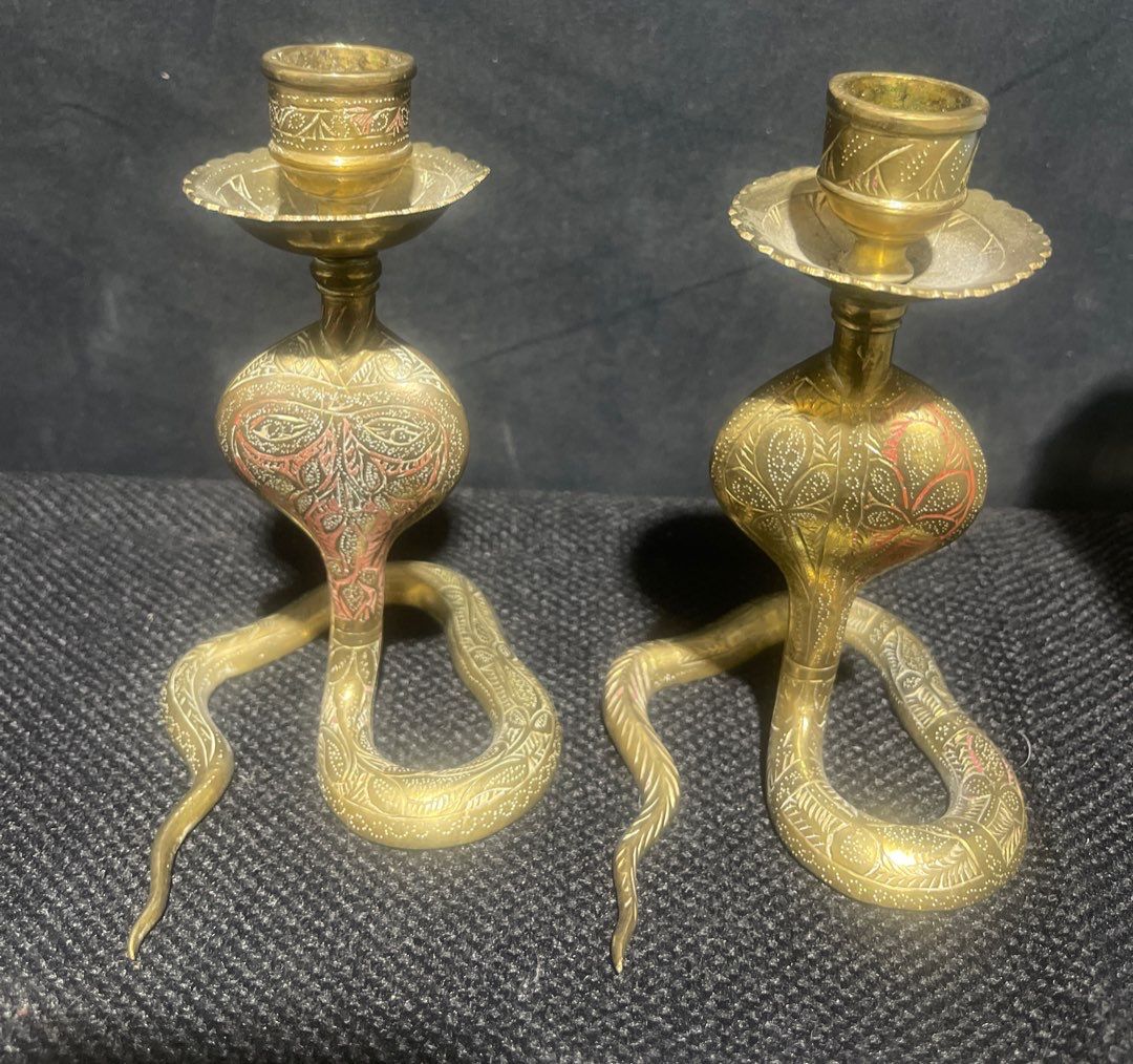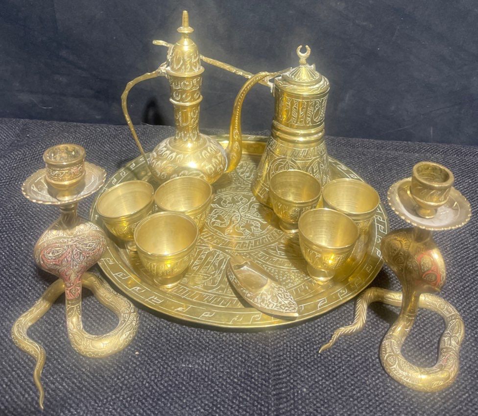 Bodacious Brass Samovar / Tea Set w/ Cobra Candle Holders & More