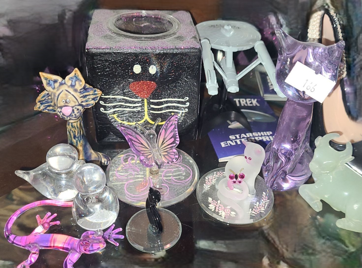Bookcase Decor Featuring Glass Cats and Birds, and More!