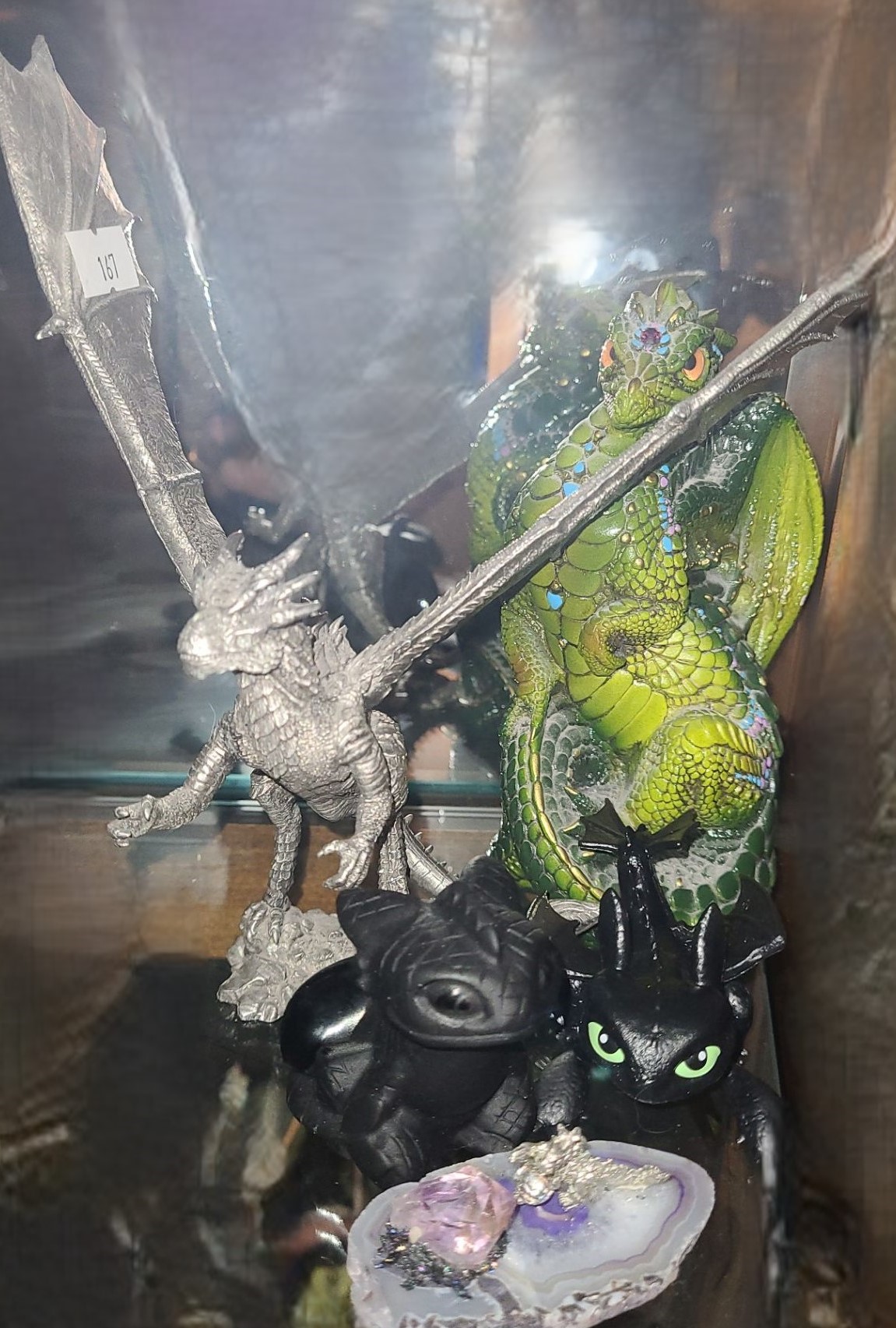 Bookcase Decor Featuring Pewter Dragon 7 T, and More!