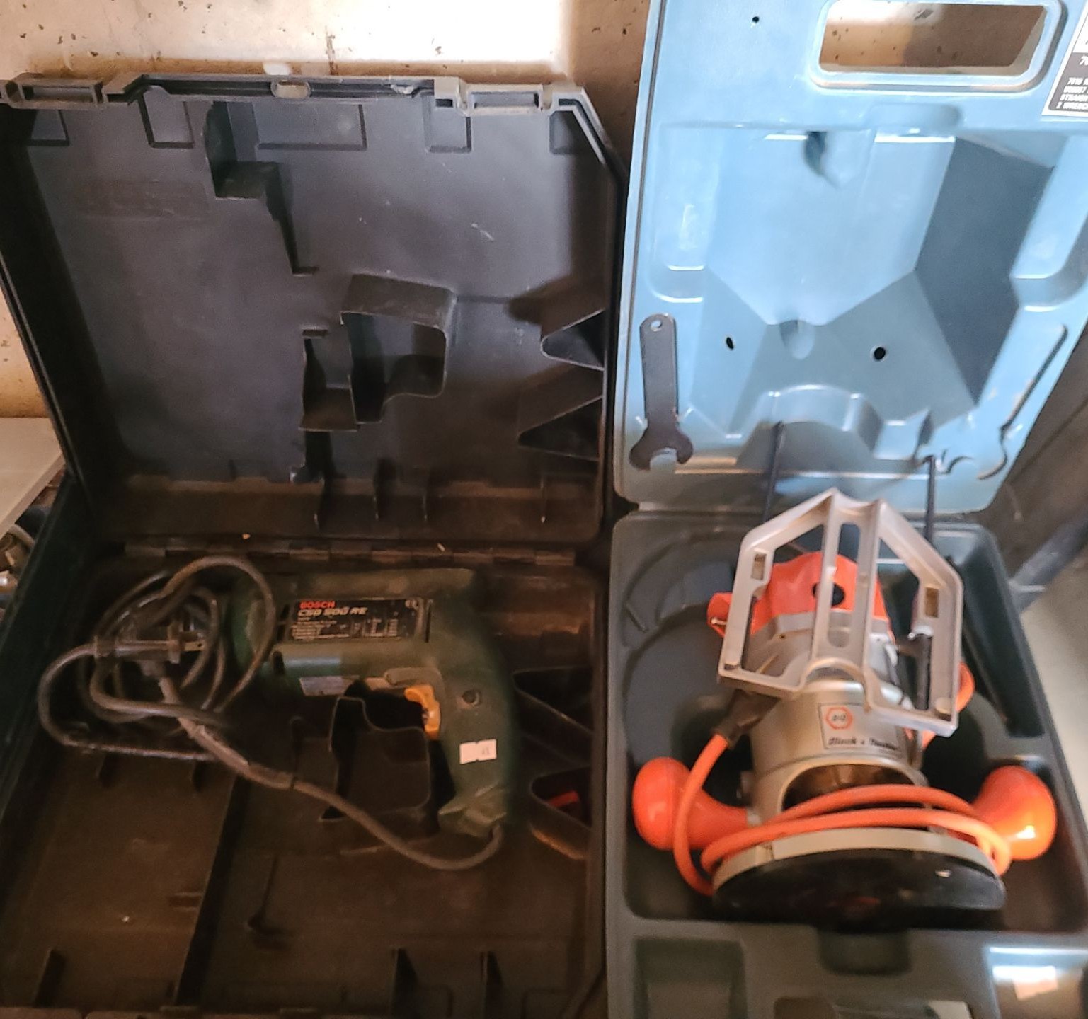 Bosch CSB500RE Drill, B&D 7610-04 Router and 7611 Kit, Toolbox 20.5 W, 8 D, 11 T and More!