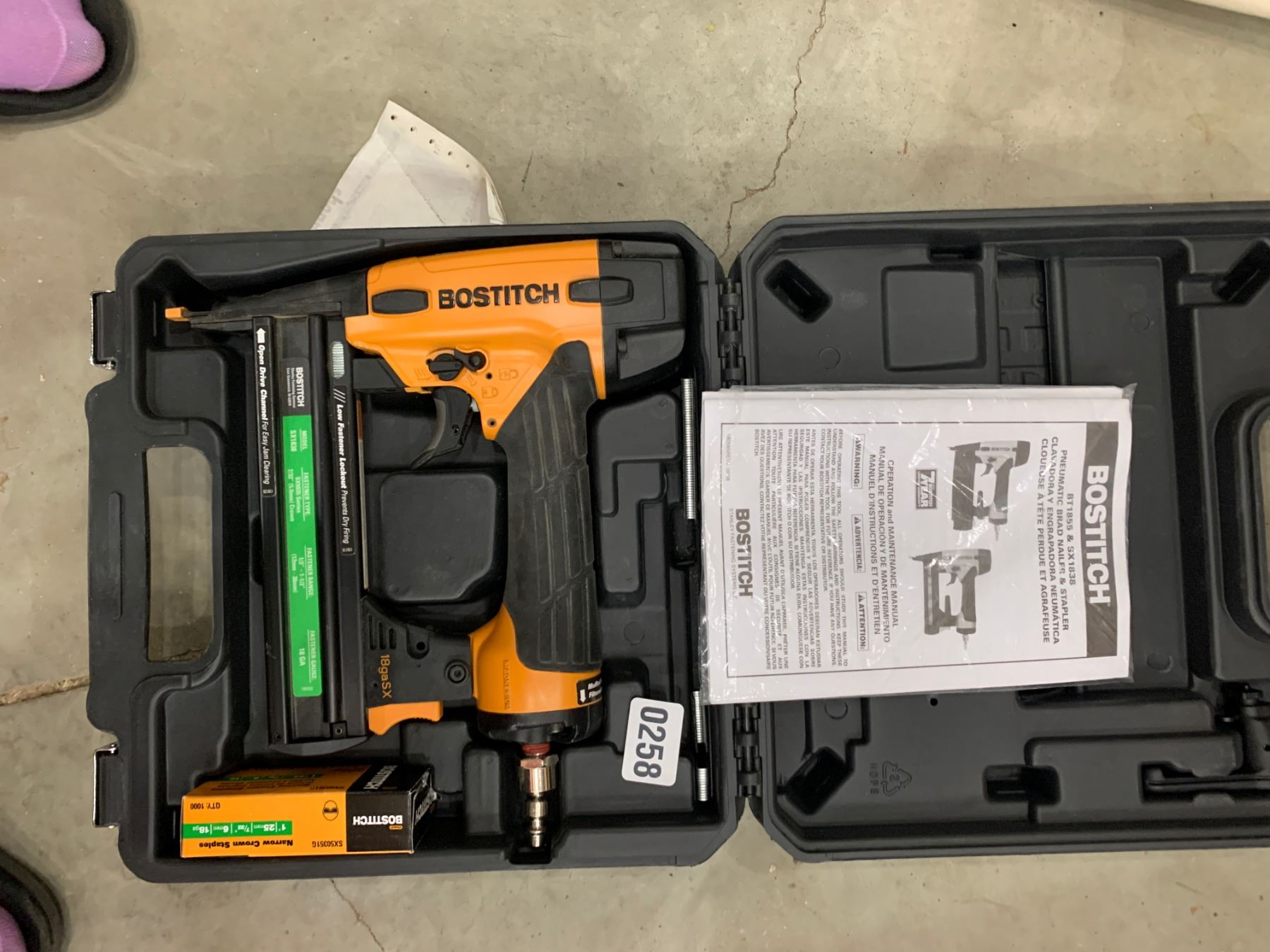 Bostitch SX1838 Pneumatic 18gaSX Crown Nailer 18GA with Plastic Case. Item: Pneumatic 18gaSX Crown Nailer. Item includes: Plastic Case. Brand: Bostitch. Model: Pneumatic 18gaSX. Model Number: SX1838. GA: 18. Accepts 7/32" to 1-1/2" Crown Nails 18GA.