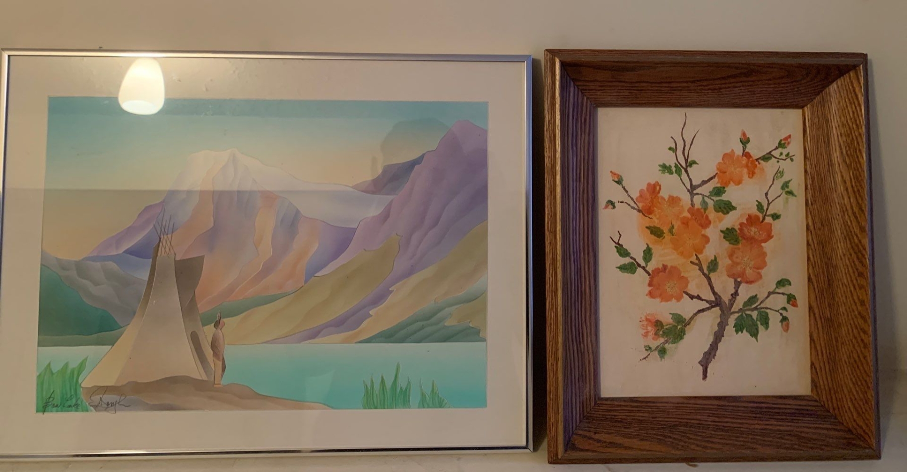 Bow Lake Indigenous Sketch w/ Floral Oil on Board Art 16x12