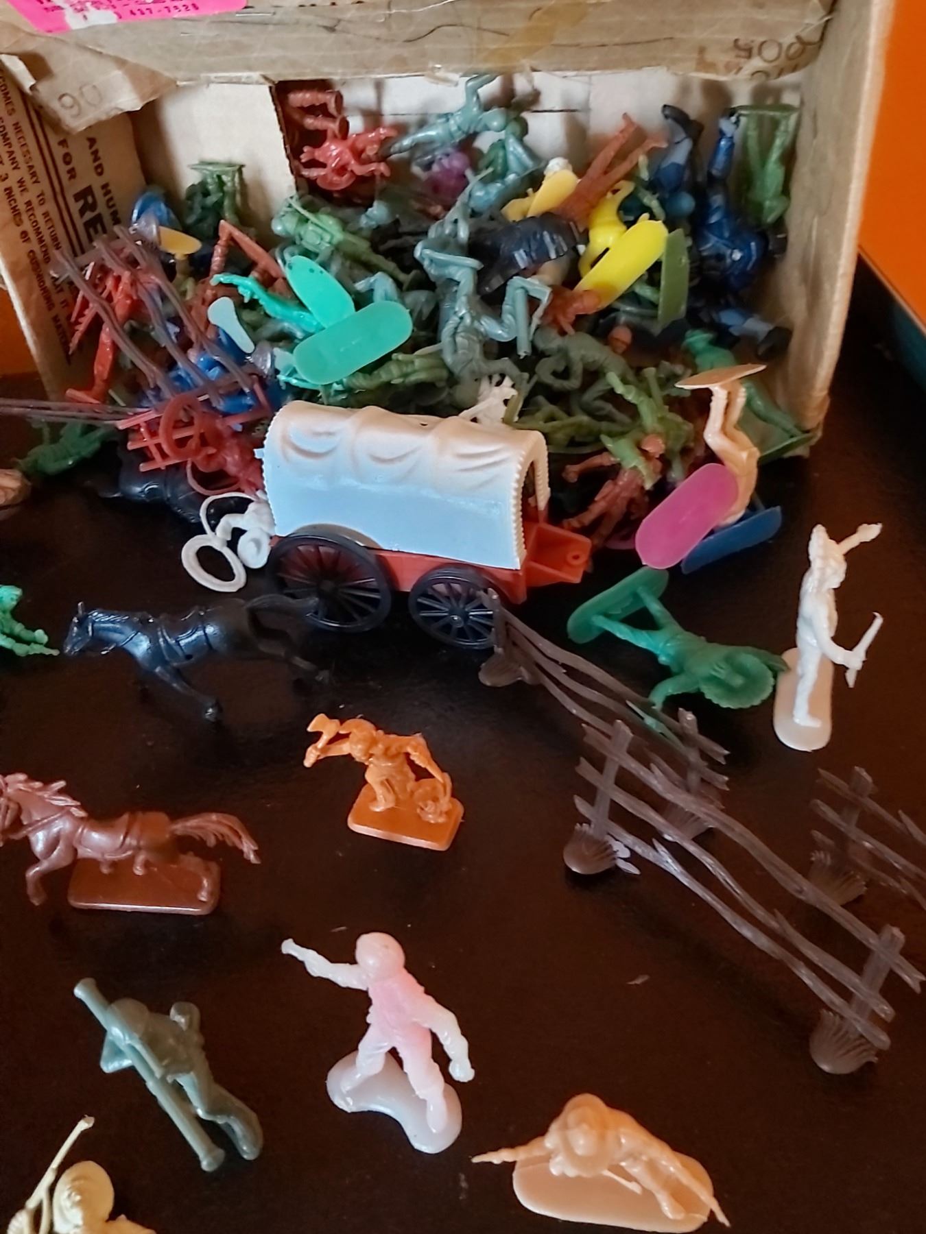 Bow, Plastic Cowboy and Indian Figures, Soldier Figures, Elastic Band Gun