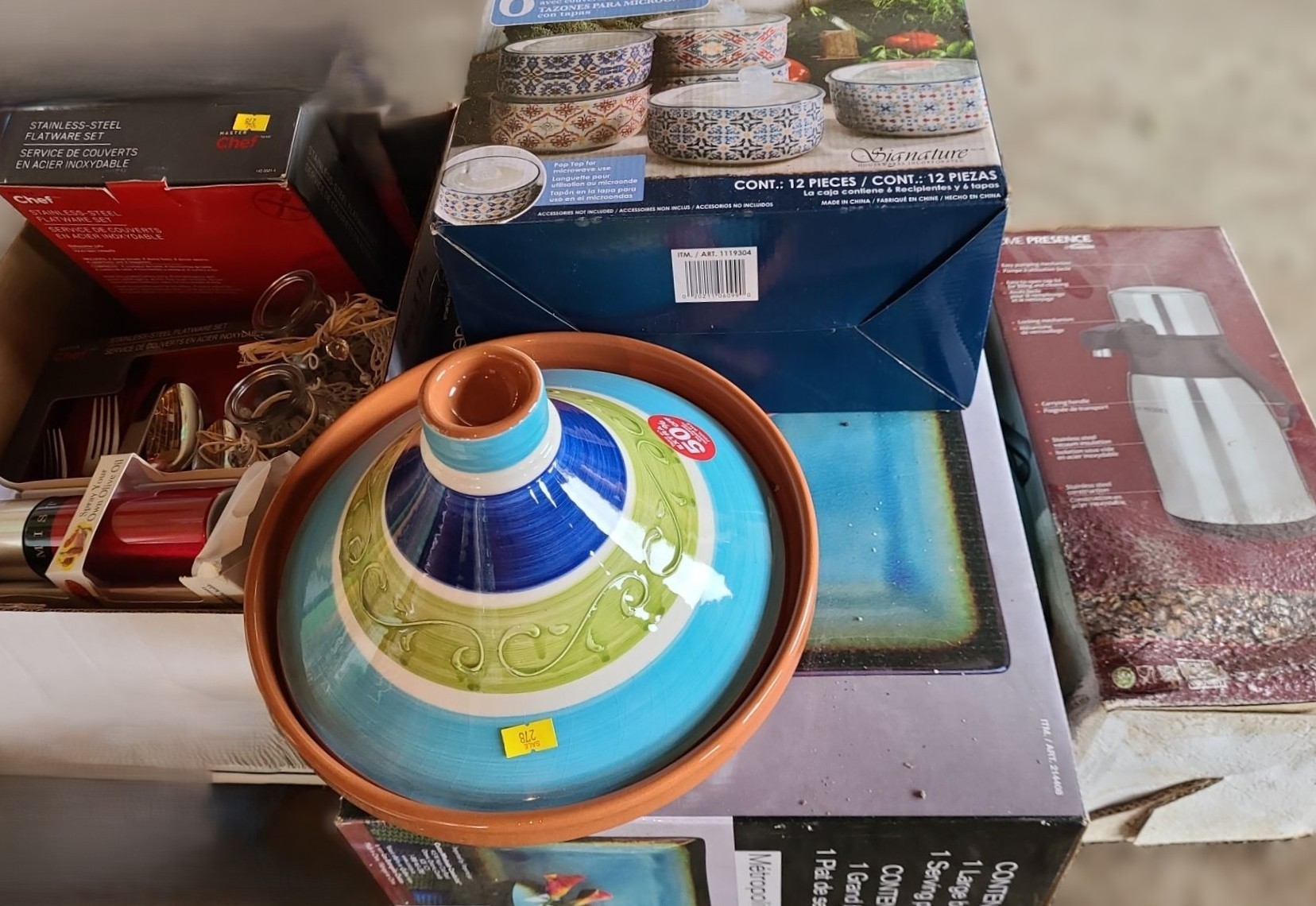 Bowls w/ Lids, Flatware, Tangine, Thermal Carafe and More! (Some New in Boxes/ Some Boxes Damaged)