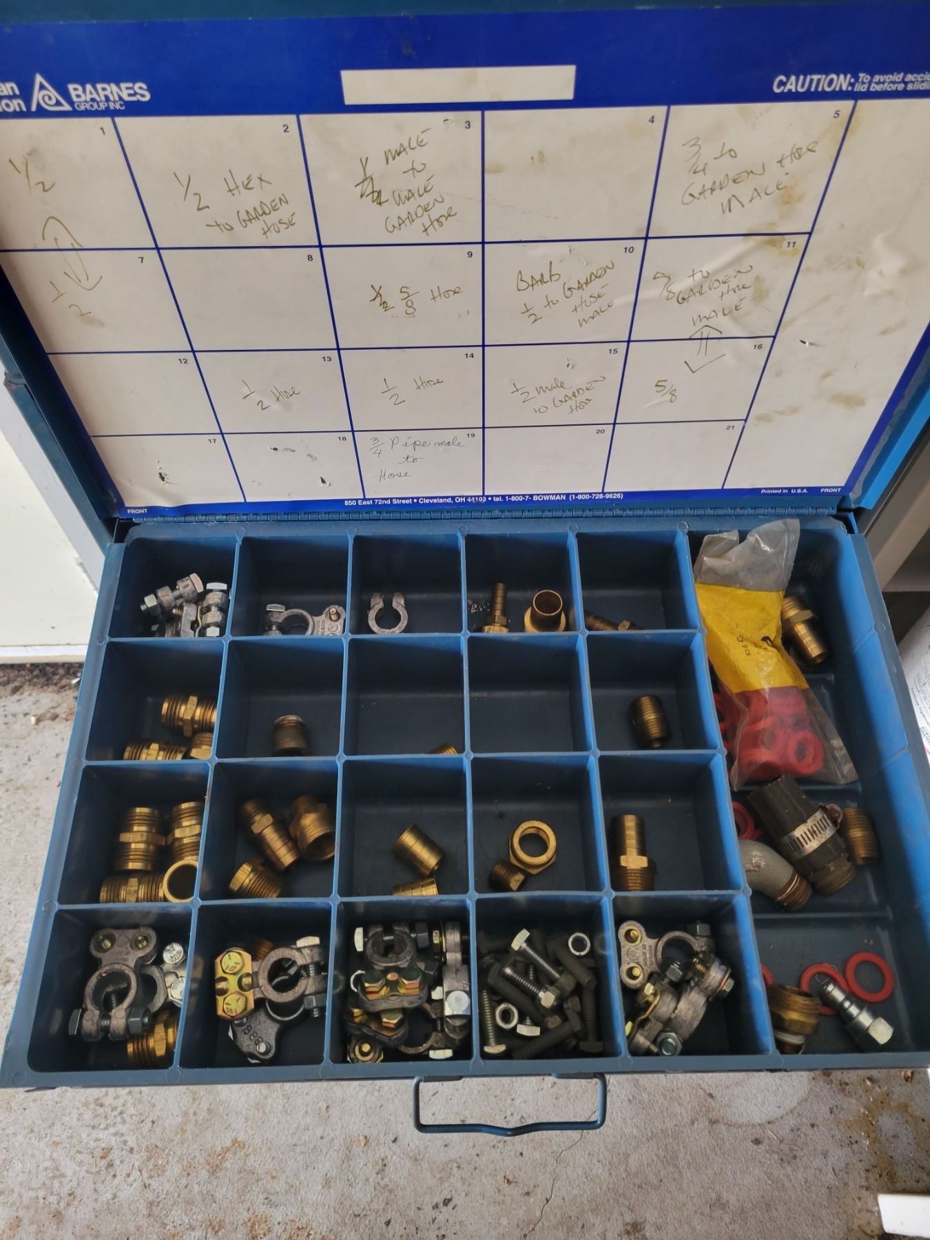 Bowman - 13 Drawer Storage with Pins, Bushings, Clamps, Hose Fittings, O Rings & Terminals