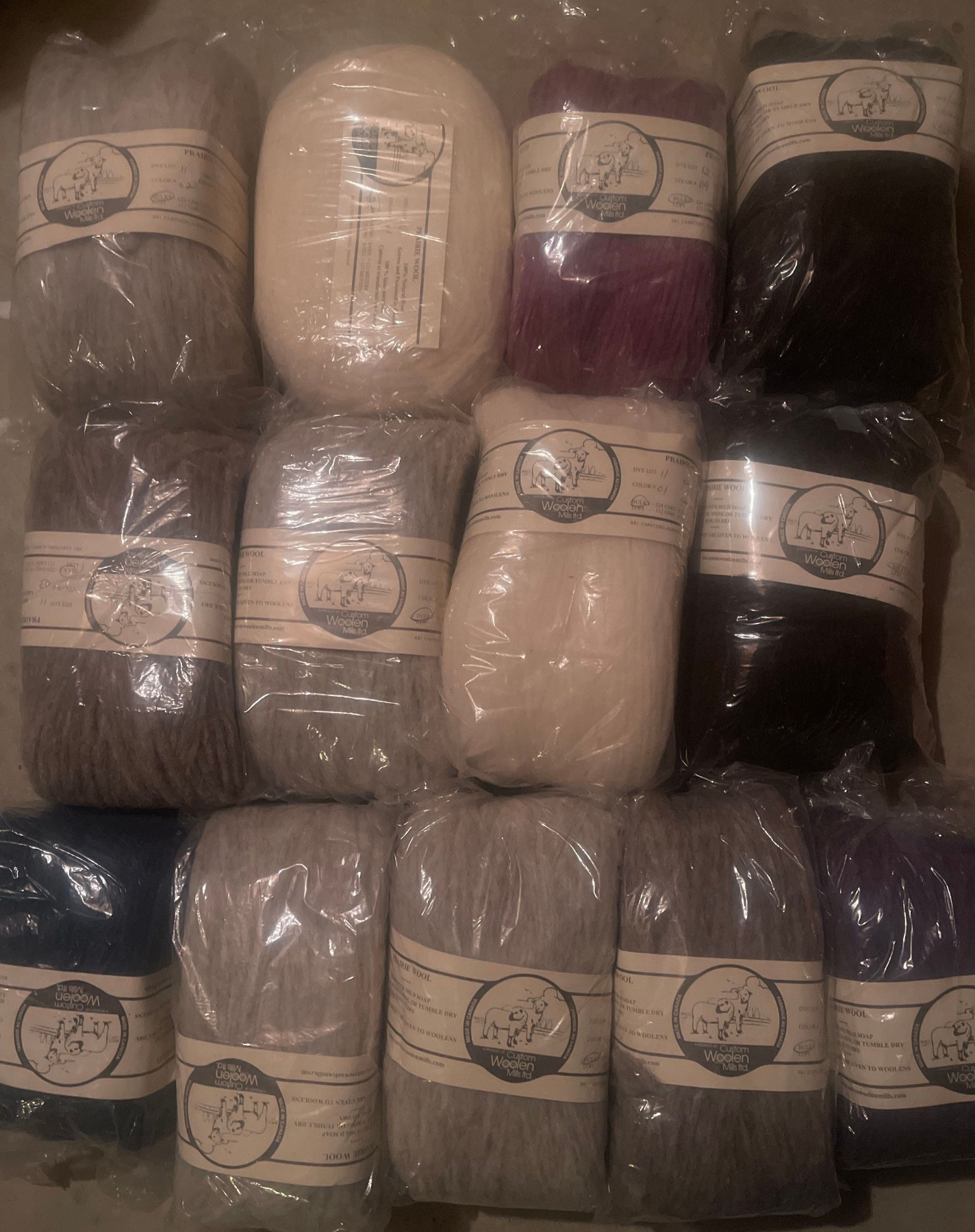 Box Of Bulky Custom Woolen Mills Ltd Packages of Canadian Made Wool Multiple Colors See Pictures For Color