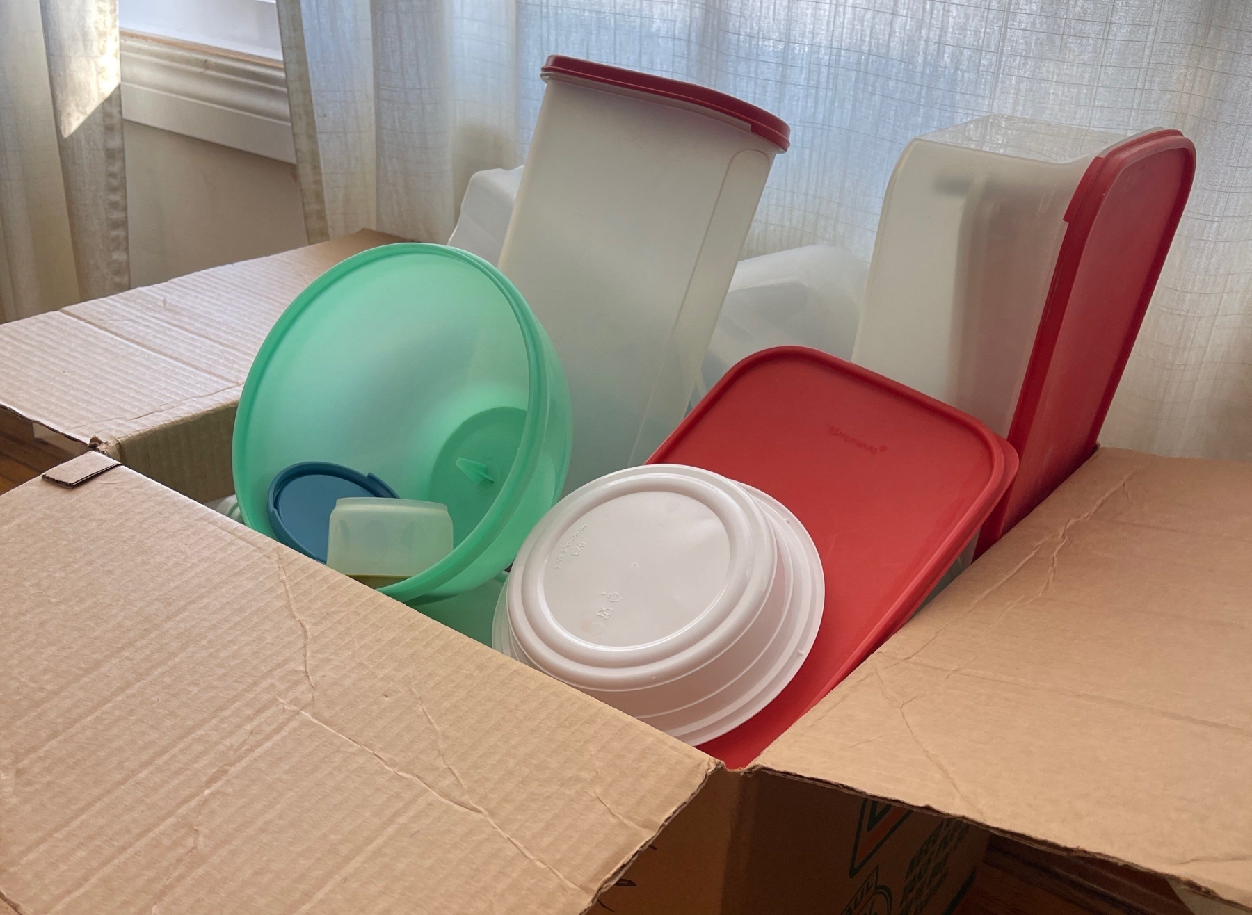 Box Of Plastic Containers w/Few Tupperware Pieces