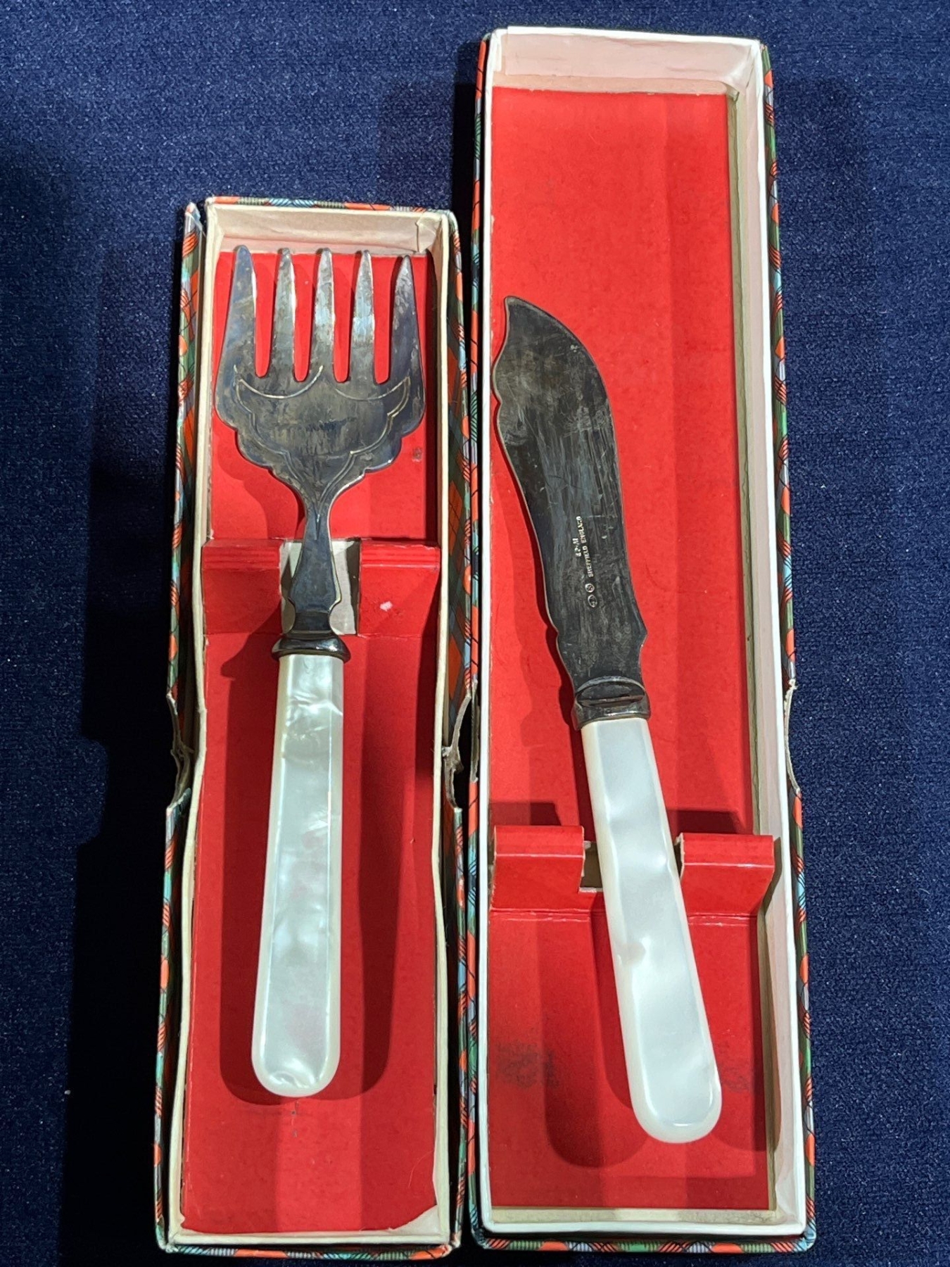 Box of Silver-Plated Flatware and Bonus Pieces with Mother Pearl Handles