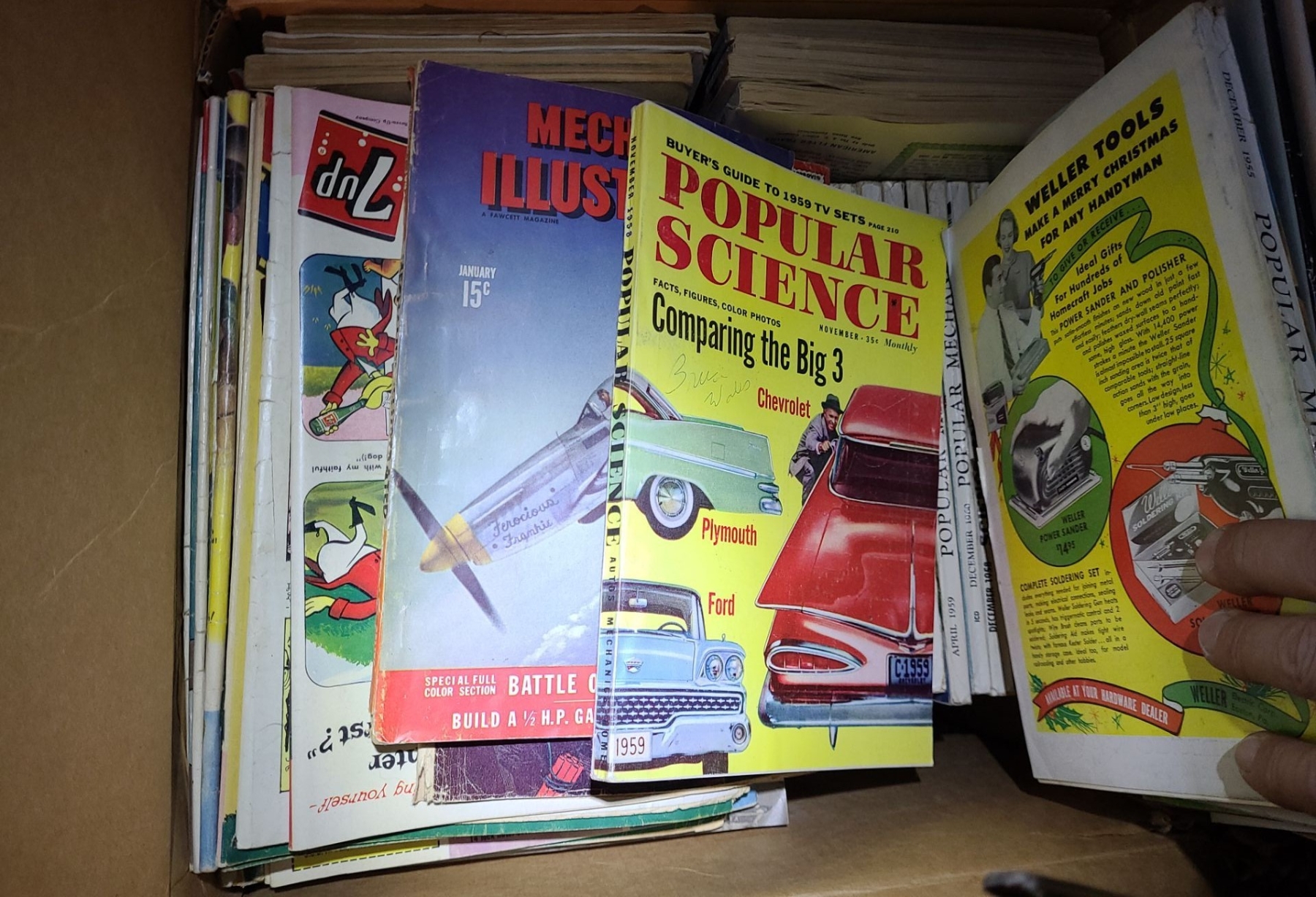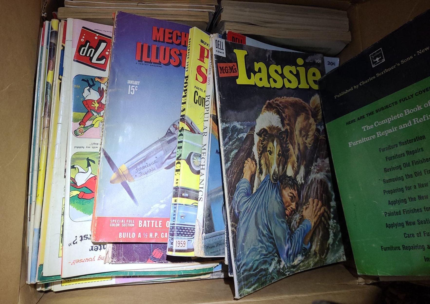 Box of Vintage: Popular Science and Popular Mechanics Magazines, Some Comics, Rod & Gun Magazine