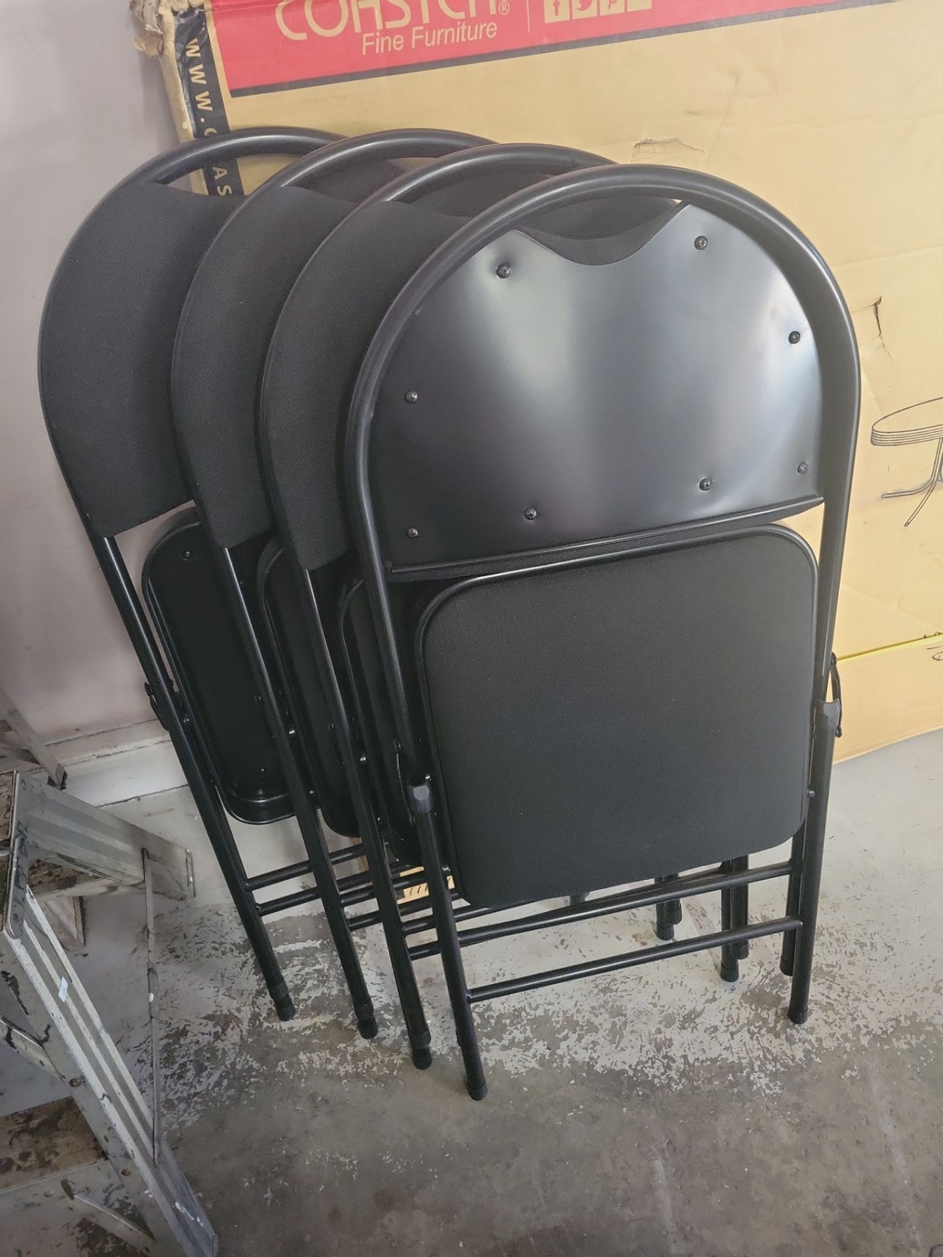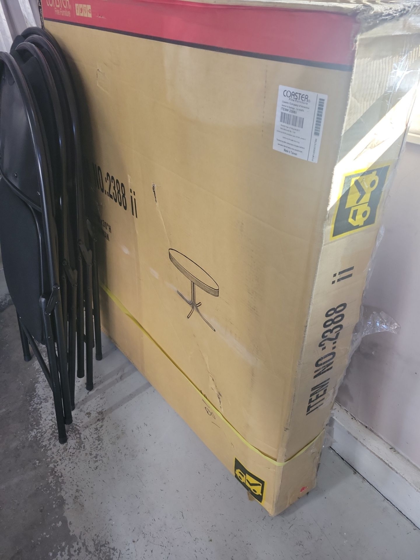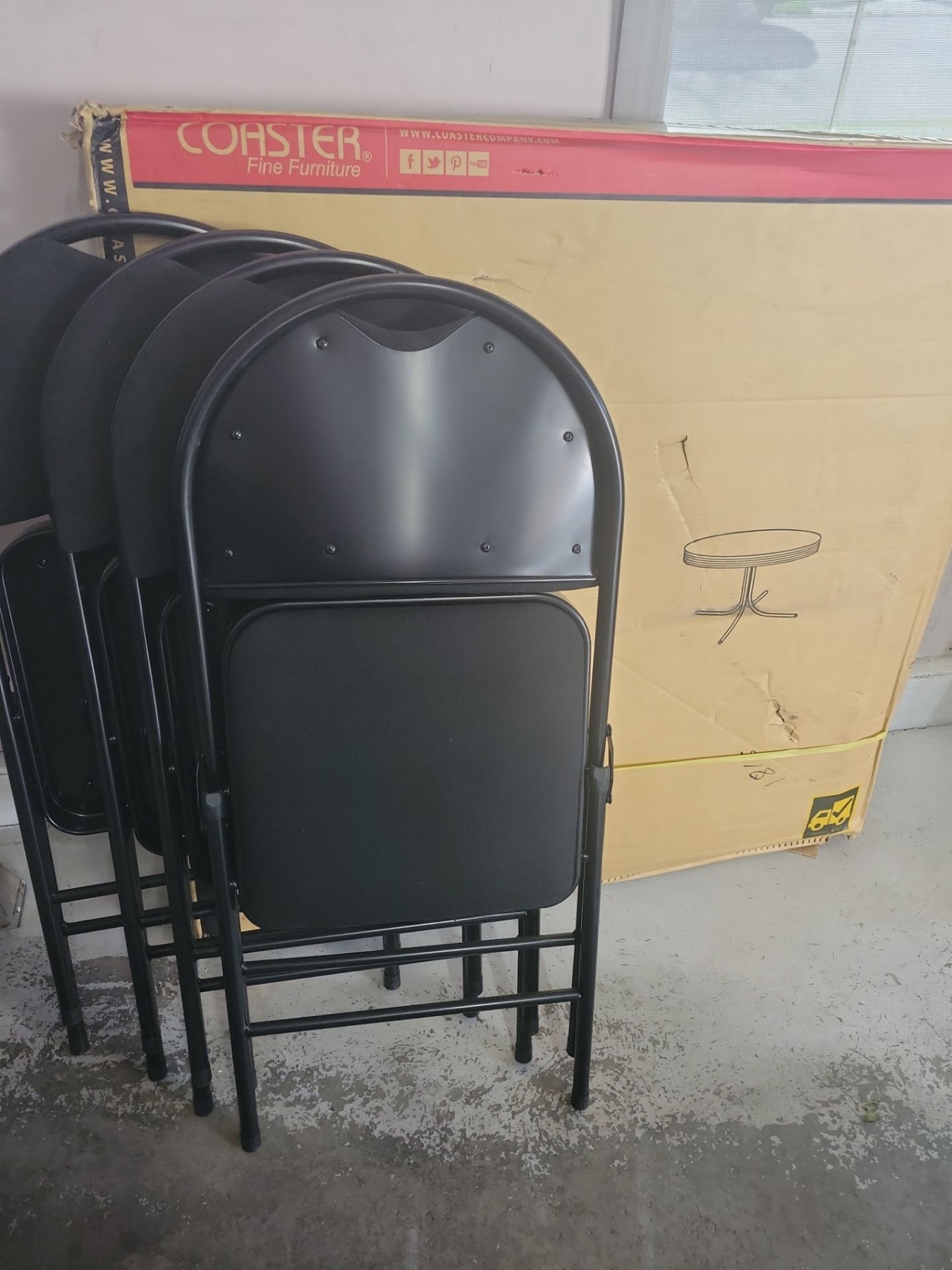 Brand New Pedestal Round Table w/ 4 Upholstered Folding Chairs