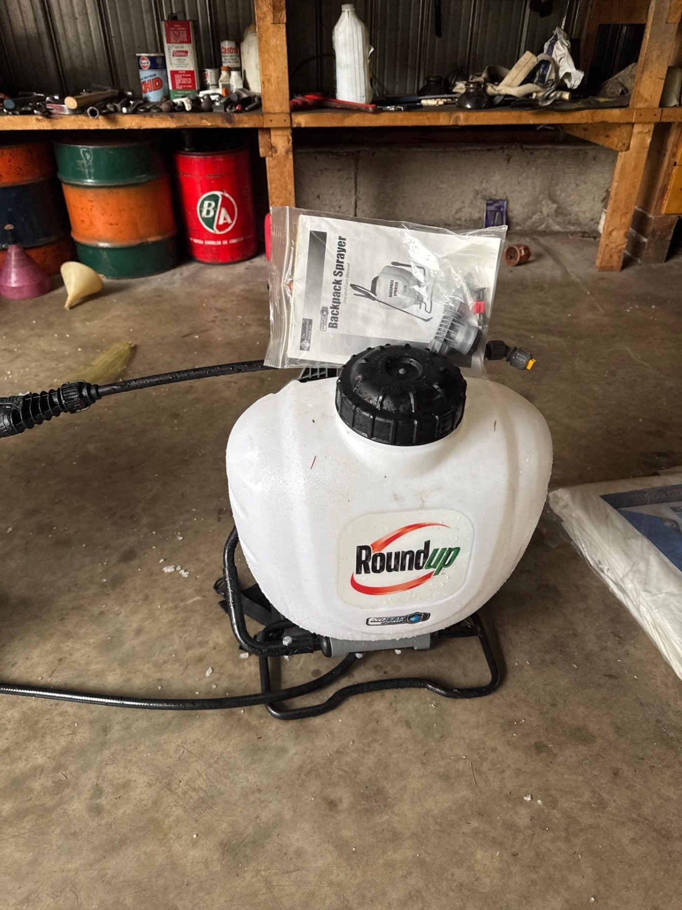 Brand new Roundup backpack sprayer with instructions and extra parts.