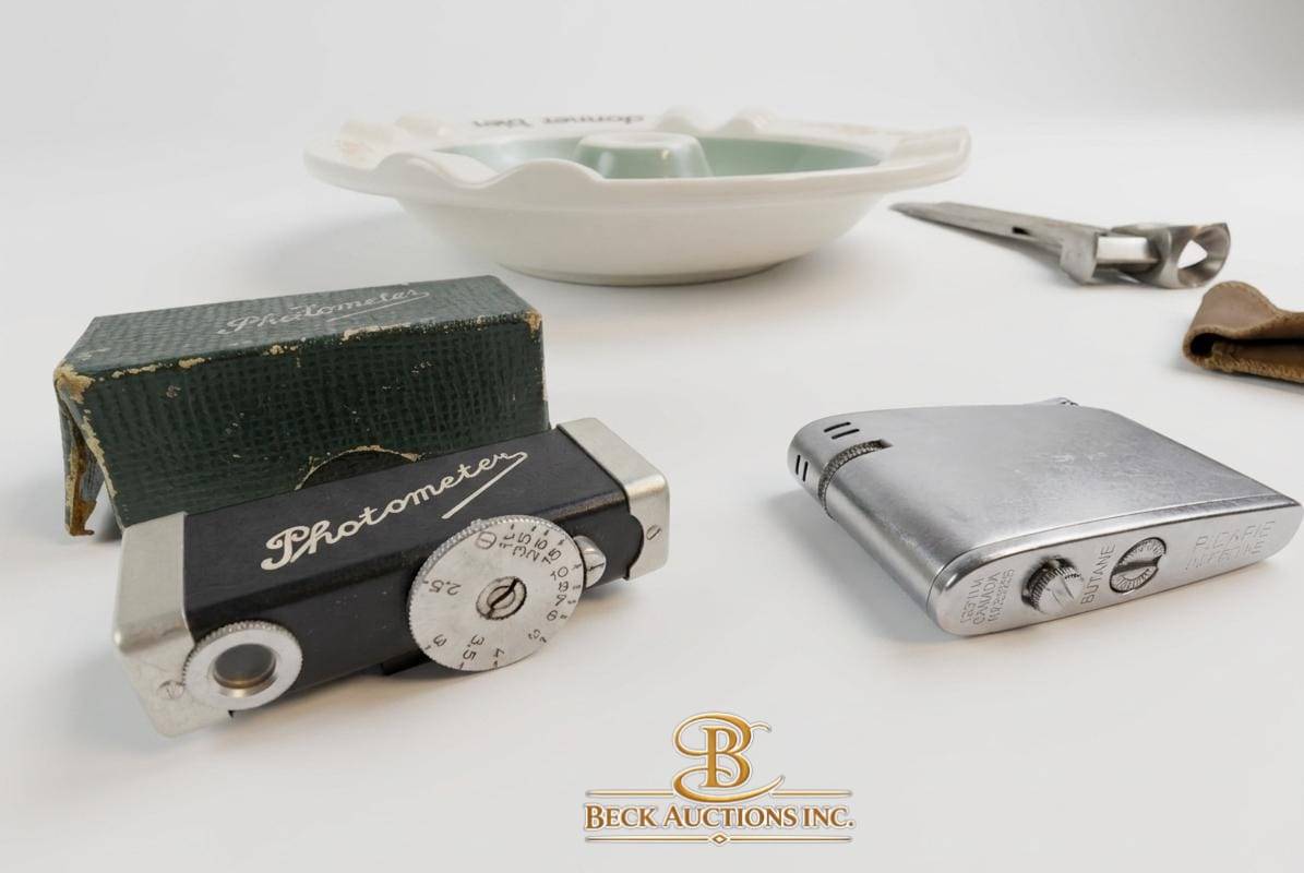 Bring home a standout pairing with this branded cigar ashtray and Photometer vintage camera flash—a perfect blend of style, craftsmanship, and collectible appeal. The ashtray offers a bold, display‑ready design ideal for enthusiasts, while the vintage flash adds authentic retro character sought after by photography collectors. Both pieces present beautifully and make an eye‑catching addition to any curated collection or décor setup.
