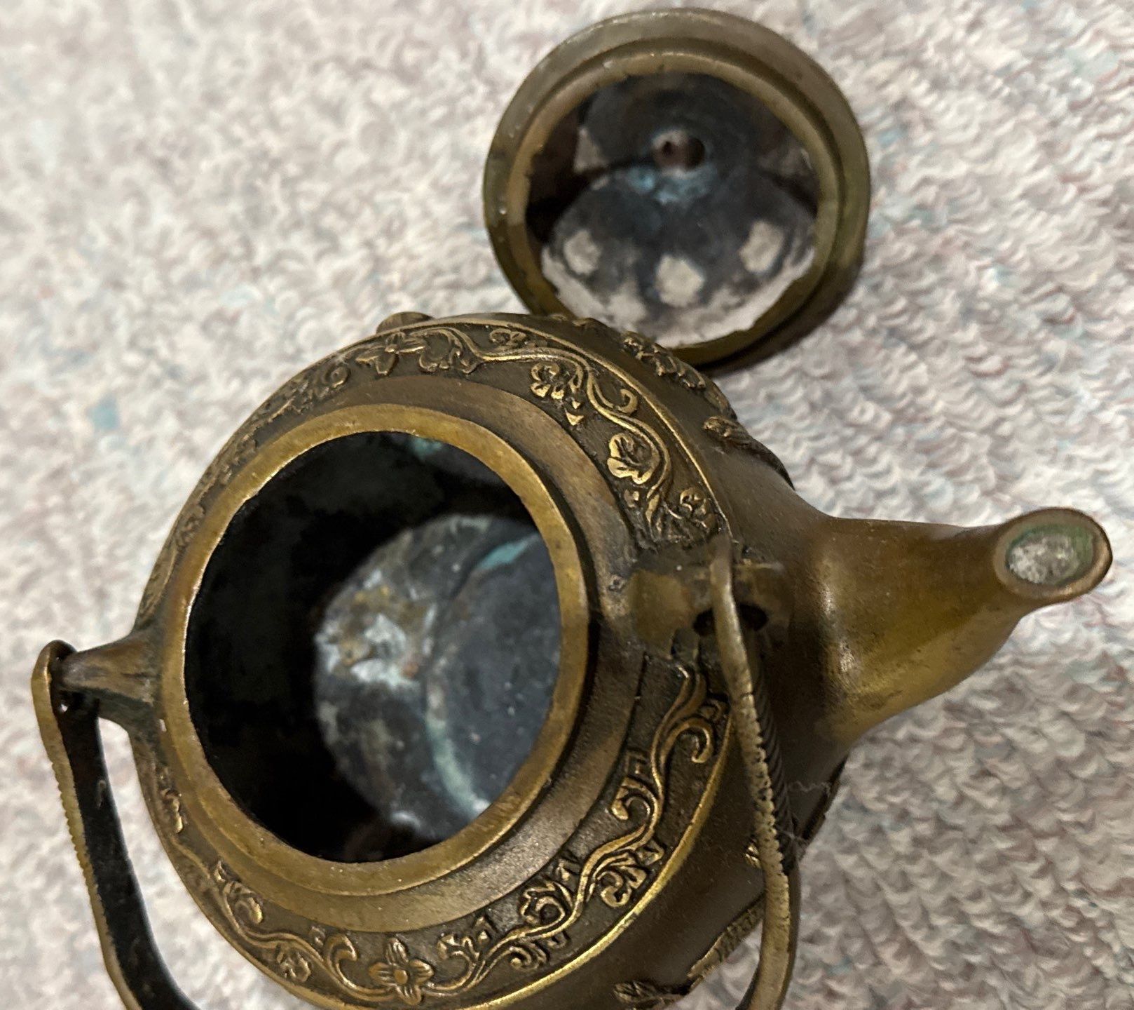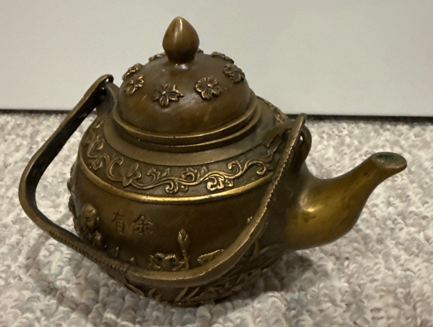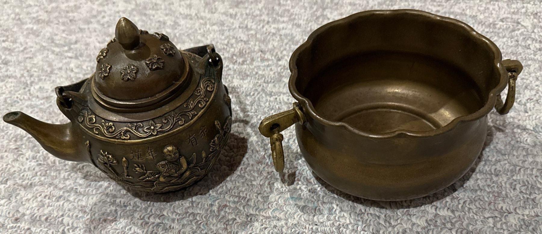 Brass  Antique Decorative Chinese Teapot w/ Made in India Brass Bowl (7W)