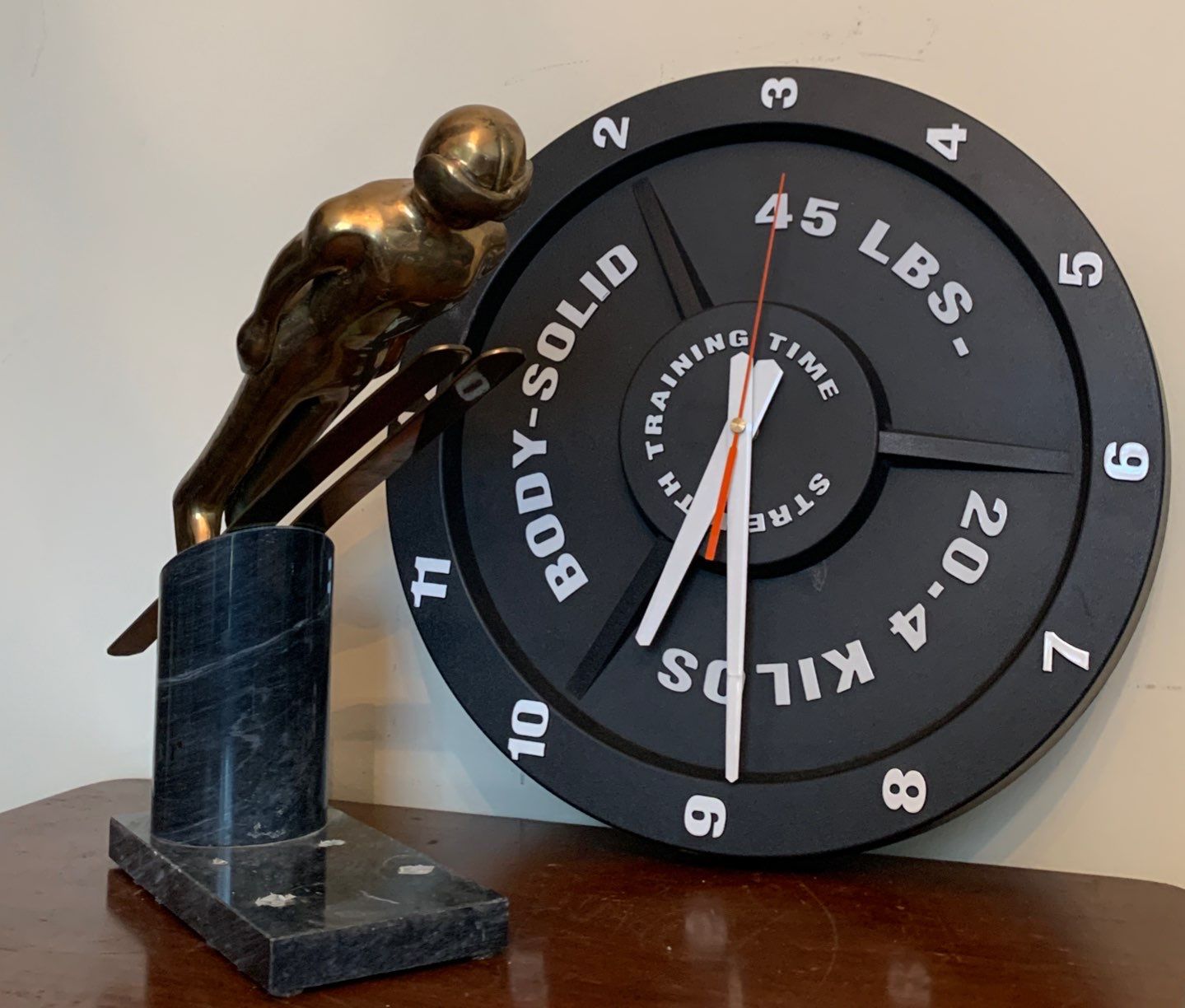 Brass Athlete Set In Granite Base 15L w/ Wall Clock