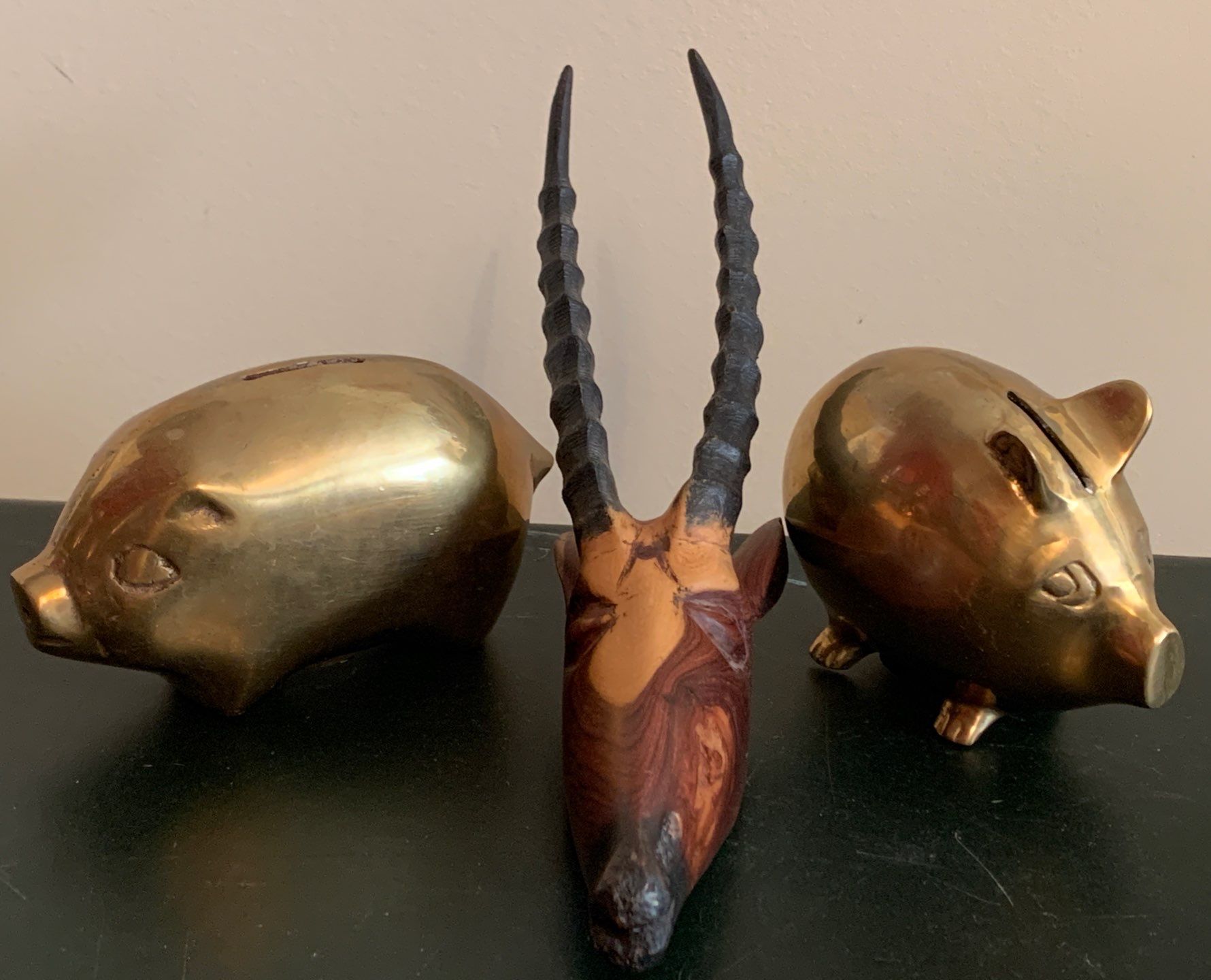 Brass Coin Banks w/ Hand Carved Horned Antelope 10L