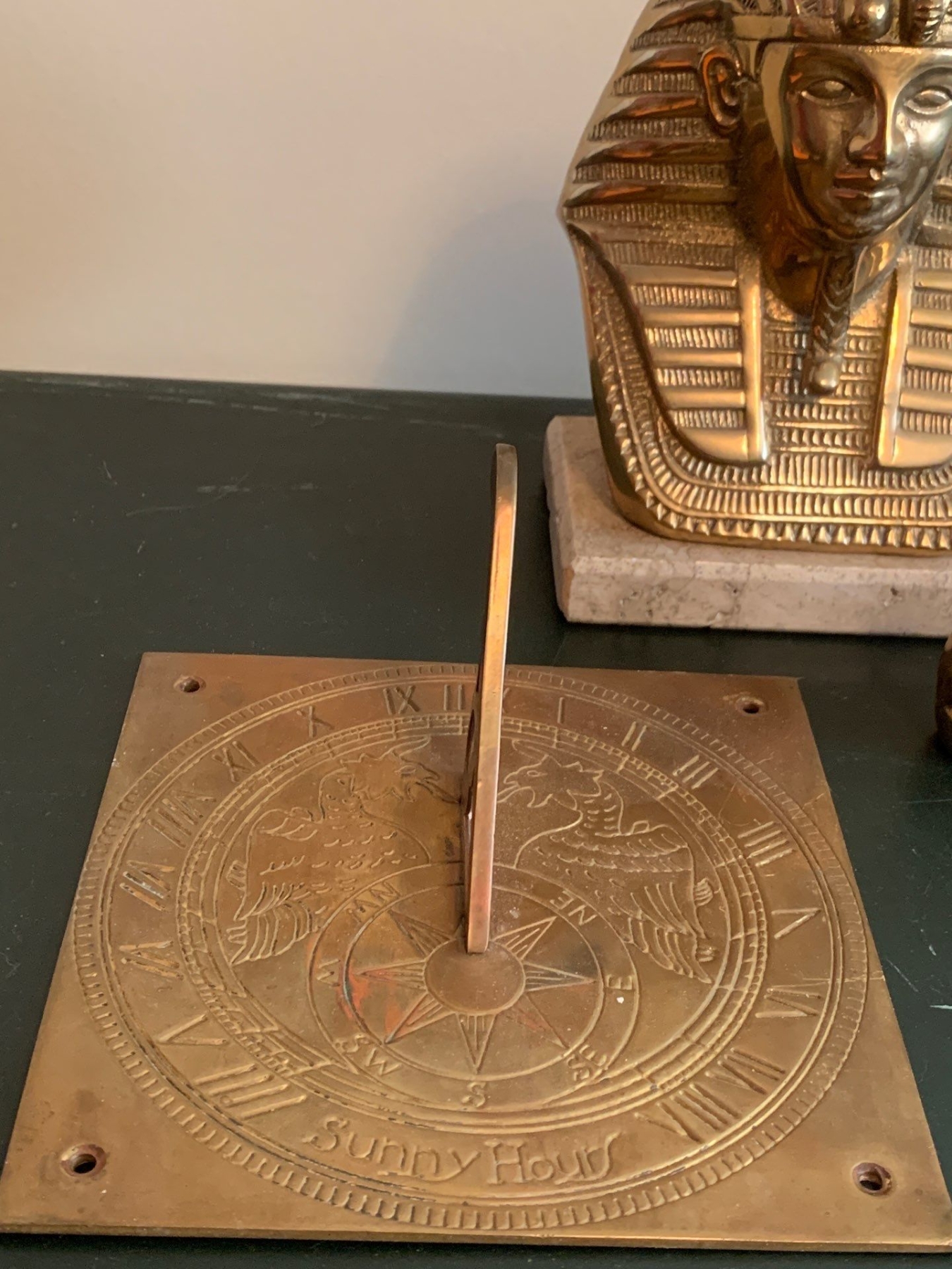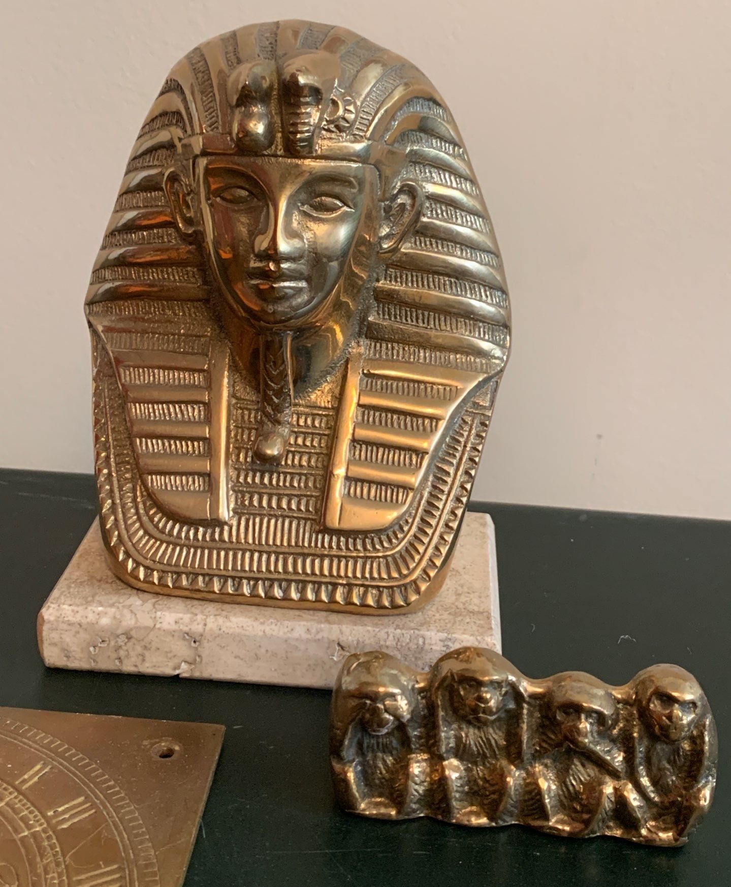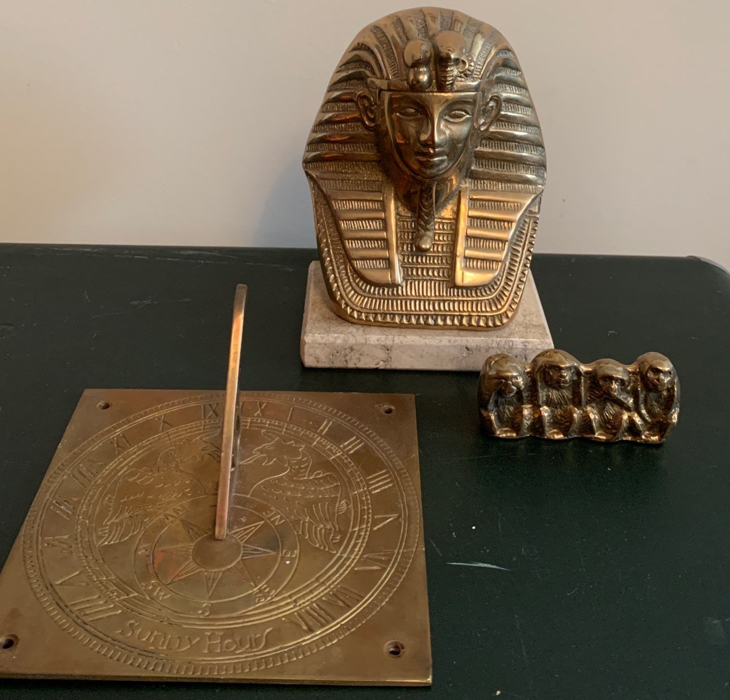 Brass Egyptian Pharaoh Figure 6T w/ Sun Dial & Four Monkeys