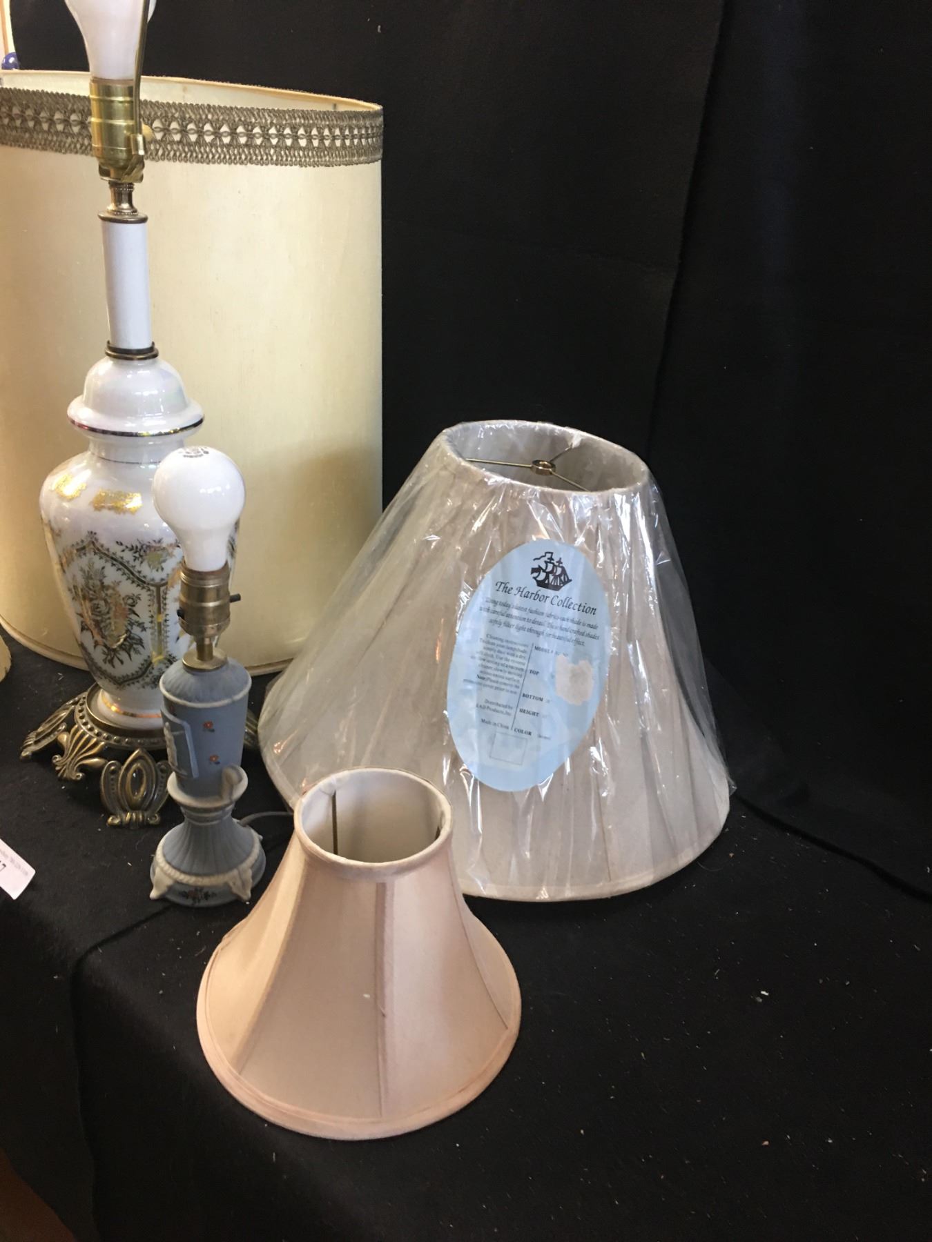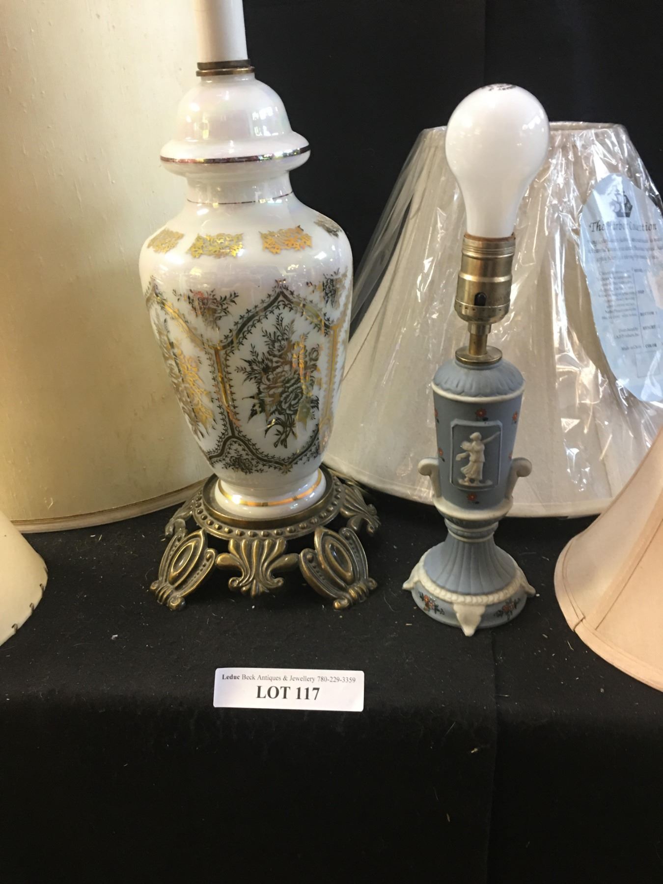 Brass & Glass Lamp, Wedgewood Inspired Lamp & 4 Lamp Shades