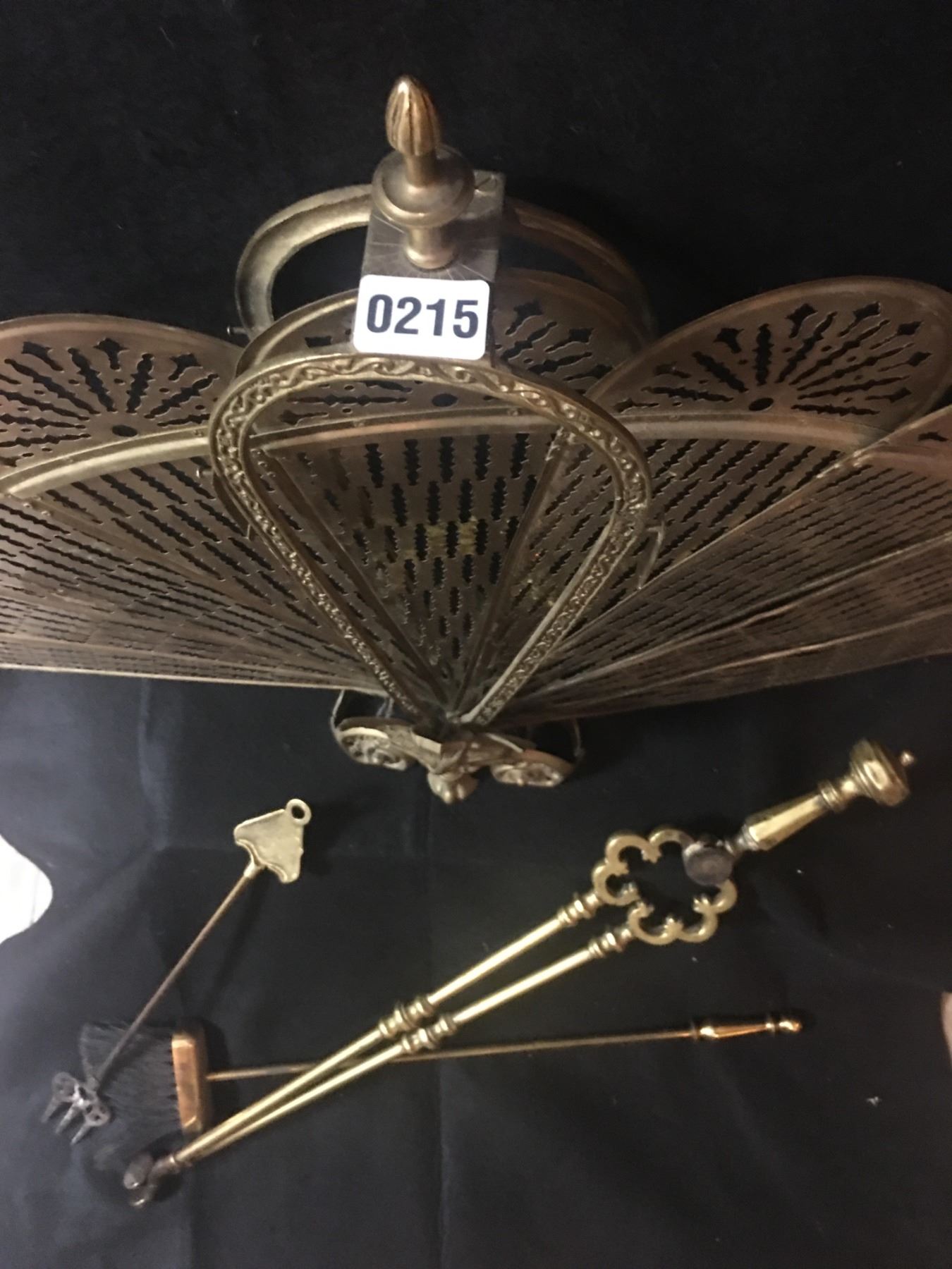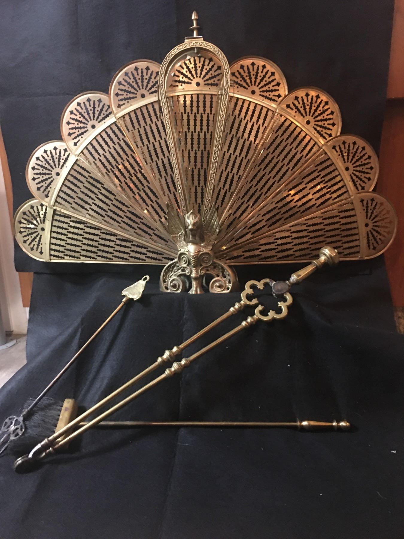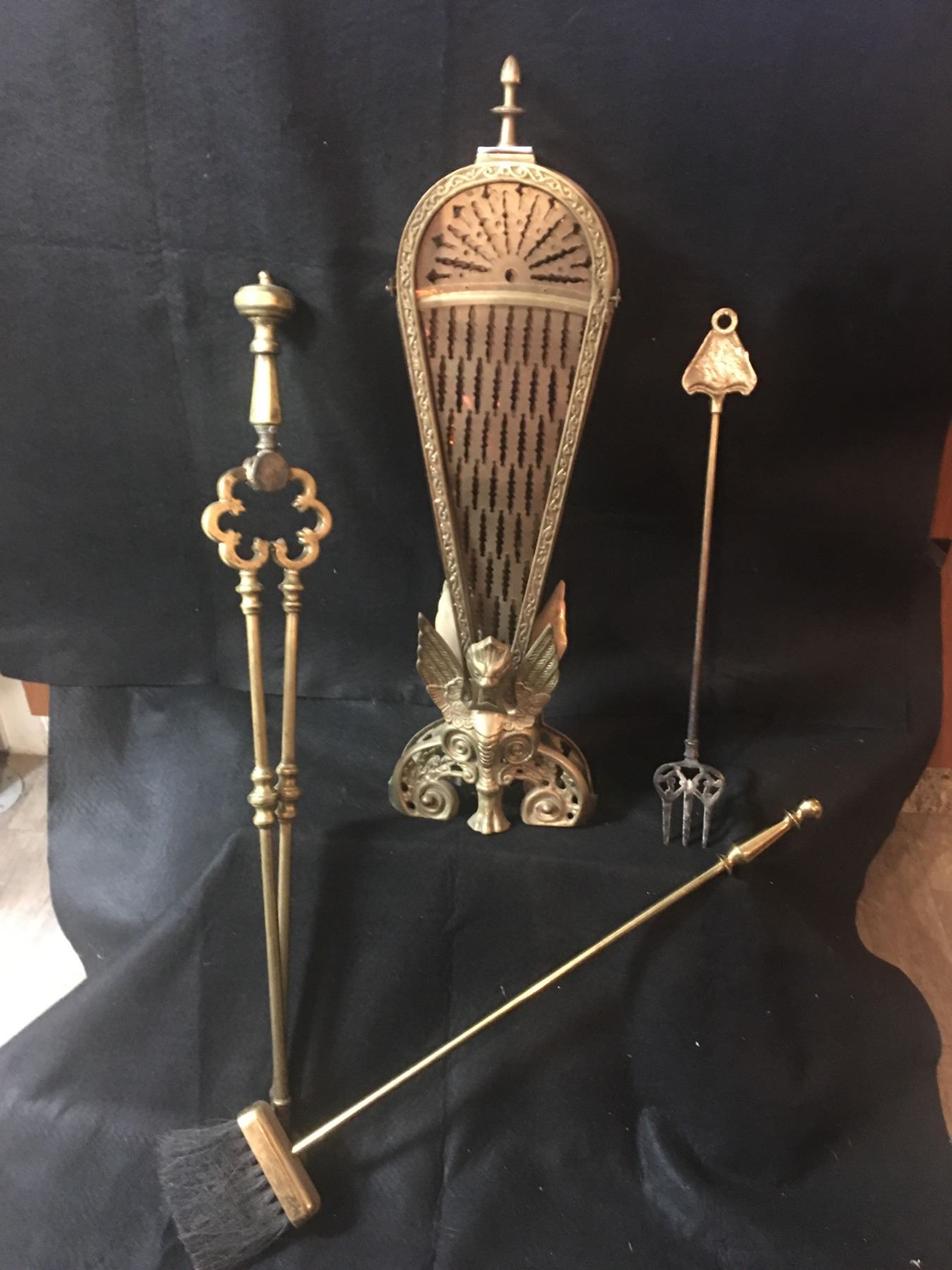 Brass Griffin Fireplace Screen & Fireplace Irons