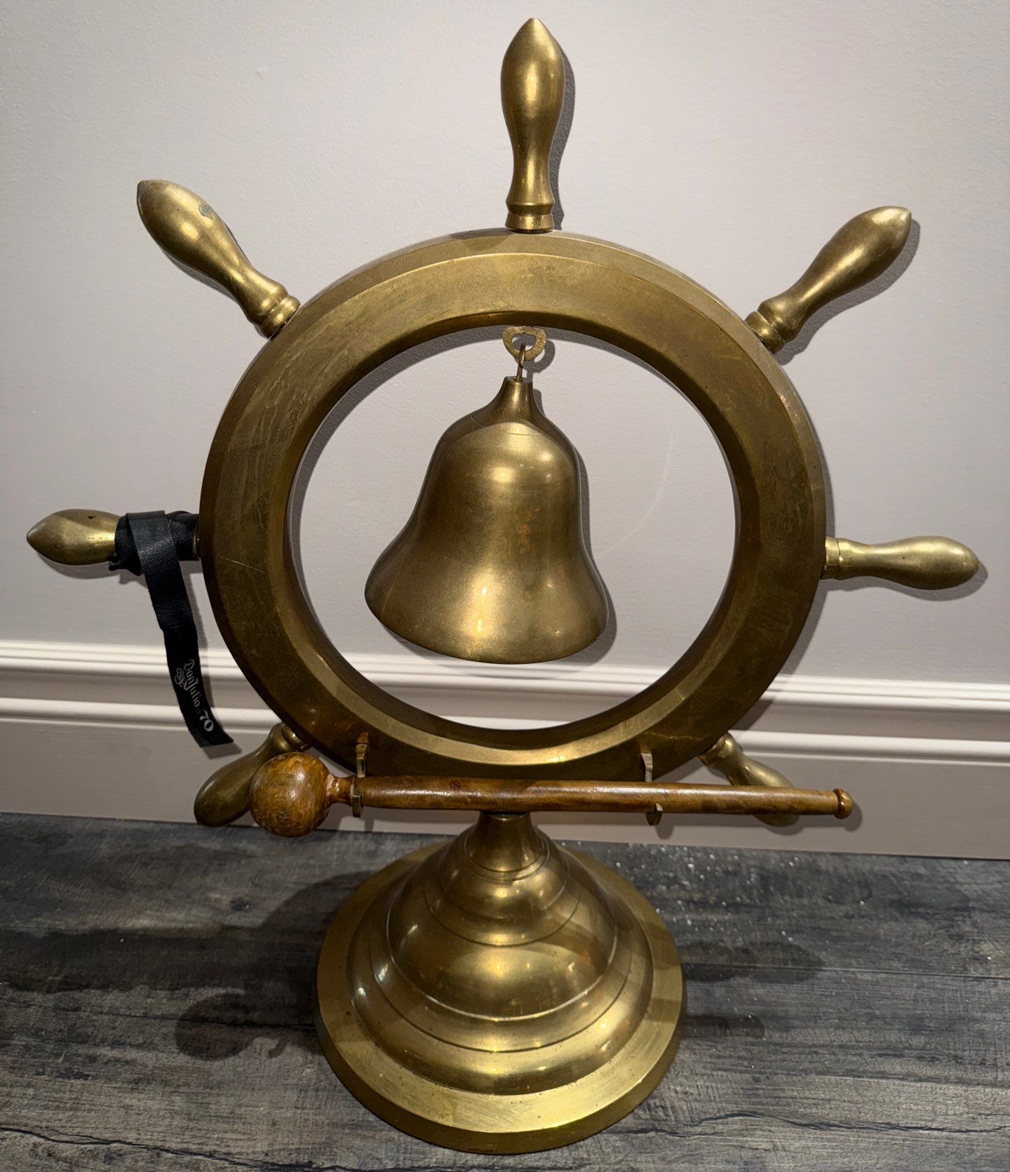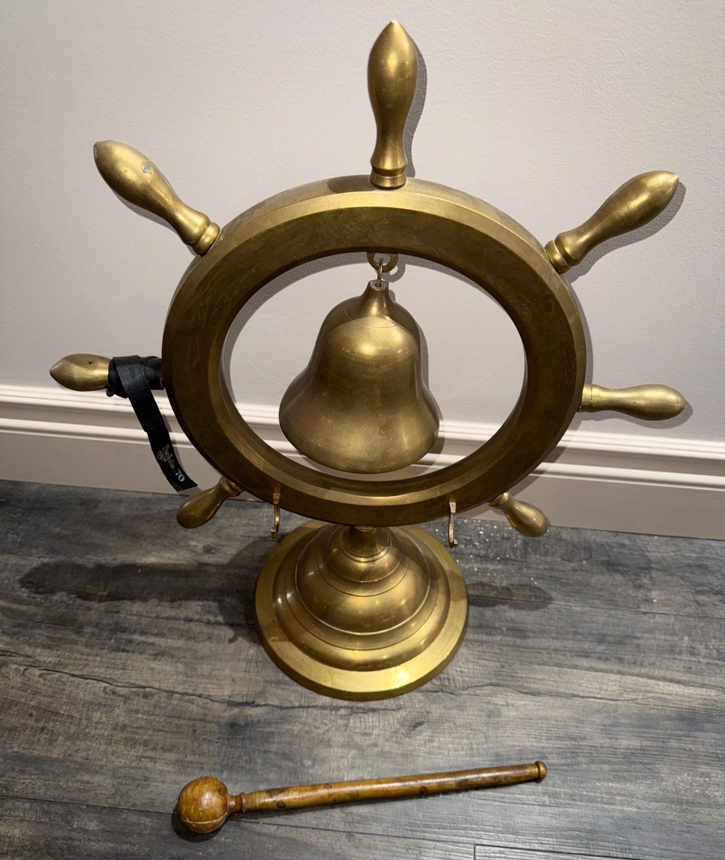 Brass Nautical Ship Wheel Bell-Functional Door Bell Or Decorative Sailor Gong 20"tall