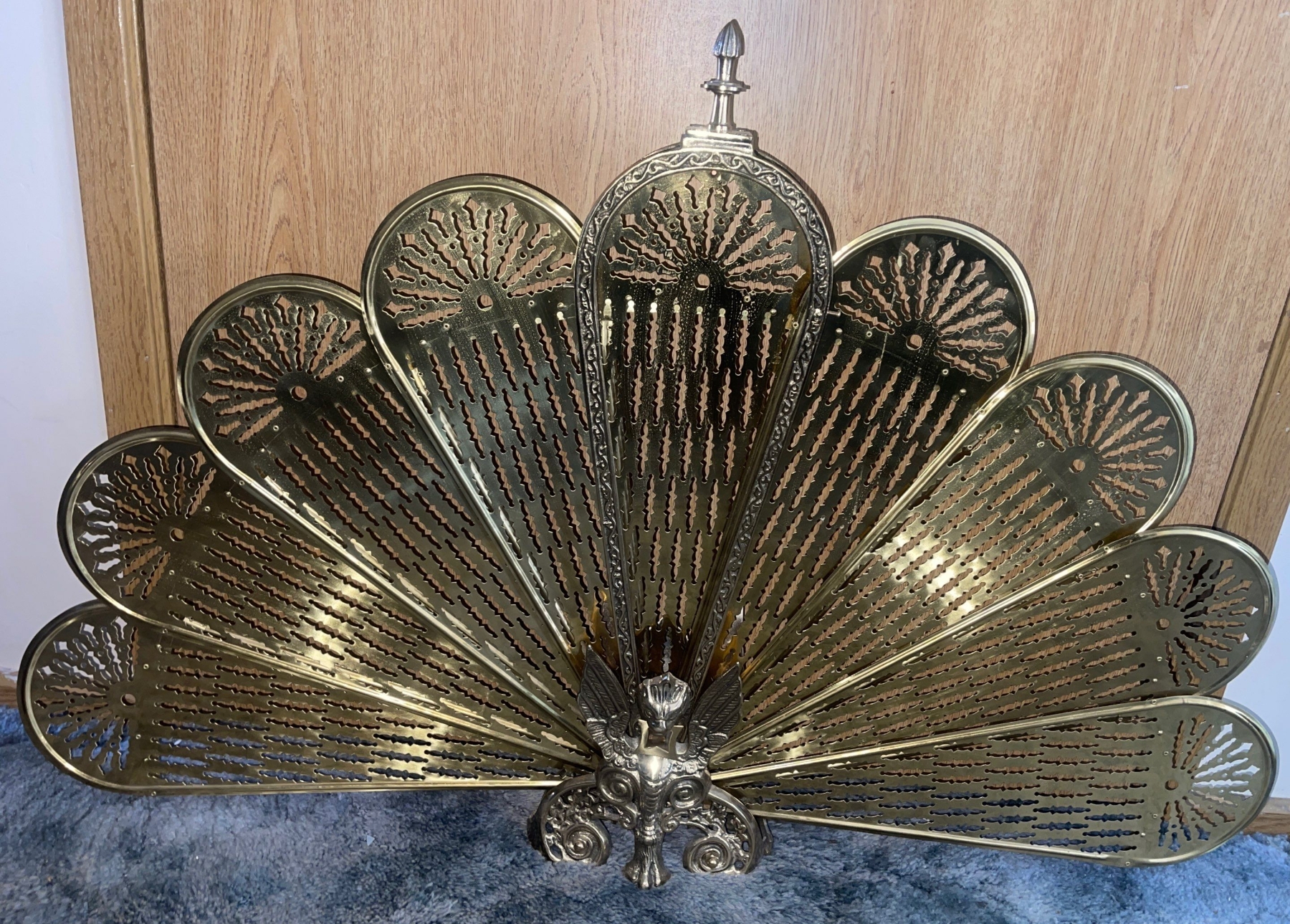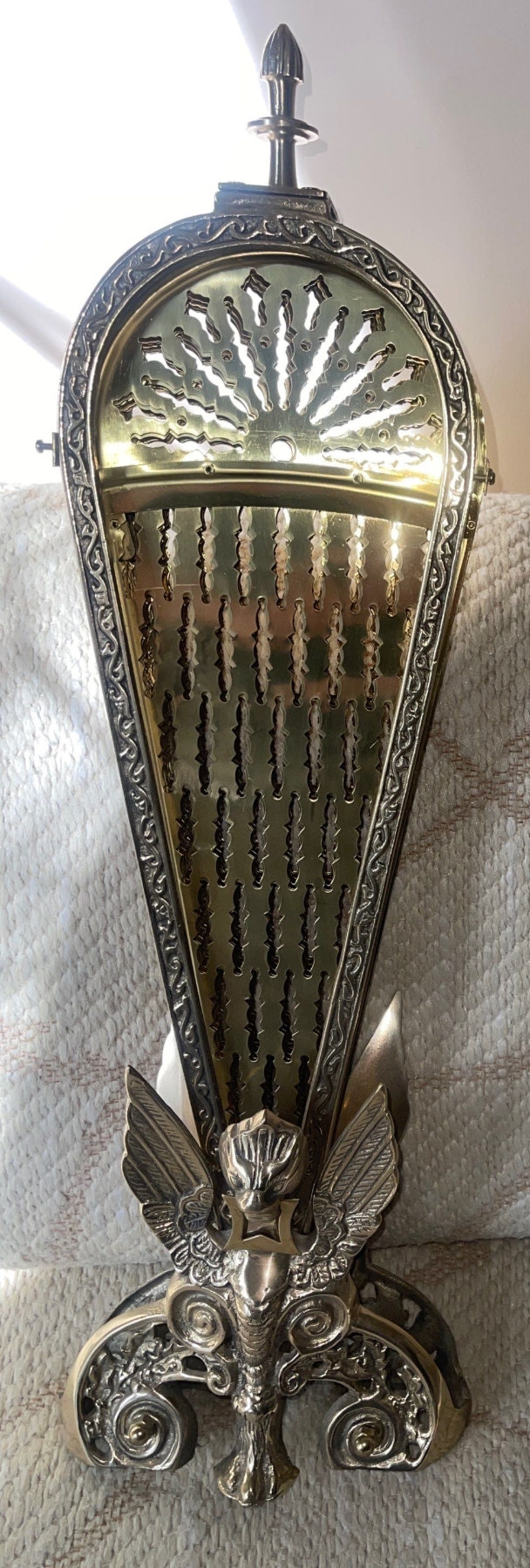 Brass Victorian Fireplace Screen - Gargoyle Fan