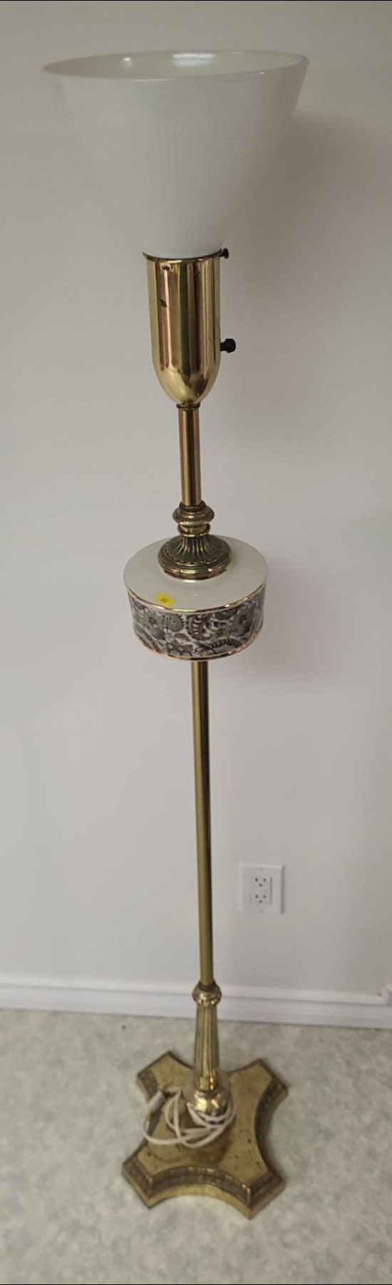 Brass lamp with glass shade and porcelain paisley insert - 10W, 59T