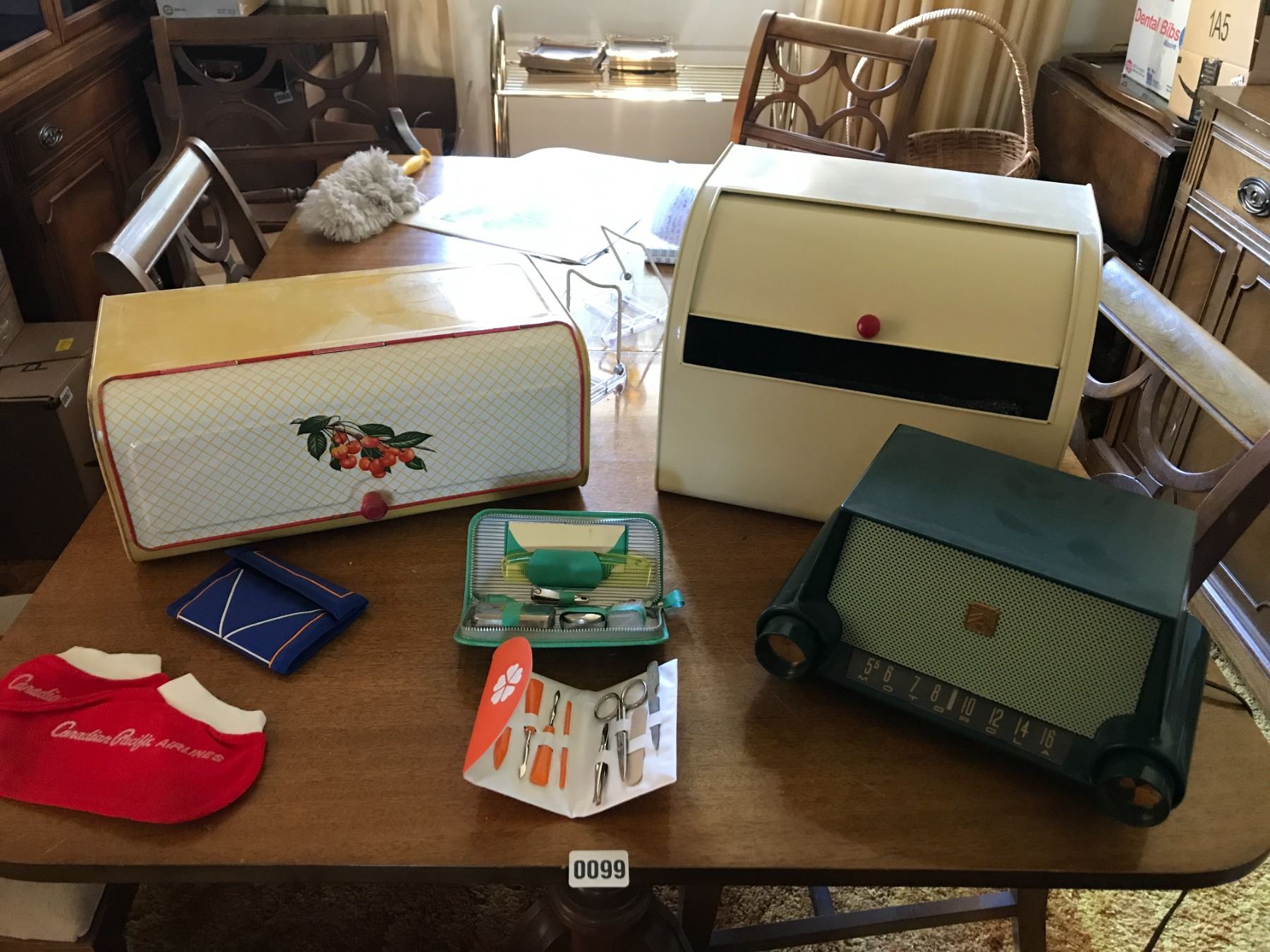 Bread Bins, Motorola MK-53H Radio & Vintage Manicure Sets